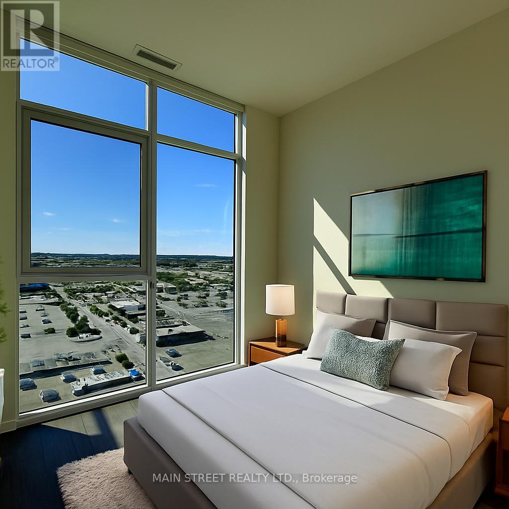$586.13 MonthlyTop floor - Penthouse suite | Best unobstructed views in the building | Impressive 10' ceilings exclusive to penthouse level | Floor to ceiling windows with western exposure and tons of natural light | Oversized balcony with city view to the horizon | New build finished in 2024 | Thousands spent in upgrades | Upgraded kitchen with quartz counter top and built-in stainless steel appliances | Under mount sink and glass top stove | Upgraded Island with built-in breakfast bar | Great one plus one bedroom floor plan with two washrooms | Separate den great for office, kids or guest room | Main bedroom with floor to ceiling windows | Stunning views | Custom fitted window coverings | Full ensuite 3pc bath with glass shower doors, vanity with quartz countertop, and linen closet/shelf | Main 4pc bath with full tub | Laminate flooring and tiled bathrooms through out | Walking distance to everything including shops, dining, groceries, transit, Upper Canada Mall | Amenities include fully equipped gym, games room, office, outdoor terrace, multiple common area lounges and playground for the kids | Maintenance fees include Rogers internet (id:51158)