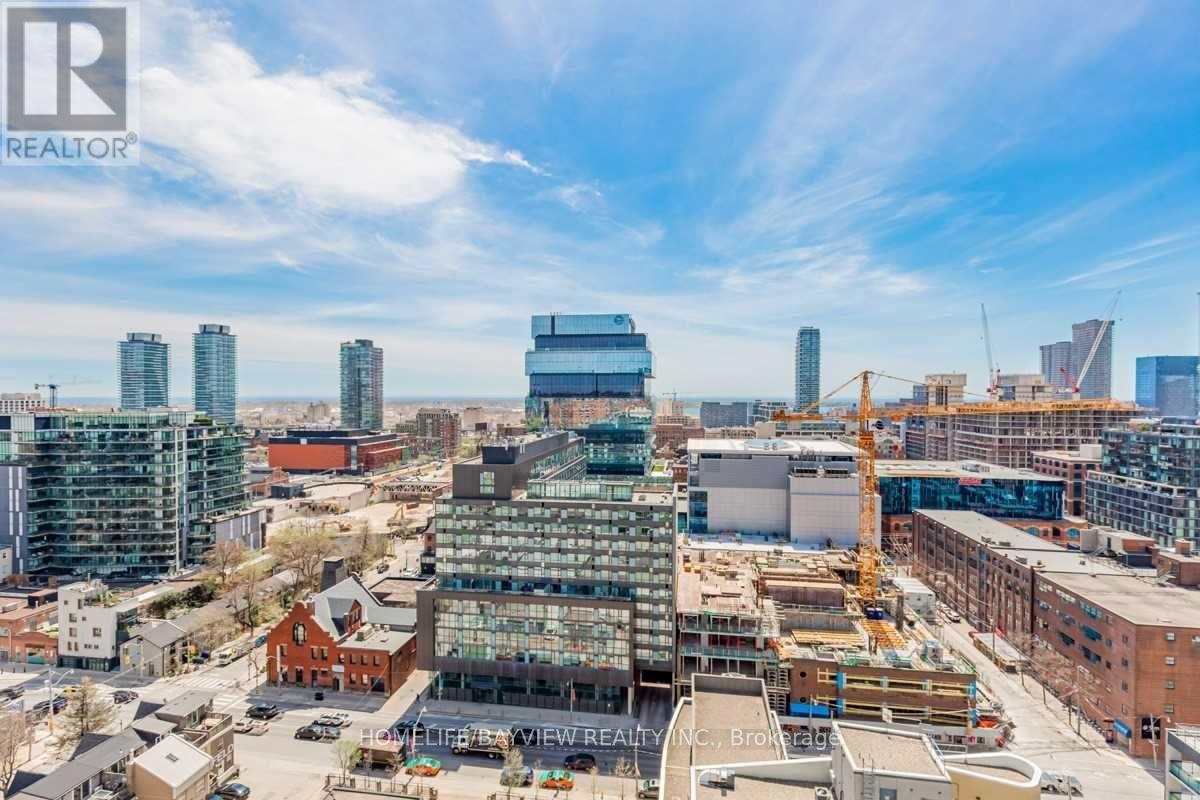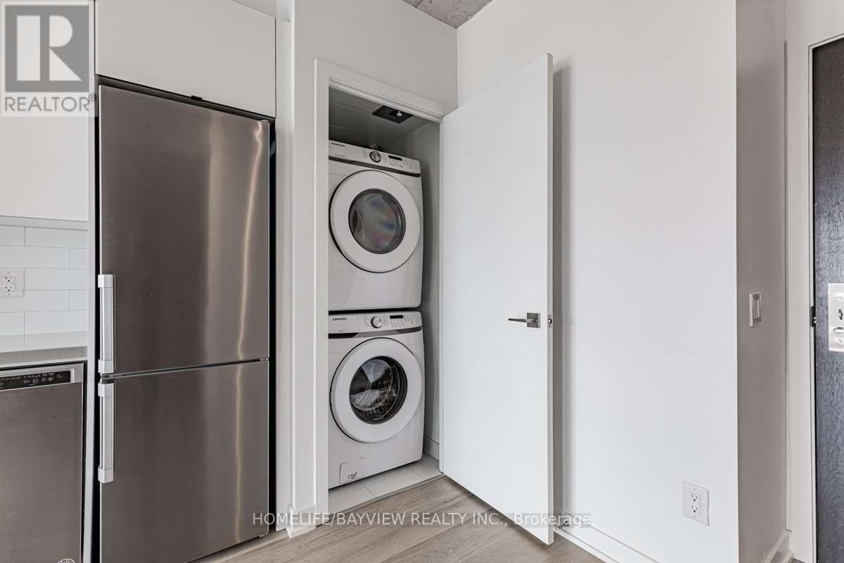 Experience elevated city living at 55 Ontario St, Suite 1507. This modern spacious sun filled one-bedroom plus den residence offers sweeping views of Torontos skyline and lake from an oversized private balcony. Inside, soaring loft-inspired concrete ceilings pair with sleek finishes to create a modern, refined aesthetic. The spacious bedroom and thoughtfully designed den make the space versatile, while a full suite of premium appliances including a large stacked washer/dryeradd everyday convenience. Perfectly positioned steps from the TTC, artisanal coffee shops, dining, and groceries, this address blends downtown vibrancy with lifestyle ease. Residents also enjoy access to resort-style amenities: an outdoor pool with skyline views, state-of-the-art fitness centre, stylish party lounge, visitor parking, and more. (id:51158)