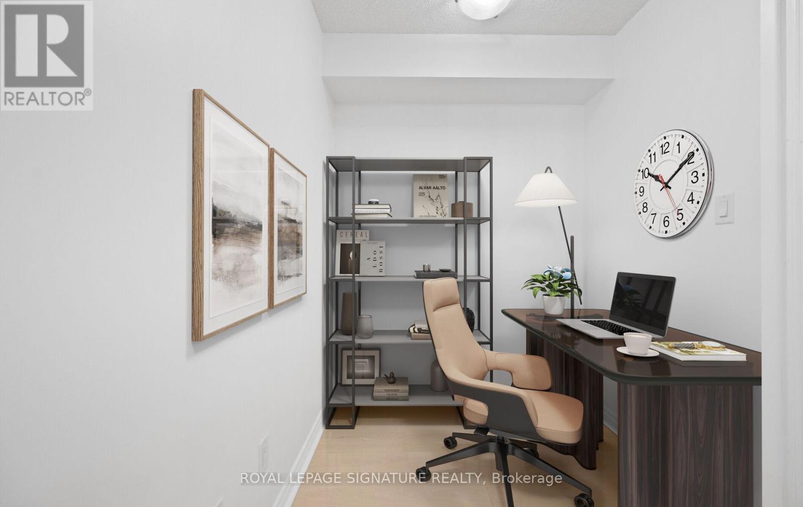 Welcome to Tridel's Prestigious Ovation Building in the Heart of Mississauga! Step into this bright and spacious 1 Bedroom + Den. This freshly painted unit boasts brand new vinyl flooring throughout, upgraded appliances, an ensuite laundry, one parking space and a storage locker. Thoughtfully designed with an open-concept layout, enjoy a generous living & dining area with a walkout to your own private patio perfect for relaxing or entertaining. The modern kitchen features a central island and seamlessly blends style and functionality. Residents enjoy access to exceptional amenities, including a stunning two-storey grand lobby, 24-hour concierge service, a massive fitness and leisure centre, indoor pool, sauna, bowling alley, billiards room, theatre, party room, guest suites and more. All utilities, including heat, water, and hydro, are included in the maintenance fees, offering added value and peace of mind. Located in Mississauga's vibrant City Centre, you're just steps from Square One Shopping Mall, YMCA, Celebration Square, Central Library, Living Arts Centre, public transit, major highways and countless dining and entertainment options. Please note this building DOES NOT allow any pets. (id:51158)
