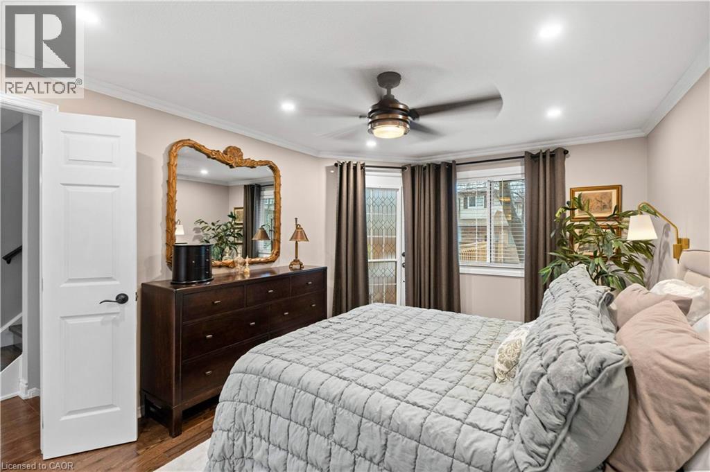 $630 MonthlyWelcome to this beautifully maintained executive townhouse located in the highly sought-after Tyandaga neighbourhood of Burlington. This spacious and thoughtfully designed home offers 2+1 bedrooms and 2.5 bathrooms, ideal for professionals, downsizers, or small families looking for a blend of comfort, style, and low-maintenance living. The main level features rich hardwood flooring throughout and includes a generously sized primary bedroom complete with a private 4-piece ensuite. Enjoy the convenience of main floor living with a cozy living room that includes an elegant electric fireplace and direct access to a walkout deck — fully replaced in 2023 — perfect for morning coffee, outdoor dining, or evening relaxation. The updated kitchen is functional and inviting, with plenty of cabinetry and counter space for meal prep and entertaining. A separate dining area and a powder room round out the main level. Upstairs, the loft-style second bedroom is filled with natural light and features brand-new carpeting (2023), making it a warm and welcoming retreat for guests or family members. This flexible space could also function as a home office or hobby area. The fully finished basement offers additional living space with luxury vinyl plank flooring installed in 2023, creating a modern and durable surface. A spacious recreation room includes a second electric fireplace, providing a cozy atmosphere for movie nights or gatherings. An additional bedroom and a 3-piece bathroom on this level offer privacy and comfort for guests or extended family. Direct access to the garage from the lower level adds a practical touch to this well-appointed home. Located in a quiet, well-maintained complex close to Tyandaga Golf Course, parks, walking trails, shopping, and easy access to major highways, this home truly offers the best of Burlington living. Don’t miss your opportunity to own this stylish and functional townhouse in one of the city's most desirable neighbourhoods. (id:51158)