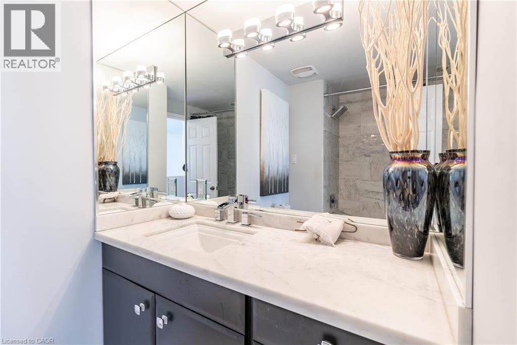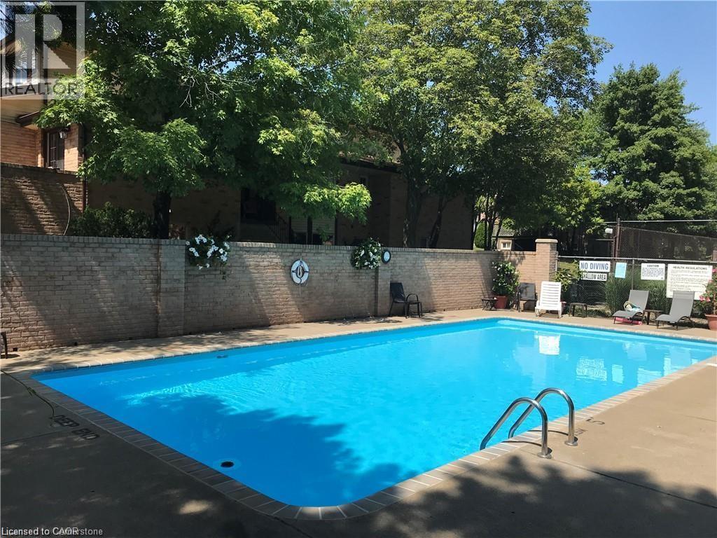 $630 MonthlyNestled in the sought-after Tyandaga neighbourhood, this beautifully maintained 3-bedroom, 4-bathroom townhome offers almost 2200 square feet of living space with a rare double car garage with inside entry. The main floor features a bright living room with hardwood floors and patio doors leading to a private terrace; perfect for morning coffee or evening relaxation. The formal dining room overlooks the living area, creating an open, elegant space for entertaining. The white kitchen is both stylish and functional complete with granite countertops and ample storage. The primary bedroom, located on the main level with a 3-piece ensuite, is currently used as a cozy family room – offering flexible living options to suit your lifestyle. Upstairs, two generous bedrooms share a beautifully updated bathroom with a Calcutta marble vanity and a luxurious bubble tub surrounded by Carrera marble. The fully finished basement adds even more versatility with a large flex space currently set up as an office plus a rec room with a wood-burning fireplace, a wet bar and a 2-piece bathroom. This home combines classic charm with modern updates in a peaceful, well-established complex that also offers an inground heated swimming pool and tennis court, so perfect for families, professionals or downsizers alike! Great location where you can walk to shopping and minutes to the downtown area, Tyandaga Golf Course, parks, restaurants and major highways. Don’t be TOO LATE*! *REG TM. RSA. (id:51158)