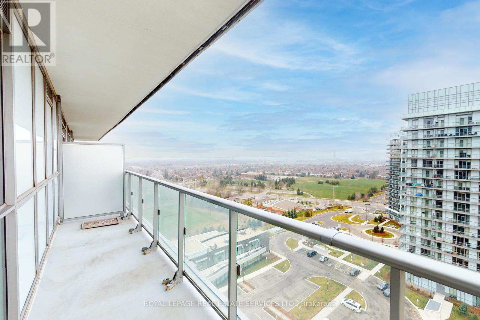 Corner Unit! Striking Condo in the Heart of Central Erin Mills! Discover upscale living in this sun-filled, generously sized 2 Bedroom + Den, 2 Bathroom corner suite at Mills Square by Pemberton. Designed with comfort and style in mind, this home features an open, efficient layout and a sweeping wraparound balcony showcasing breathtaking lake, city, and greenery views through expansive floor-to-ceiling windows. Upgraded throughout with modern touches: 9-ft ceilings, chic laminate flooring, fresh paint, and a gourmet kitchen complete with an island and full appliance package. Convenient in-suite laundry included. Enjoy resort-style living with access to an amenity centre-featuring an indoor pool, fitness centre, saunas, party lounges, library, and more. Located steps from Erin Mills Town Centre, Walmart, top-rated schools, Credit Valley Hospital, parks, cafés, GO transit, major bus routes, and quick access to Highways 403/401. Experience the best of Central Erin Mills living-this one won't last! (id:51158)
