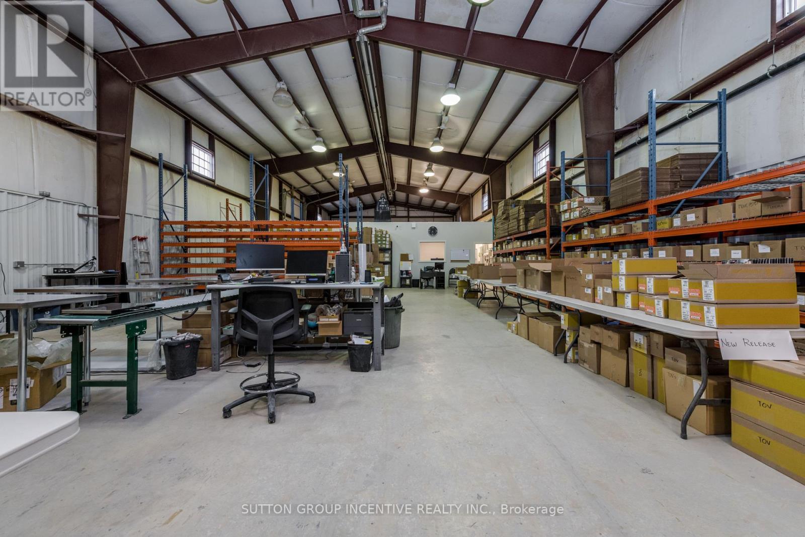 Single Tenant Industrial building in Snow Valley / Minesing. 15,450 SF total building (approx. 12,214 SF warehouse + 3,236 SF office) on just over 1 acre. Warehouse has two large bay areas - 99'3"x38'6" and 134'4"x68'7", shipping office, multi-stall washrooms, 3 electrical panels (600/400/200), 10 ceiling fans, natural gas radiant heating, all new LED lighting, 2 drive in doors, 1 dock level door (all 12'x12') and 19.5' clear, 22.1' to pitch. Newly finished office area with 6 private offices, 2 washrooms, and kitchen / lunchroom. Currently has a strong tenant in place (just over one year remaining on 5 year term - 10/31/2026 expiry date - triple net carefree to the landlord). Lease agreement and March 2021 Phase 1 ESA available upon execution of CA and accepted APS. M1-2 zoning allows for most industrial uses including Manufacturing, Assembly, R&D, Warehousing, Storage and other accessory uses. (id:51158)