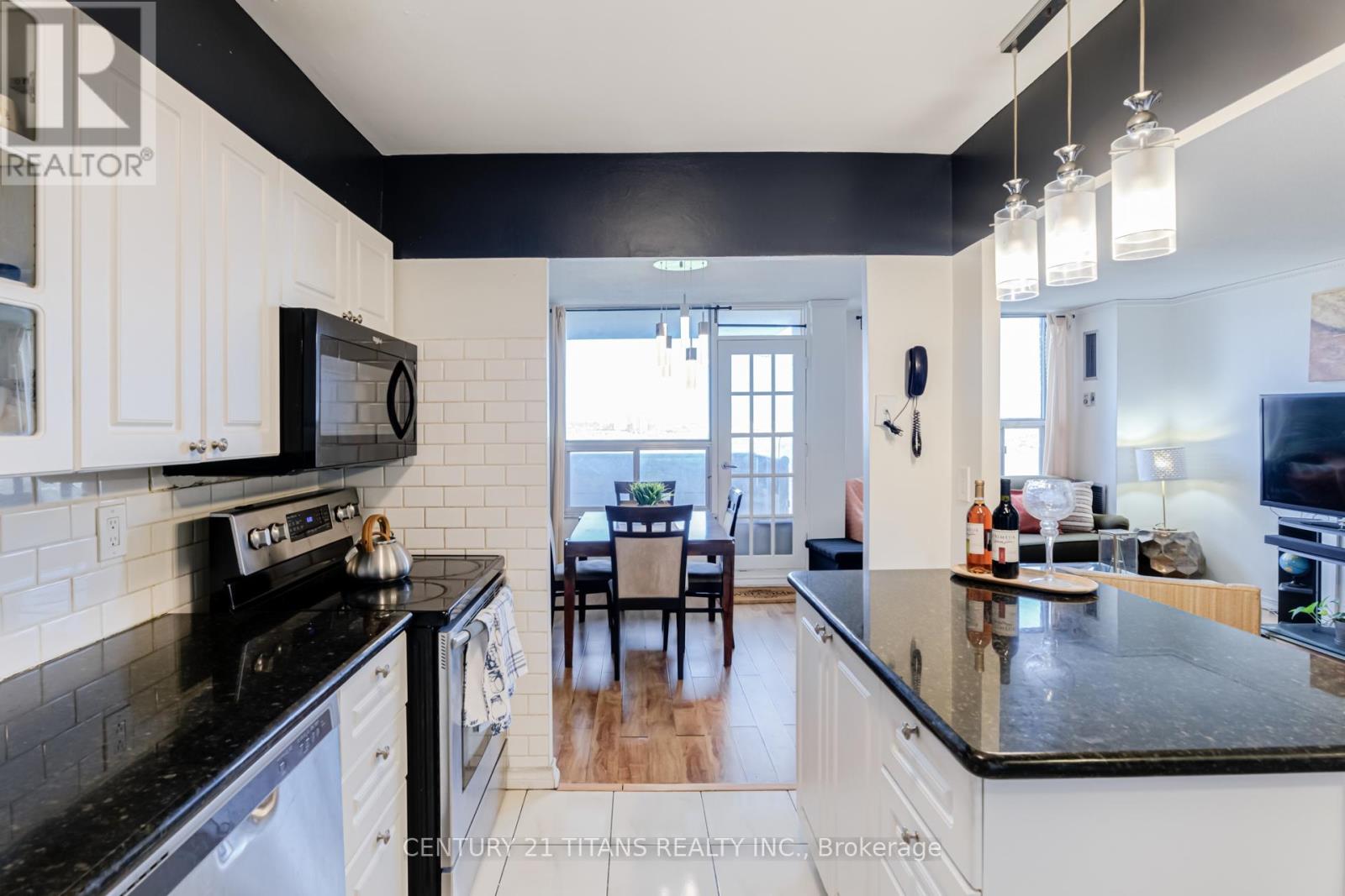 Beautifully renovated, spacious 3-bedroom corner unit with stunning, unobstructed golf course views! This bright, open-concept suite features a large modern kitchen with granite island, laminate and ceramic flooring throughout, ensuite laundry with storage, and a walkout to a private balcony. The oversized primary bedroom includes a 2-piece ensuite for added convenience. Enjoy central air conditioning, generous living space, and tasteful finishes throughout. Located steps from transit and the upcoming Eglinton LRT, with quick access to the DVP, downtown, top-rated schools, shopping, Ontario Science Centre, and a nearby golf course. Fabulous, well-maintained building with excellent amenities ,just move in and enjoy! Includes all utilities with internet and cable. Don't Miss the opportunity ! Short Term rentals Preferred (id:51158)