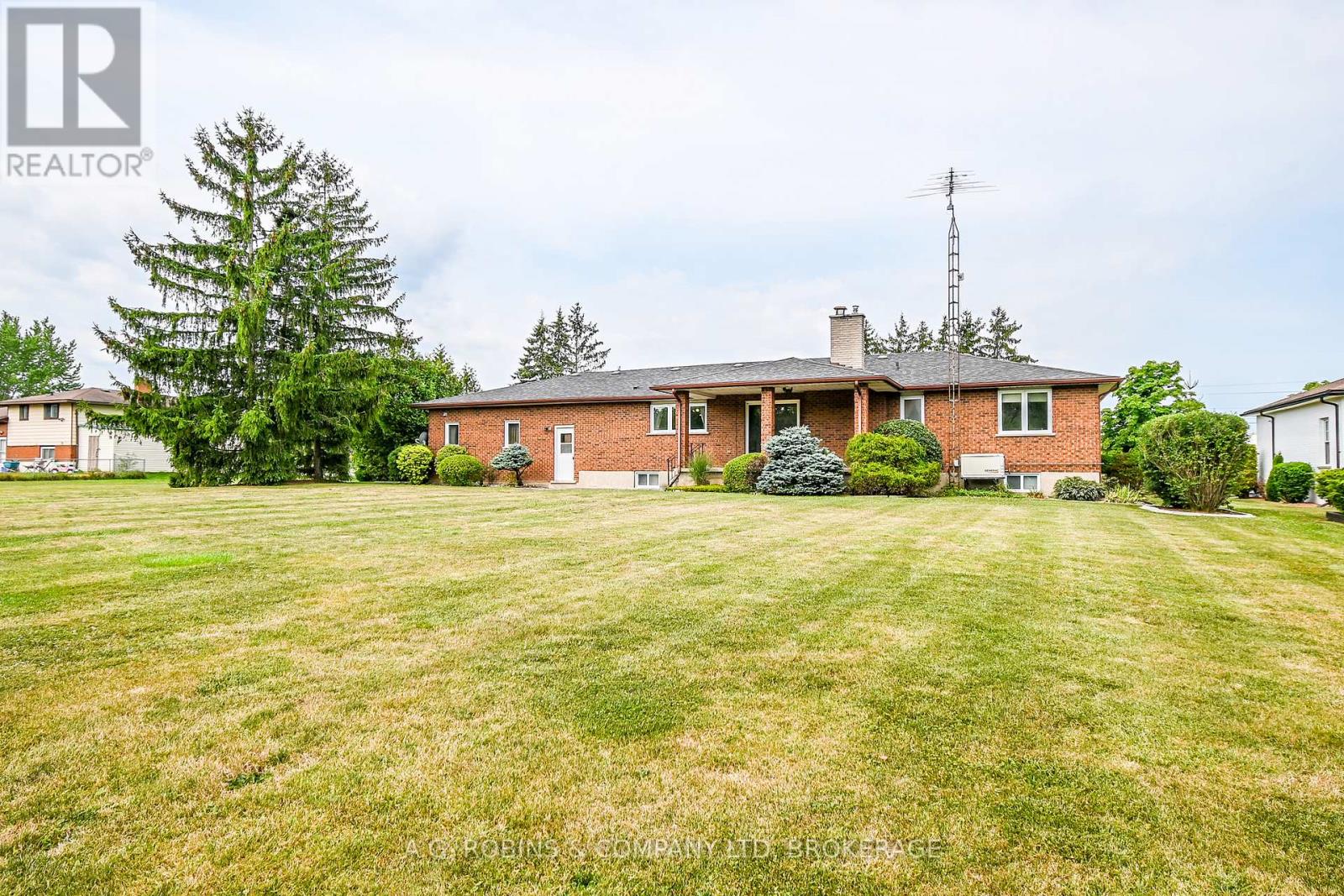 Welcome to 152 Doan's Ridge Road, Welland. This 1979, custom built, sprawling, all-brick bungalow is a prime example of well thought out design and craftsmanship. Solidly built with 2x6 exterior walls, this home is offered for sale by the original owners. Over 1,800 square feet on the main floor with a large bright living room, formal dining room, large eat-in kitchen, family room with wood burning fireplace, patio doors leading from the family room to a covered back porch overlooking the spacious backyard. The main floor features 3 sizable bedrooms with spacious closets and a 5-piece main bathroom. The kitchen leads to the main floor laundry, 2nd bathroom and inside entry to the oversized double car garage with overhead storage loft. Plans available for over-garage in-law suite/apartment (buyer to do their own due diligence with municipality). Downstairs you will find two finished rooms, ideal for home office or as additional bedrooms, along with a huge open area for your future rec room, tons of storage, and a large cold cellar. This home is set on .68 acres with beautiful perennial gardens and landscaping with concrete driveway with turnaround, parking for 10 vehicles and a considerable sized storage shed at the back of the property plus room for a large vegetable garden as shown in the last photo of the photo attachments. Built-in GENERAC natural gas generator provides power during electrical outages so you can rest easy and enjoy country living in Cooks Mills with confidence. Located 10 Mins to the Highways 140, 406, shopping and the new hospital being constructed. Two sumps and easy access to the septic tanks (last pumped in Sept 2024). This home has been lovingly cared for and maintained by the original owners, now it's time to pass it over to a new family to love, enjoy and make new memories. Come have a look at this ideal family home. (id:51158)