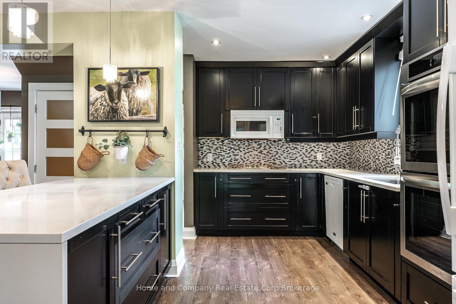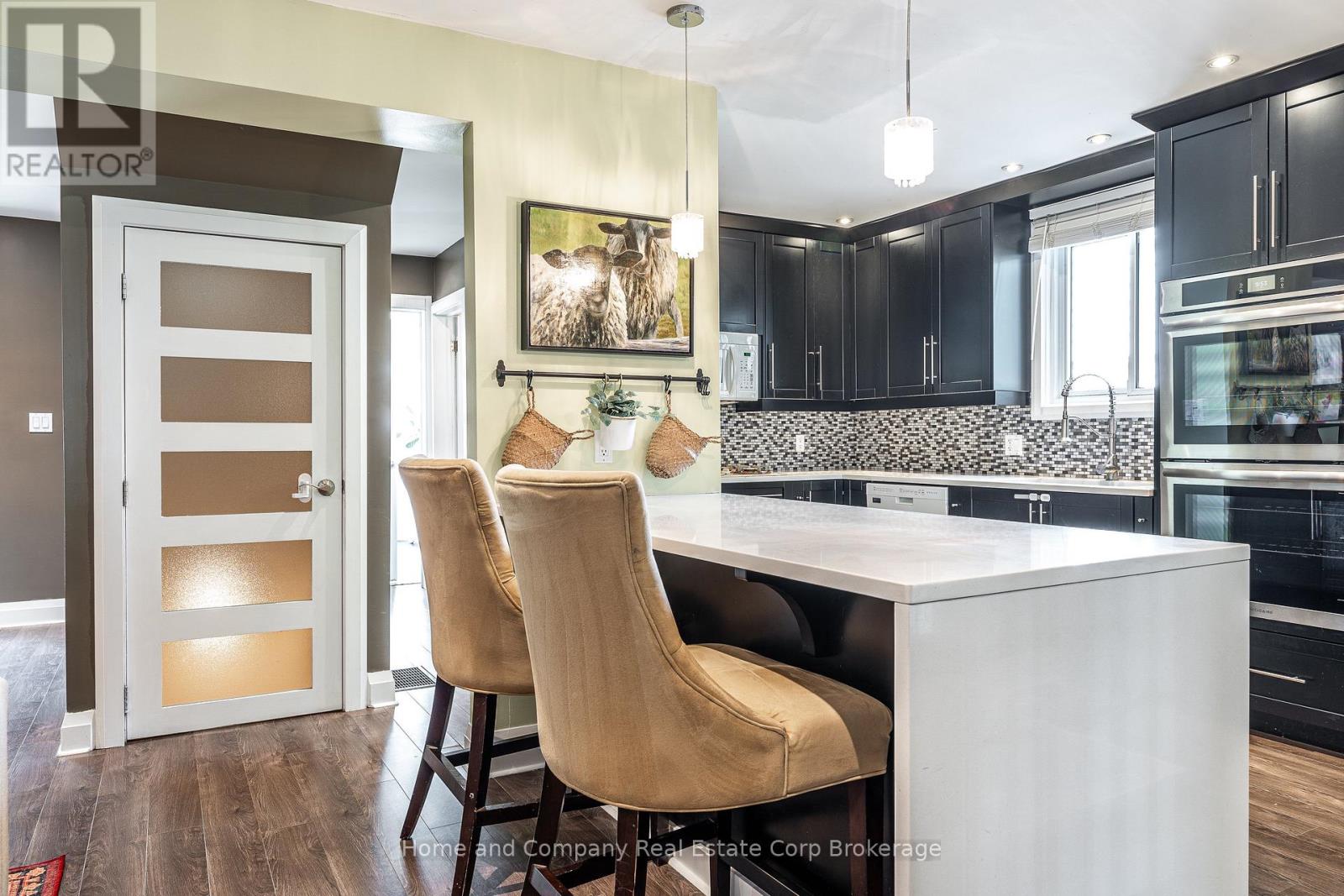 Where modern comfort meets backyard bliss! This charming 2 bedroom, 2 bath beauty has an open-concept design anchored by a chefs kitchen featuring updated appliances, double ovens, gas cooktop, and double sink with garburator. Gather with friends around the stunning eat-up island, topped with quartz counters and lit by stylish pendants. The main floor offers a sleek 3-piece bath and a convenient laundry/sunroom, while the finished basement adds generous living space, office, and a 4-piece bath. Step outside to your private retreat; deck, concrete patio with gas BBQ hookup, fruit trees, and lots of space to play with in the generous yard. The garage with power offers bonus storage or workshop space. Tucked on a quiet, tree-lined street near the splash pad, Anne Hathaway Park, and ball diamonds, this is the perfect place to relax, entertain, and call home. (id:51158)