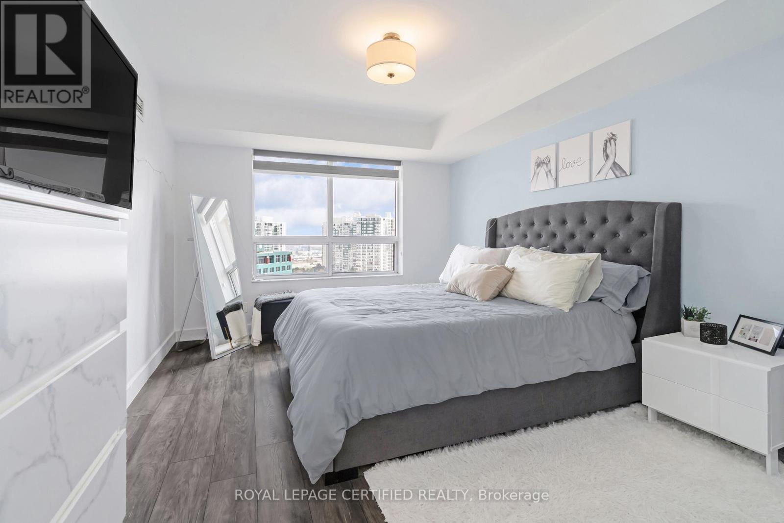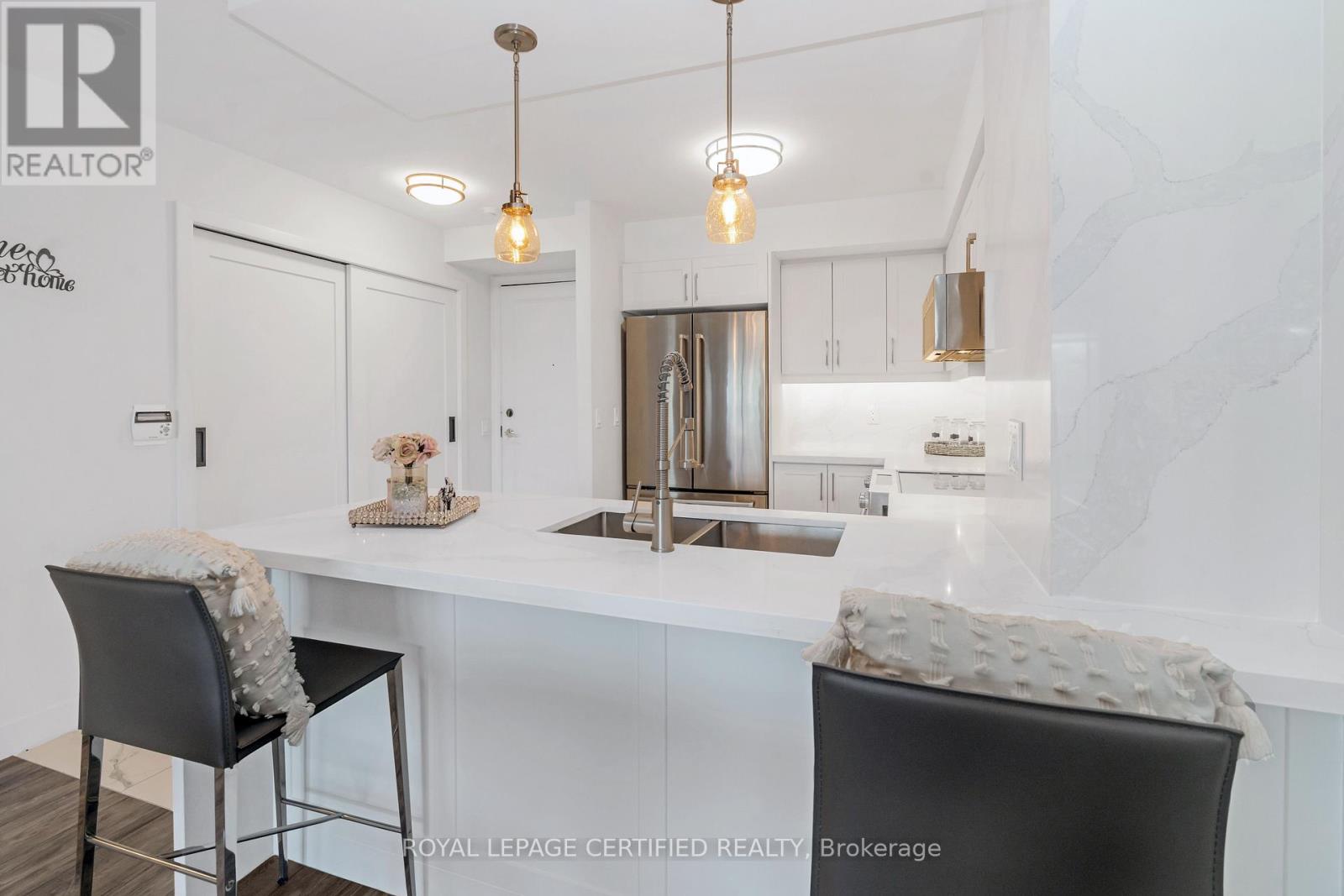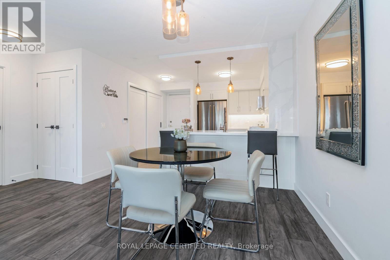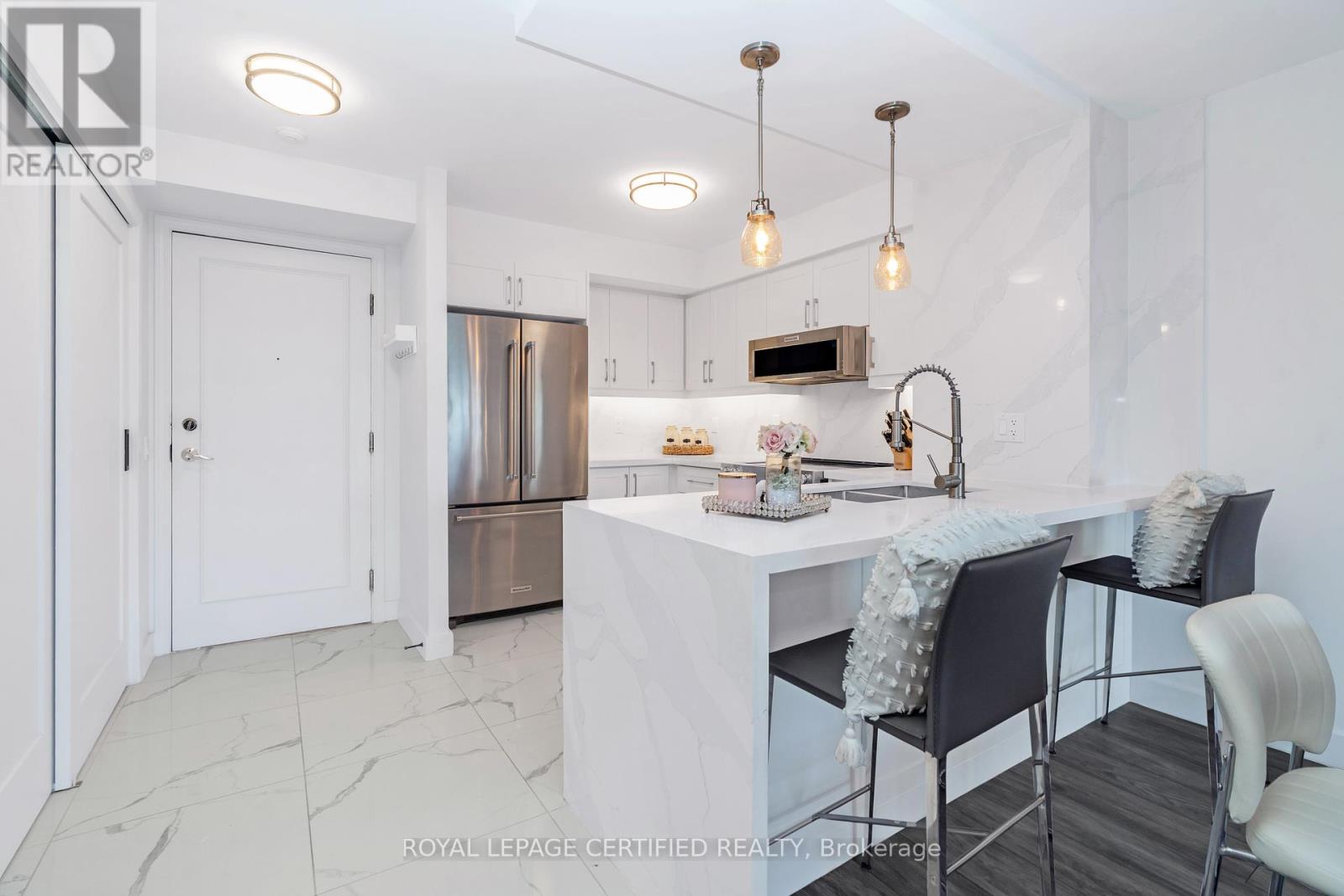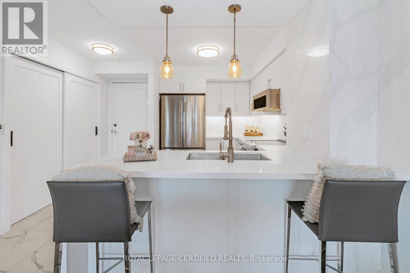 $540.09 MonthlyModern & Sleek Condo Living in the Heart of Mississauga! Experience contemporary comfort in this beautifully renovated 1-bedroom, 1-bathroom condo, perfectly located steps from the upcoming LRT, Square One, major highways, shopping, and dining. No detail has been overlooked. Thousands have been invested in stylish upgrades including the modern kitchen with porcelain countertops and backsplash, stainless steel appliances, and generous storage. The open-concept living and dining area offers a seamless walkout to your private balcony with sun-filled southern views. The bright primary bedroom boasts a large closet with custom built-ins, while the renovated bathroom and in-suite laundry add to the homes convenience.This well-appointed residence includes 1 parking space and grants access to exceptional building amenities including 24-hour concierge, state-of-the-art fitness centre, indoor pool, sauna, tennis and squash courts, bowling alley, billiards room, and party/games room. Move-in ready and designed for modern living! (id:51158)