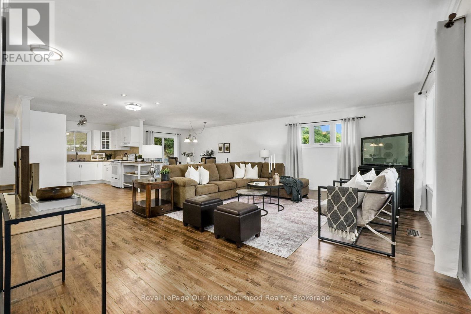 Welcome to this charming 2+1 bedroom bungalow nestled on 3.25 acres of peace and privacy. The open-concept living and dining space flows to a wraparound deck, perfect for relaxing or entertaining with views of the yard. Spacious Kitchen with ample storage including a pantry. Primary bedroom with 4pc Ensuite and step in closet with pocket doors. Main floor laundry and storage for convenience. The lower level offers great potential for an in-law suite with its own entrance, family room, bedroom, and a 3pc bath. Workshop with sink and storage for your hobbies or future kitchen/kitchenette, with access to the garage. A 30' x 30' garage/workshop with high ceilings and separate hydro is ready for all your hobbies and projects. A property with so much potential creating a lifestyle of endless opportunities, Surrounded by quiet nature, this home is the perfect retreat to relax and unwind (id:51158)