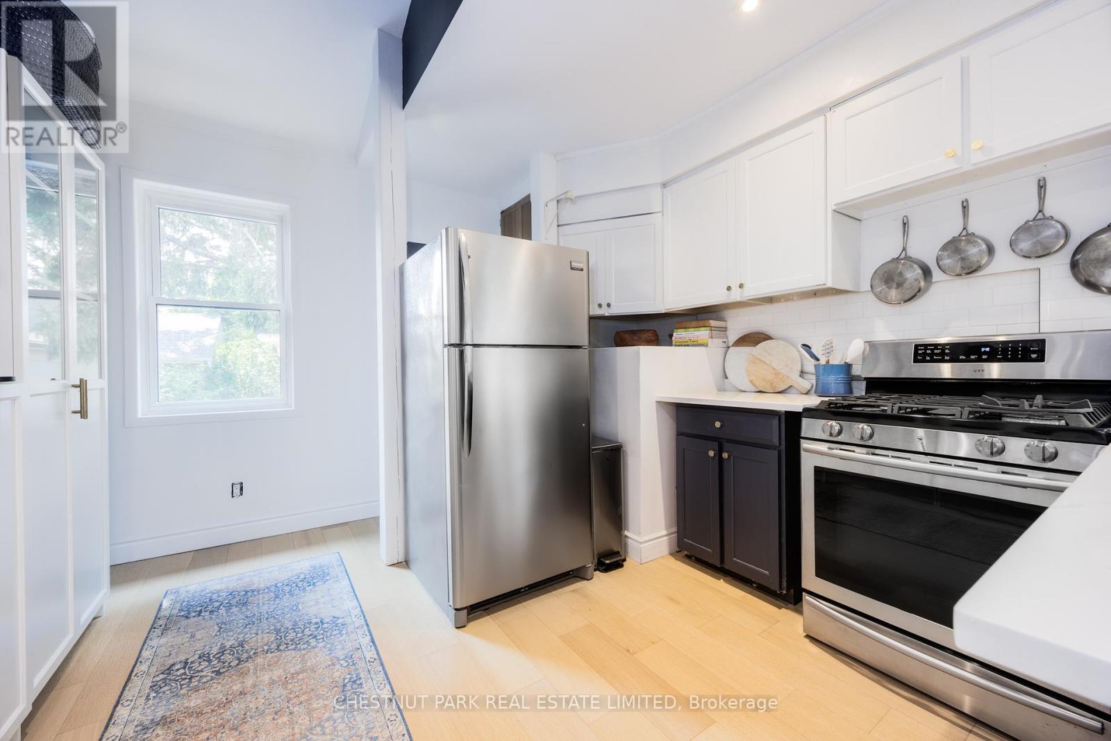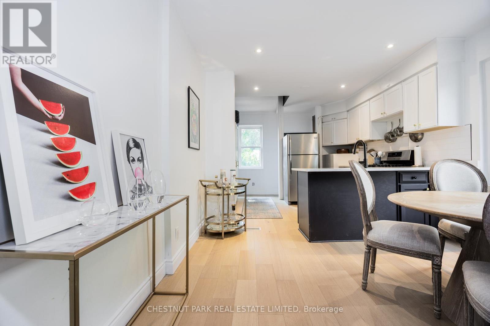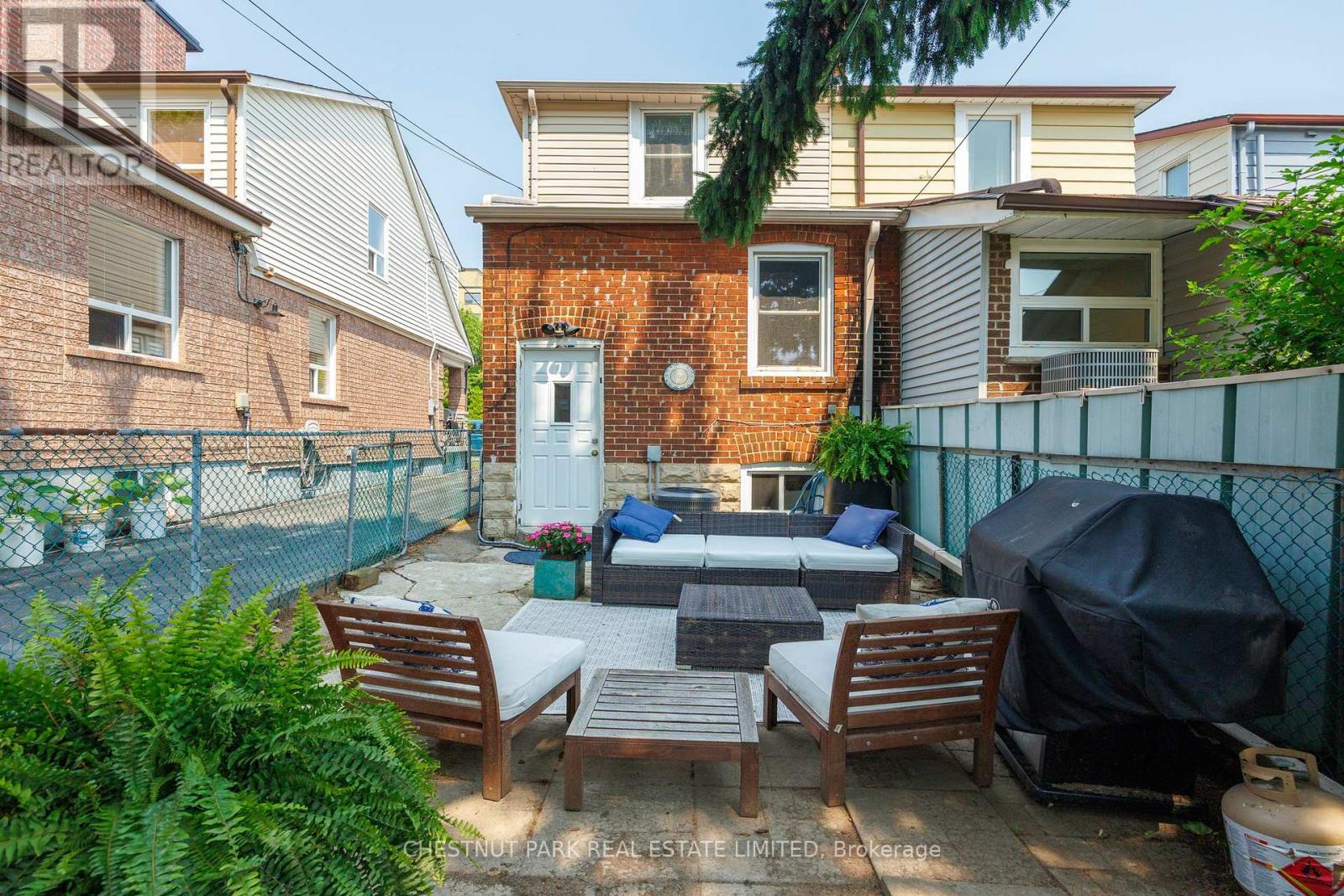 This cozy and beautifully updated 2-bedroom, 2-bathroom home perfectly blends classic charm with modern convenience in one of the city's most vibrant neighbourhoods. Thoughtfully renovated, it features new hardwood floors, a new roof, a new furnace, & air conditioning, ensuring year-round comfort and energy efficiency for years to come. Inside, you'll find a bright and functional layout with timeless details that add character throughout, including a second bedroom that can be used as a home office-perfect for remote work-and plenty of storage throughout. The open concept living space flows seamlessly to a private backyard patio, ideal for entertaining or quiet evenings outdoors. Just a short stroll to the lively shops, restaurants, and transit options on St. Clair West, this home offers the perfect mix of urban living and residential charm. A rare find in a sought-after neighbourhood that is ready for you to move in and enjoy! Carson and Dunlop Inspection available upon request. (id:51158)