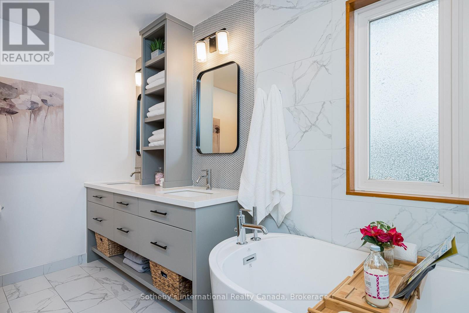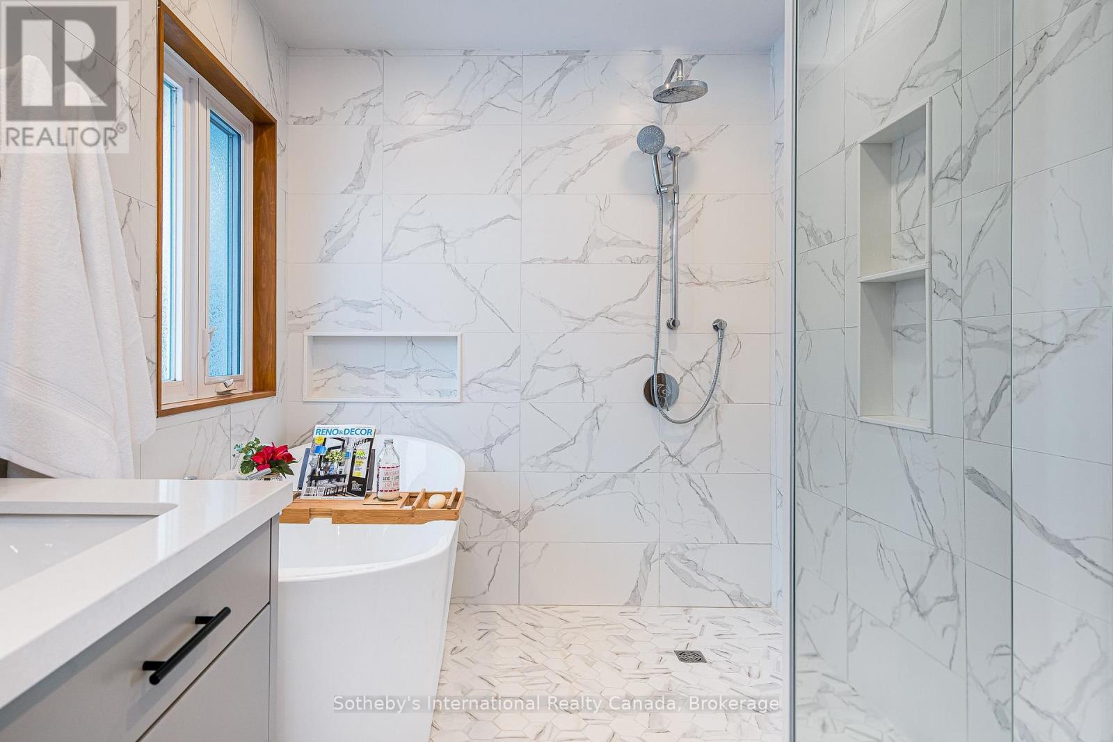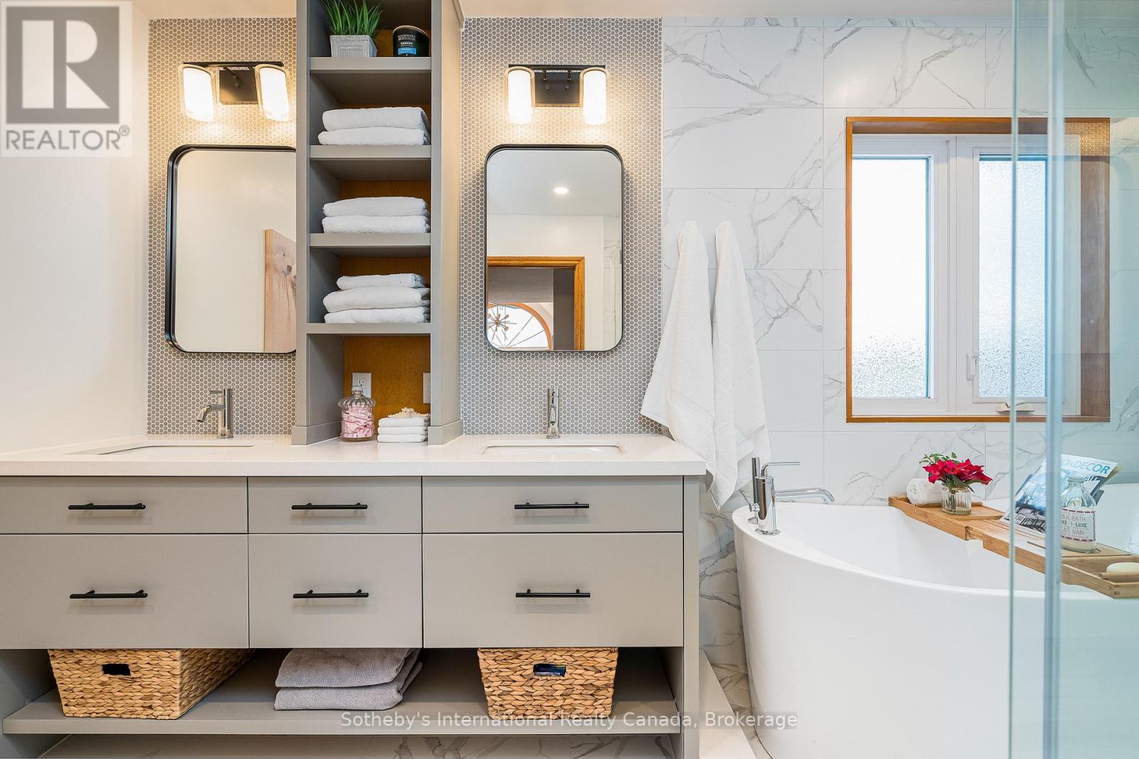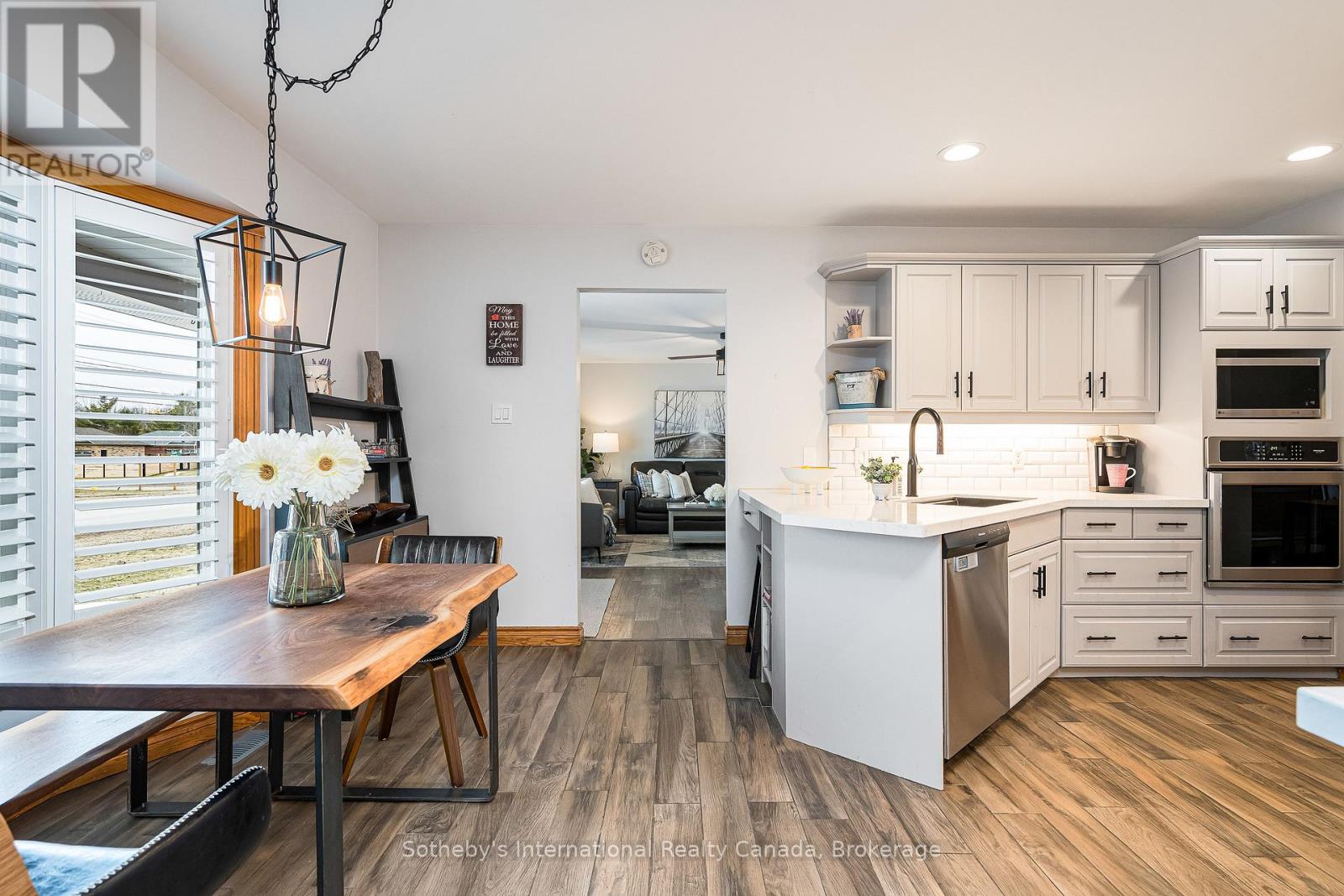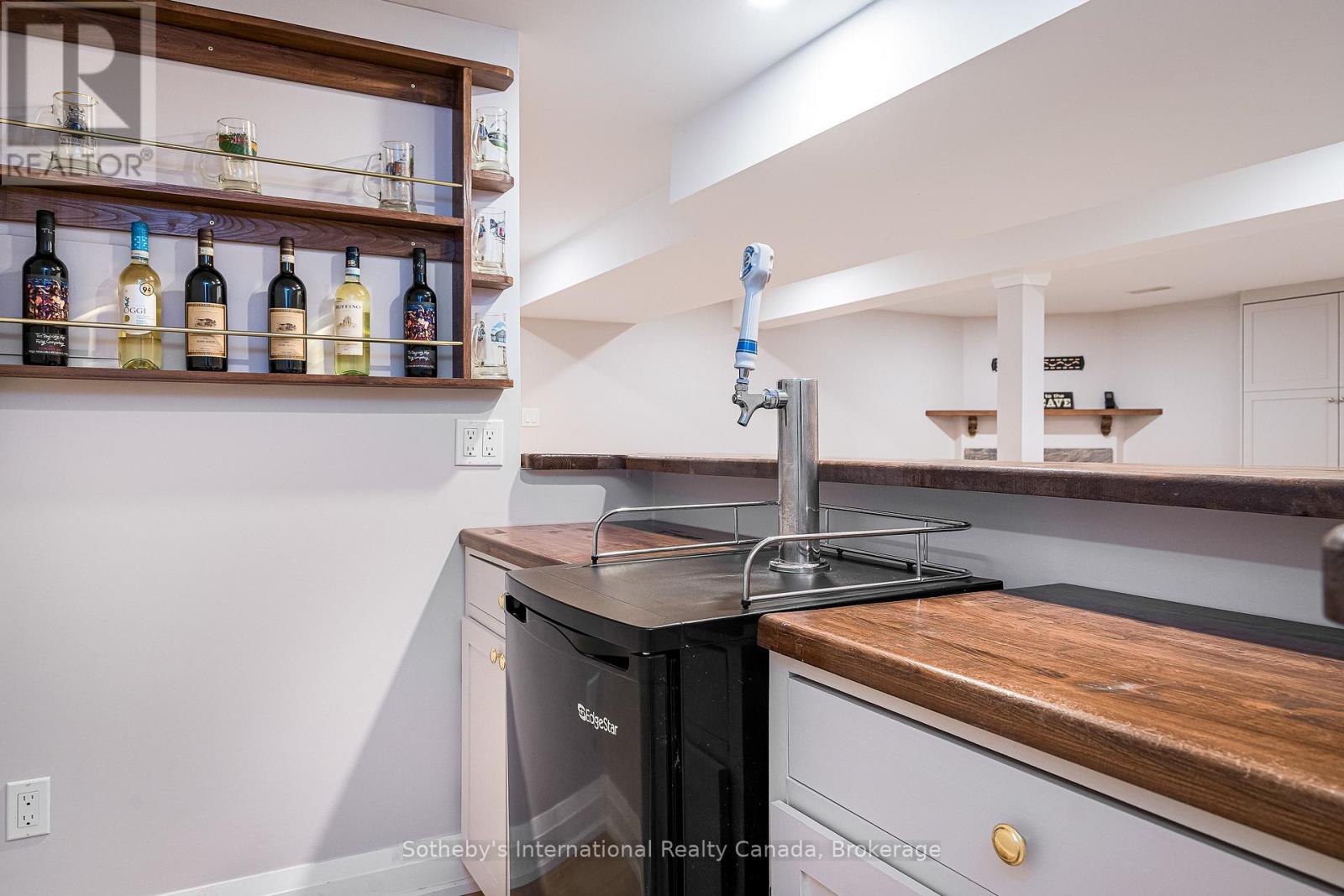 Welcome to 154 Mary Street in the heart of the beloved Village of Creemore. This classic Cape Cod-style home blends timeless character with the comfort and space of modern family living, offering over 3,000 sq ft of finished living space filled with natural light.The main floor features a warm and functional layout with a bright living room, separate dining room, and a comfortable family room perfect for relaxing or entertaining. At the heart of the home is the updated eat-in kitchen with quartz countertops, stainless steel appliances, and generous prep space. Main floor laundry and a convenient 3-piece bathroom add everyday practicality. Upstairs, three spacious bedrooms offer peaceful retreats, along with a beautifully updated 4-piece bathroom complete with a soaker tub and walk-in shower. The fully finished lower level provides excellent additional living space, featuring a large great room with a cozy gas fireplace, a built-in bar with kegerator, an additional bedroom, 2-piece bathroom, cold cellar, and a separate entrance from the garage-ideal for guests, extended family, or a private retreat. Outside, the fully fenced backyard offers a private setting with a deck and newly installed concrete patio seating area, perfect for summer entertaining. A detached workshop with power and a garden shed provide great space for hobbies, storage, or projects, all surrounded by beautifully landscaped grounds. Enjoy the charm of village living while being just a short drive to Collingwood, Blue Mountain Resort, Devil's Glen Ski Club, and Mad River Golf Club. (id:51158)