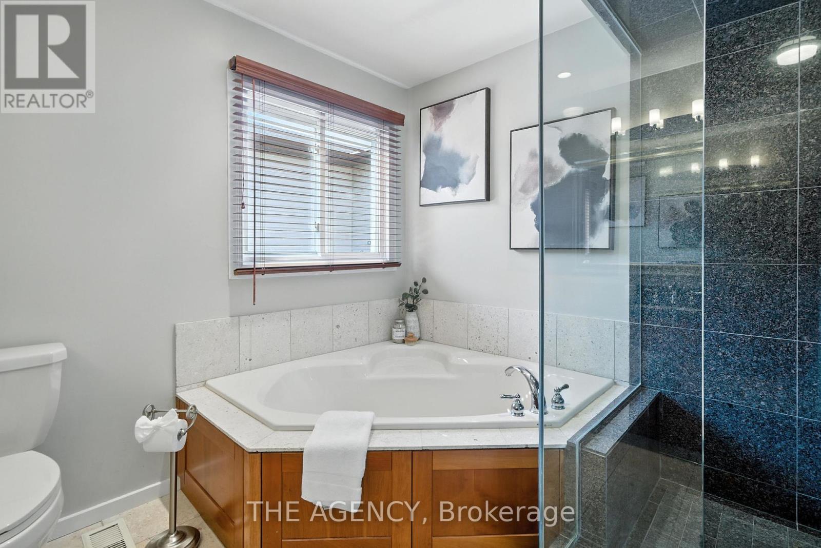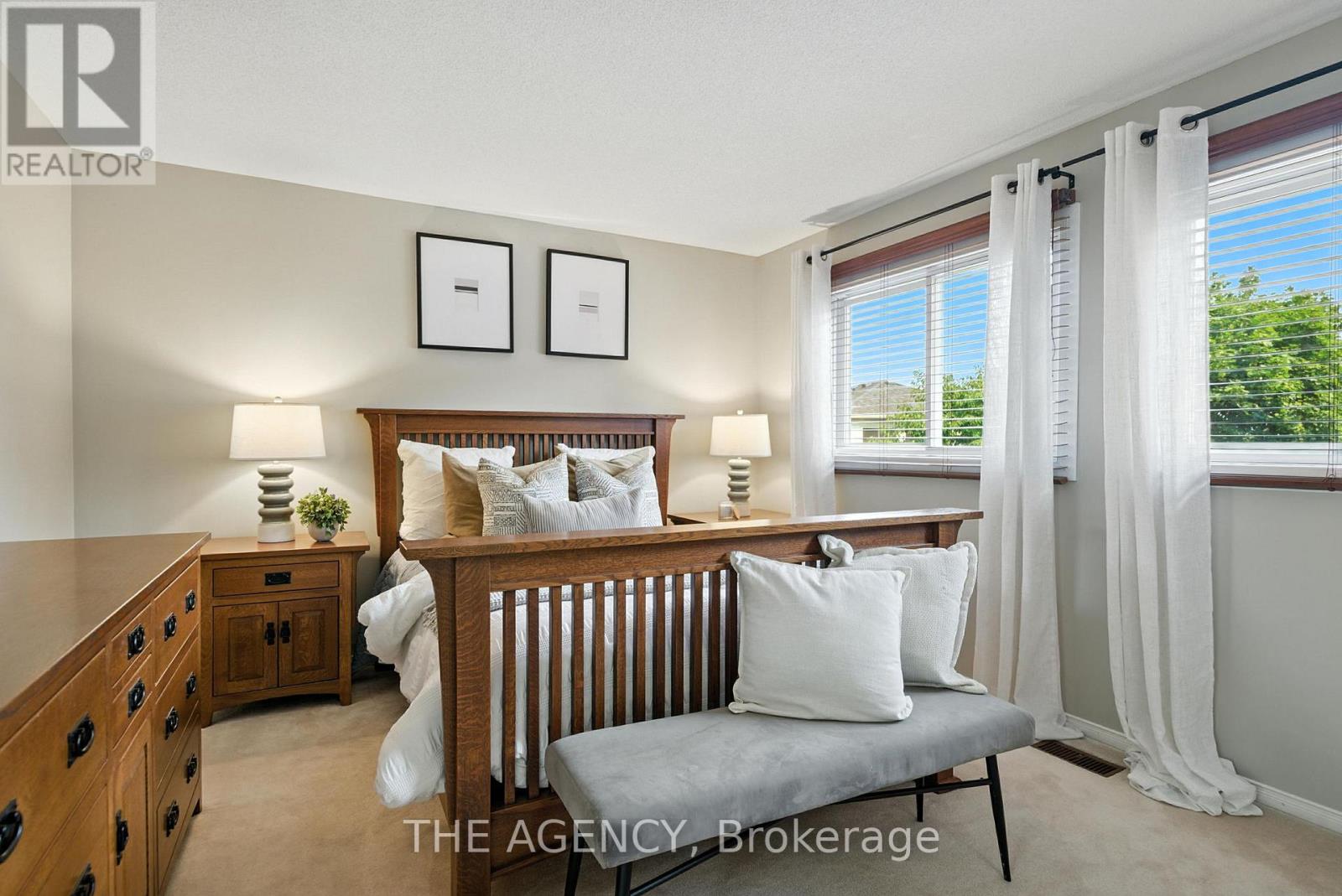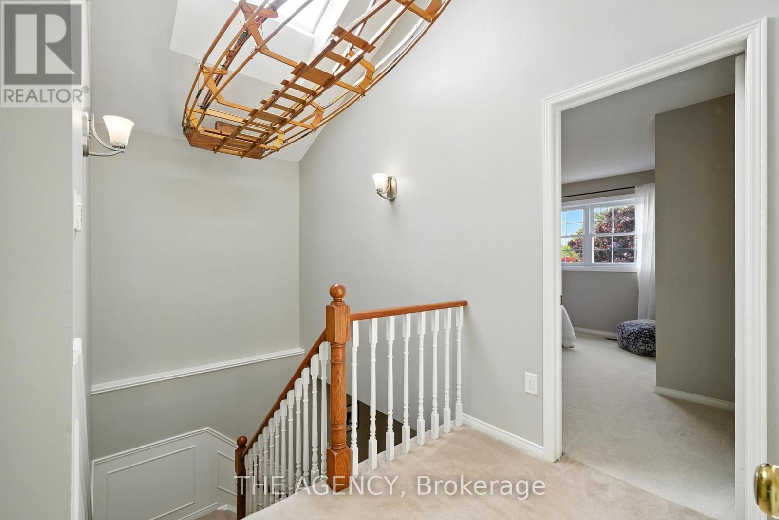 Welcome to this beautifully maintained and tastefully updated home nestled in the highly desirable Brock Ridges neighbourhood. From the moment you arrive, the pride of ownership is undeniable - from the manicured gardens and freshly painted exterior doors to the charming front porch, perfect for morning coffee or evening relaxation. Step inside and feel instantly at ease. A calming neutral palette, abundant natural light, and thoughtful finishes create a warm and inviting atmosphere. The main floor features a slate-tiled front entryway, elegant formal living and dining rooms, a cozy family room with a gas fireplace, and an eat-in kitchen with stainless steel appliances overlooking a spacious deck and fully fenced backyard - ideal for entertaining or family time. Smart home features include Blink security cameras, a Nest thermostat, and WiFi-enabled light switches, offering added peace of mind and convenience. Upstairs, the custom vaulted ceiling (2015) with skylight (2022) and solar-powered blind (2022) enhances the sense of space and light. Three generously sized bedrooms include a serene primary retreat with a walk-in closet and a luxurious four-piece ensuite featuring a soaker tub and glass shower. The finished basement adds valuable flexible space for a rec room, home office, gym, or guest suite, and includes a spacious, well-equipped laundry room. Practicality meets comfort with no sidewalk to shovel, parking for up to six vehicles, and a heated, insulated double garage with hot/cold water plumbing and a high-security lock- perfect for a workshop or dream man cave. Additional highlights include: roof (2020), eaves (2023), furnace (2015), central vac, new garage heater (2025). All of this in a family-friendly location close to top-rated schools, restaurants, shopping, places of worship, public transit, and quick access to Highways 401 & 407. This is the one you've been waiting for - a true turnkey home that checks all the boxes. (id:51158)