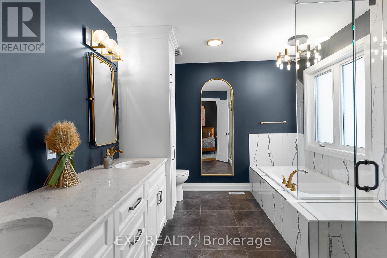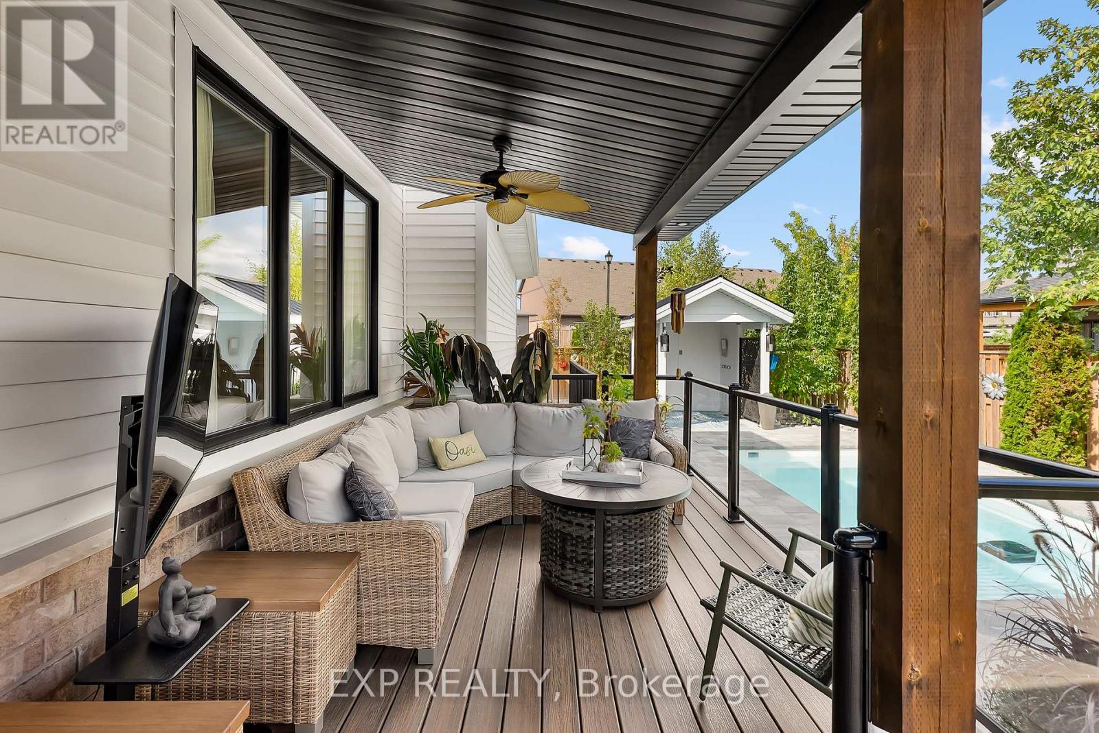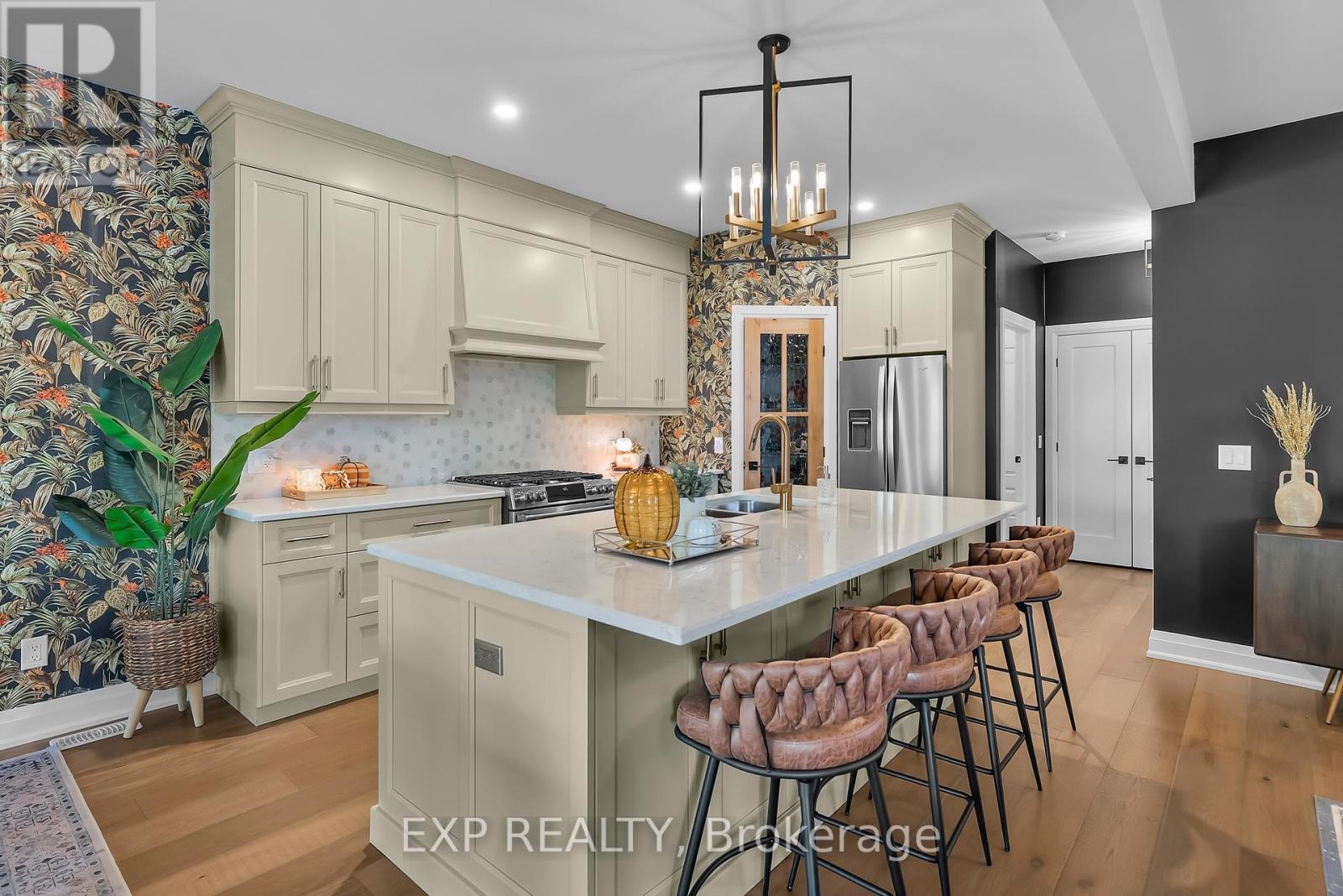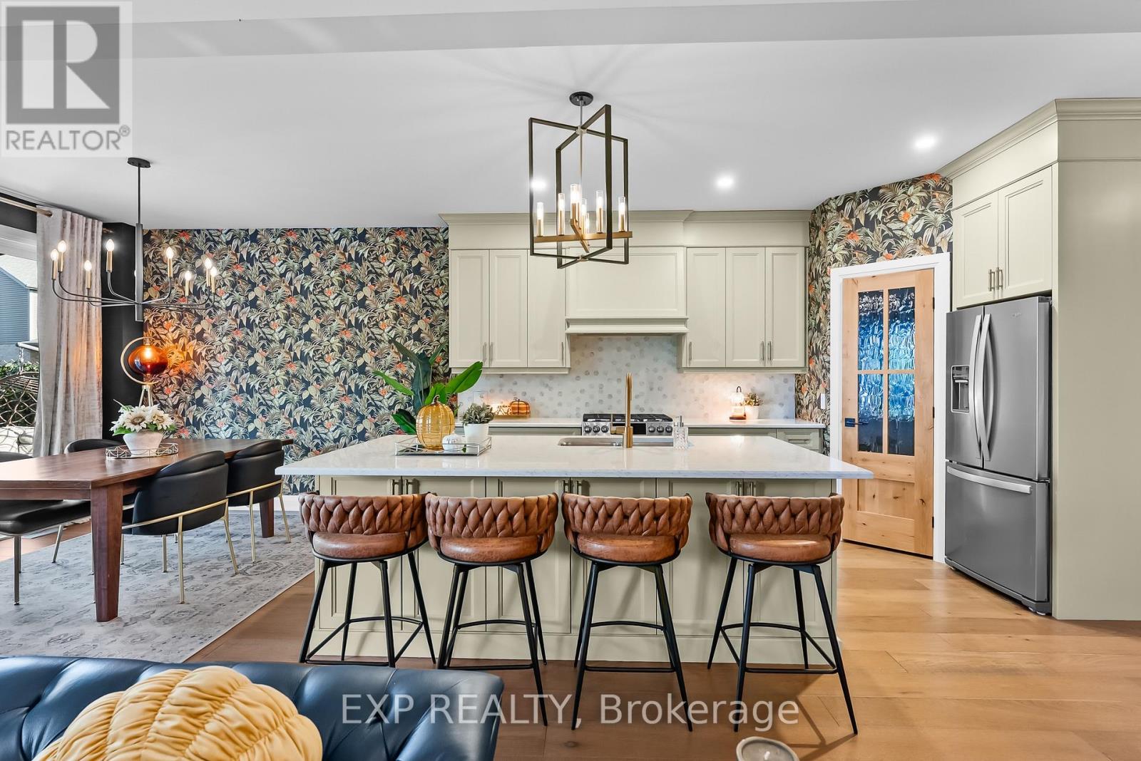 Welcome to this custom-built showpiece tucked in one of Fonthill's most coveted neighbourhoods. A home that balances timeless elegance with everyday comfort. At the heart of the design is a fully self-contained main-floor in-law suite with its own entrance, kitchen, and living space. Whether it's for family, guests, or a private rental opportunity, this thoughtful addition creates effortless flexibility and independence without compromise. Step inside and experience the warmth and quality craftsmanship showcased in every detail, including beautiful natural stone fireplaces and refined finishes throughout. Two stunning kitchens by Oakridge Kitchens anchor the home, each finished with quartz countertops, custom cabinetry, and designer lighting from Dons Lighthouse. Nine-foot ceilings, solid-core doors, and oversized trim complete the upscale atmosphere. Upstairs, every bedroom includes a walk-in closet with built-ins, while the primary retreat features elegant coffered ceilings and a calming, refined aesthetic. Downstairs, the professionally finished lower level expands the possibilities with two full bathrooms, a recreation area, den, children's playroom, and a soundproof office or studio with a private bath a dream setup for creatives, remote professionals, or home-based businesses. There's even potential to add a second private apartment with separate access. Outside, the property feels like a boutique resort. Enjoy the brand-new 2024 Mova fiberglass saltwater pool with a heat pump, unwind under the custom cabana, or host gatherings on the covered composite deck and interlocking stone patio. Surrounded by mature cedar, birch, and maple trees, the landscape is designed for privacy, shade, and year-round beauty. Luxury, functionality, and serenity unite in this rare Fonthill offering a home that truly adapts to the way you live. (id:51158)