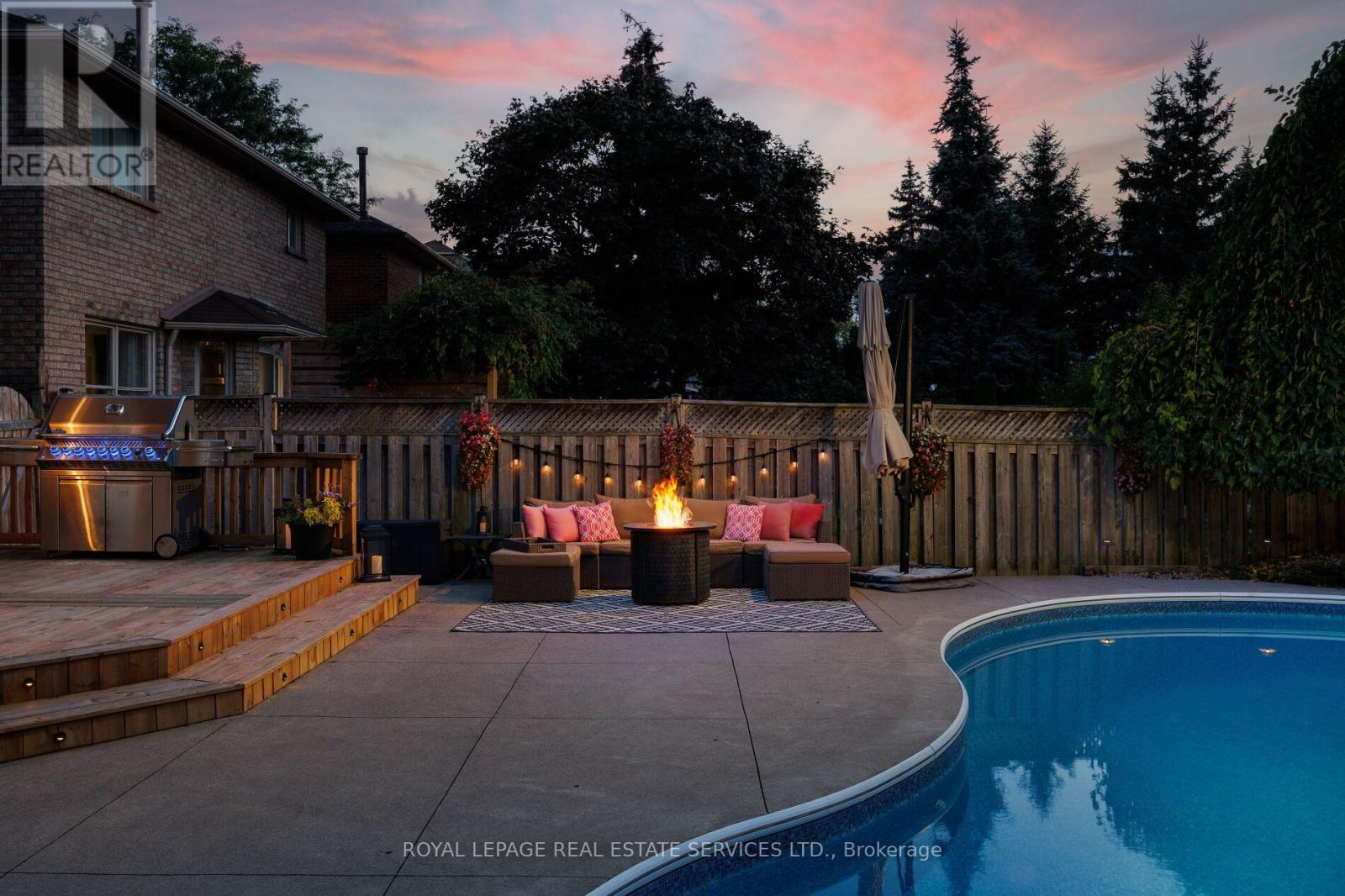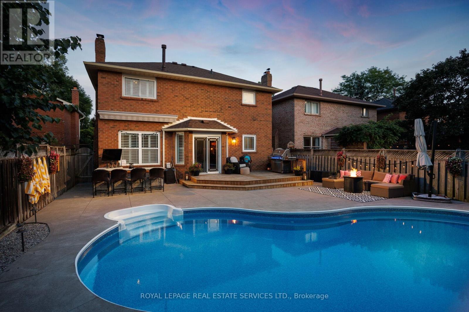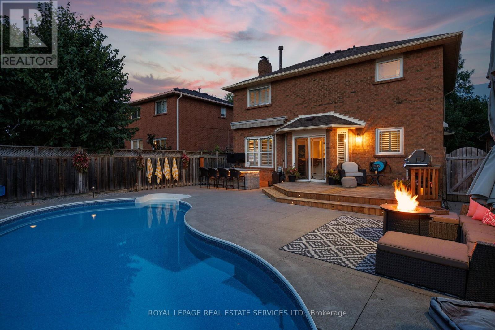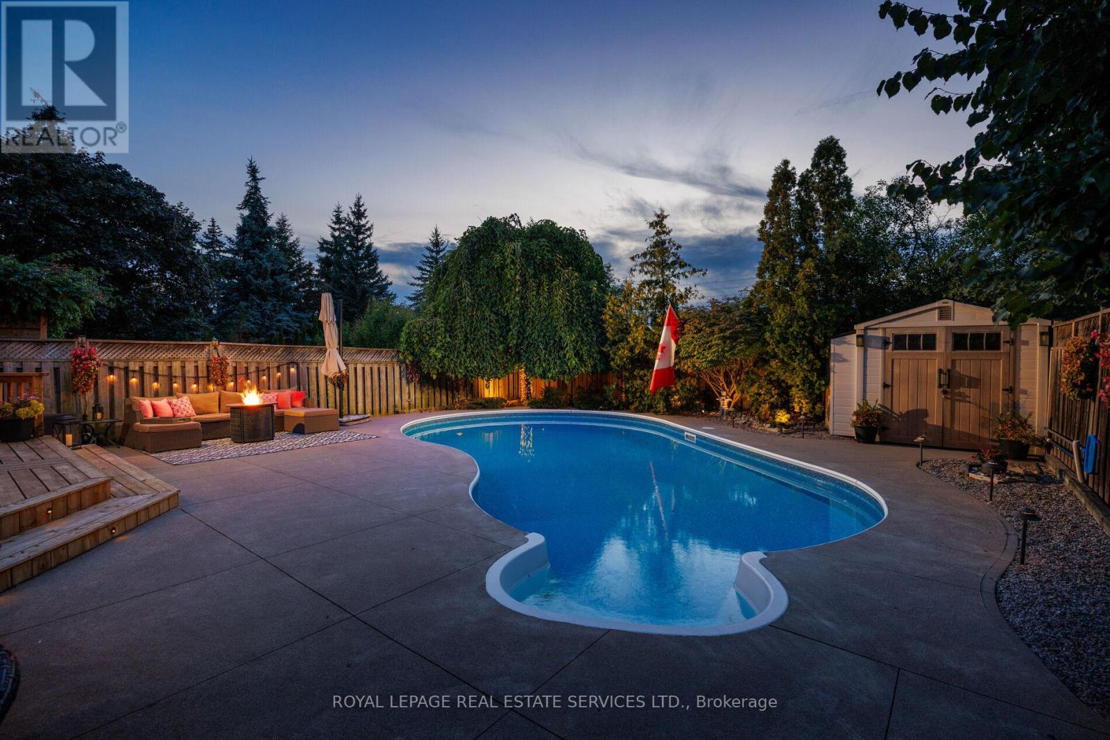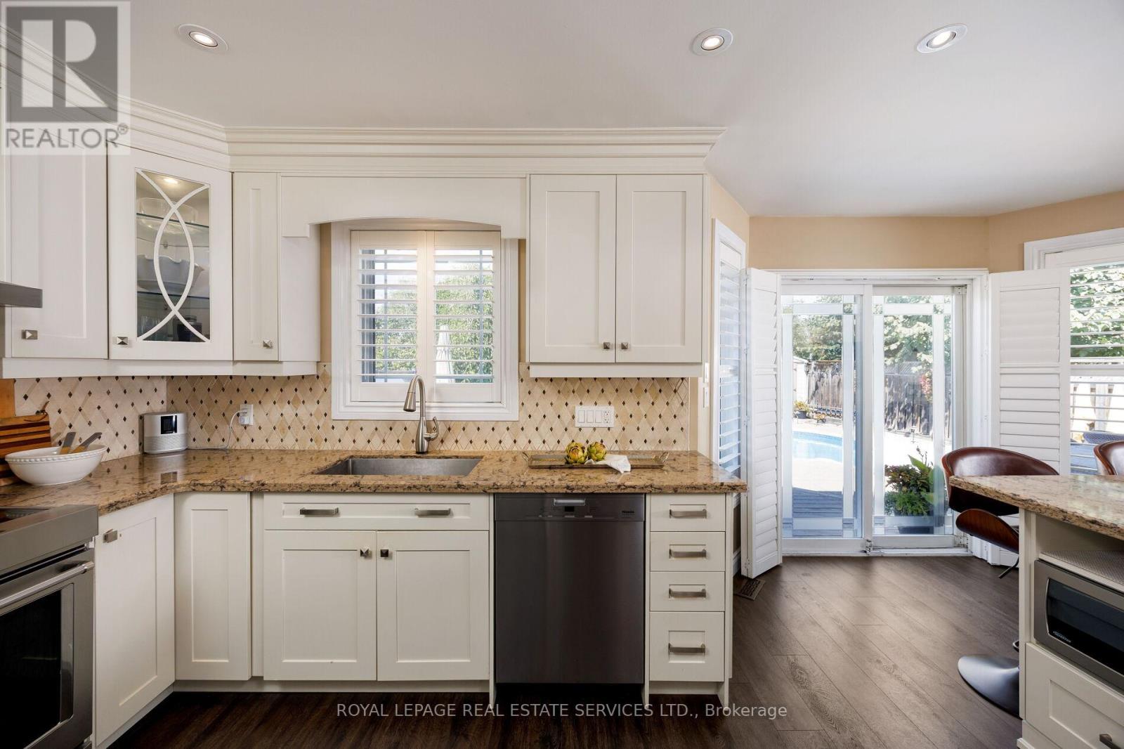 Welcome to Glen Abbey, one of Oakvilles most prestigious and family-friendly communities, known for its parks, trails, top-rated schools, and world-class Glen Abbey Golf Club. This beautifully renovated 3-bedroom, 4-bathroom home combines timeless design with modern upgrades, offering exceptional curb appeal and a private backyard oasis with an upgraded (2022) heated in-ground pool, new deck with lighting, expansive patio, and custom stone bar with awning, gas line, and bar fridge an entertainers dream. The chef-inspired kitchen is the heart of the home, featuring quartz countertops, stainless steel appliances, floor-to-ceiling cabinetry with crown mouldings, under-cabinet lighting, and an oversized island with seating for six, all with a seamless walkout to the pool. Formal living and dining rooms create elegant entertaining spaces, while the redesigned family room with a fireplace and custom built-ins is ideal for everyday living. Additional features include new maple hardwood and premium vinyl plank flooring (2022), an updated staircase with iron pickets, oversized windows, and a renovated laundry room. Upstairs, the serene primary retreat offers a spa-like ensuite with heated floors and a glass shower, complemented by two additional bedrooms and a stylish main bath. The fully finished lower level, renovated in 2022, adds valuable living space with a spacious recreation/media room with an electric fireplace, a custom office, a gym, and a 2-piece bath. Extensive updates include upgraded insulation (2021), a reshingled roof (2022), OmniLogic pool automation system and heater (2022), fridge and stove (2023), California Closets, shutters, quartz counters, and more. Steps to schools, Abbey Plaza, Glen Abbey Community Centre, Oakville Hospital, and with quick highway access, this home delivers the ultimate in luxury, lifestyle, and location.Outstanding! (id:51158)