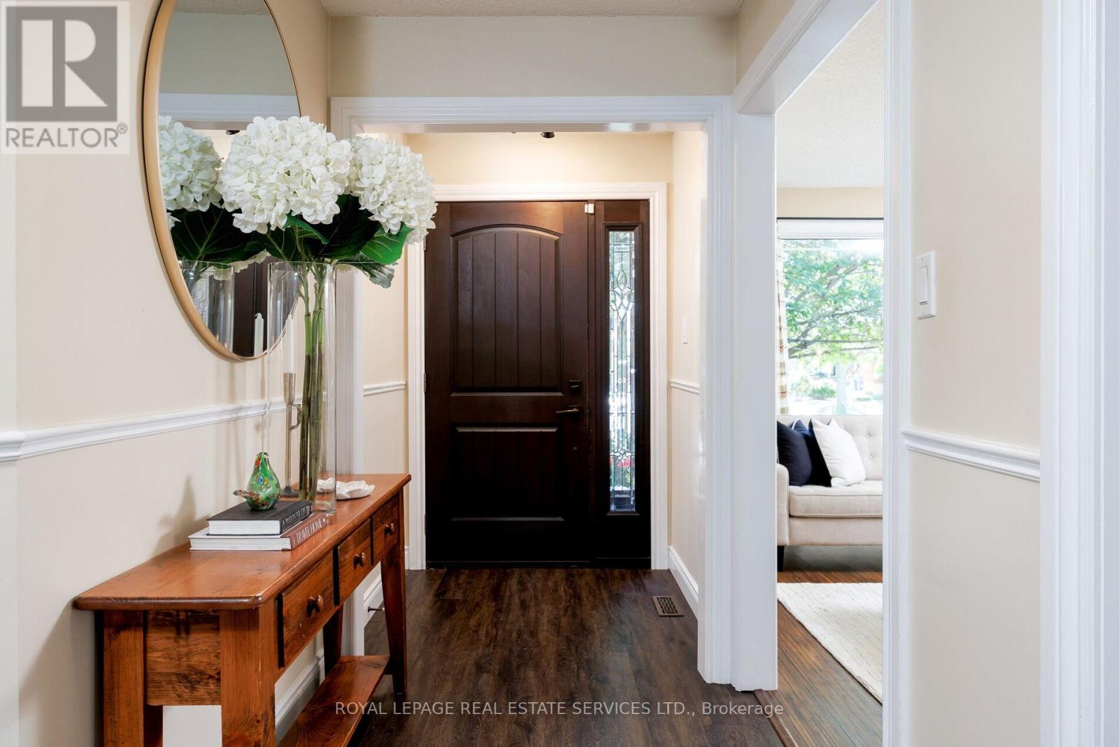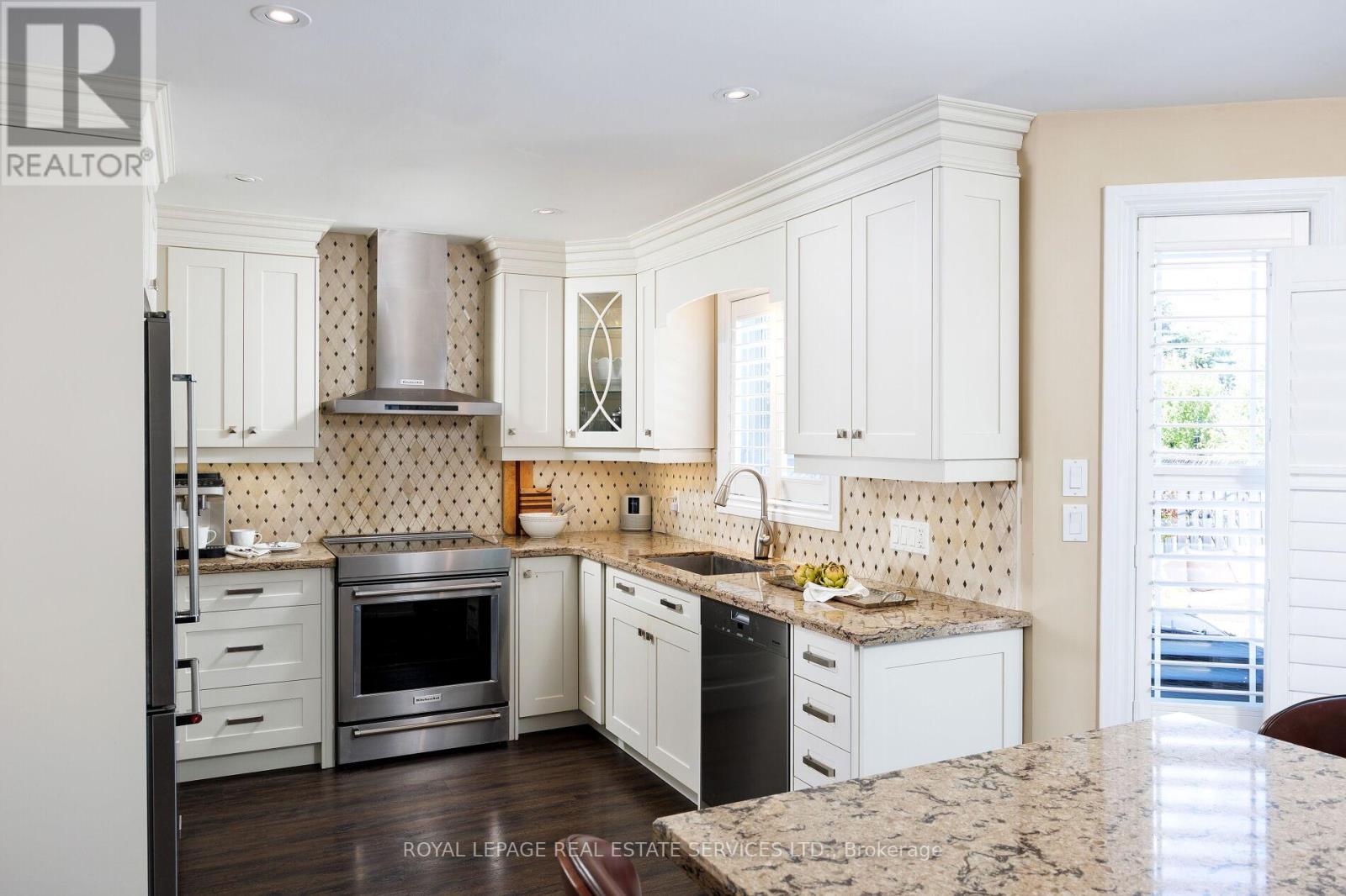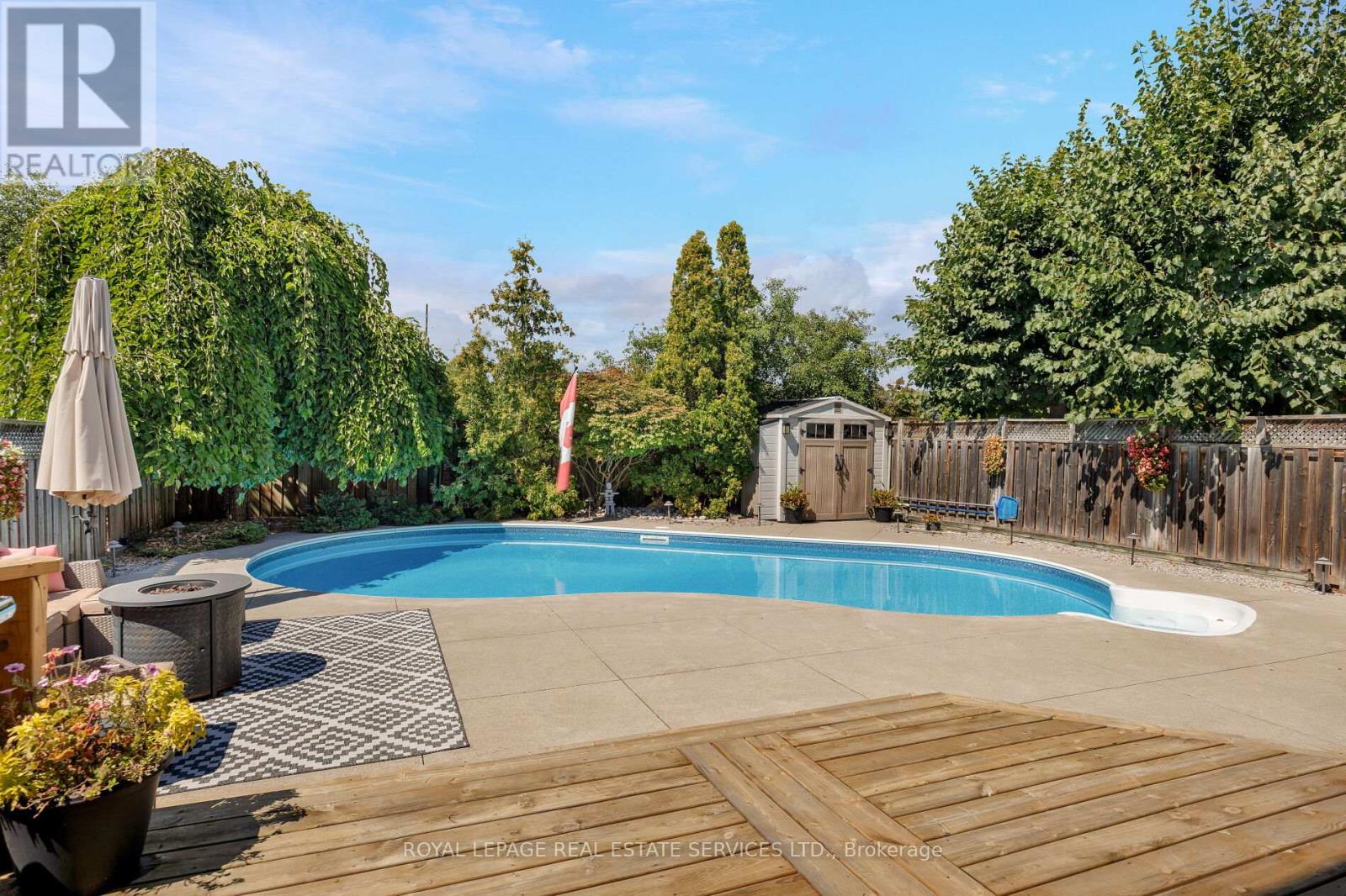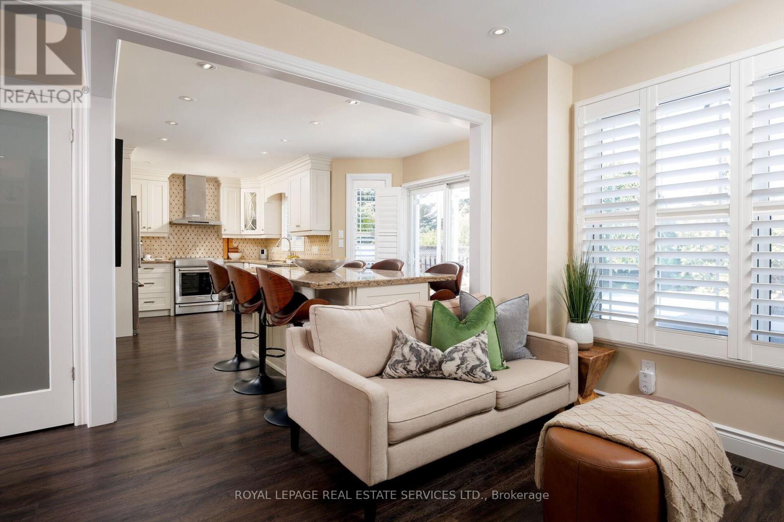 Welcome to Glen Abbey, one of Oakvilles most prestigious and family-friendly communities, known for its parks, trails, top-rated schools, and world-class Glen Abbey Golf Club. This beautifully renovated 3-bedroom, 4-bathroom home combines timeless design with modern upgrades, offering exceptional curb appeal and a private backyard oasis with an upgraded (2022) heated in-ground pool, new deck with lighting, expansive patio, and custom stone bar with awning, gas line, and bar fridge an entertainers dream. The chef-inspired kitchen is the heart of the home, featuring quartz countertops, stainless steel appliances, floor-to-ceiling cabinetry with crown mouldings, under-cabinet lighting, and an oversized island with seating for six, all with a seamless walkout to the pool. Formal living and dining rooms create elegant entertaining spaces, while the redesigned family room with a fireplace and custom built-ins is ideal for everyday living. Additional features include new maple hardwood and premium vinyl plank flooring (2022), an updated staircase with iron pickets, oversized windows, and a renovated laundry room. Upstairs, the serene primary retreat offers a spa-like ensuite with heated floors and a glass shower, complemented by two additional bedrooms and a stylish main bath. The fully finished lower level, renovated in 2022, adds valuable living space with a spacious recreation/media room with an electric fireplace, a custom office, a gym, and a 2-piece bath. Extensive updates include upgraded insulation (2021), a reshingled roof (2022), OmniLogic pool automation system and heater (2022), fridge and stove (2023), California Closets, shutters, quartz counters, and more. Steps to schools, Abbey Plaza, Glen Abbey Community Centre, Oakville Hospital, and with quick highway access, this home delivers the ultimate in luxury, lifestyle, and location.Outstanding! (id:51158)