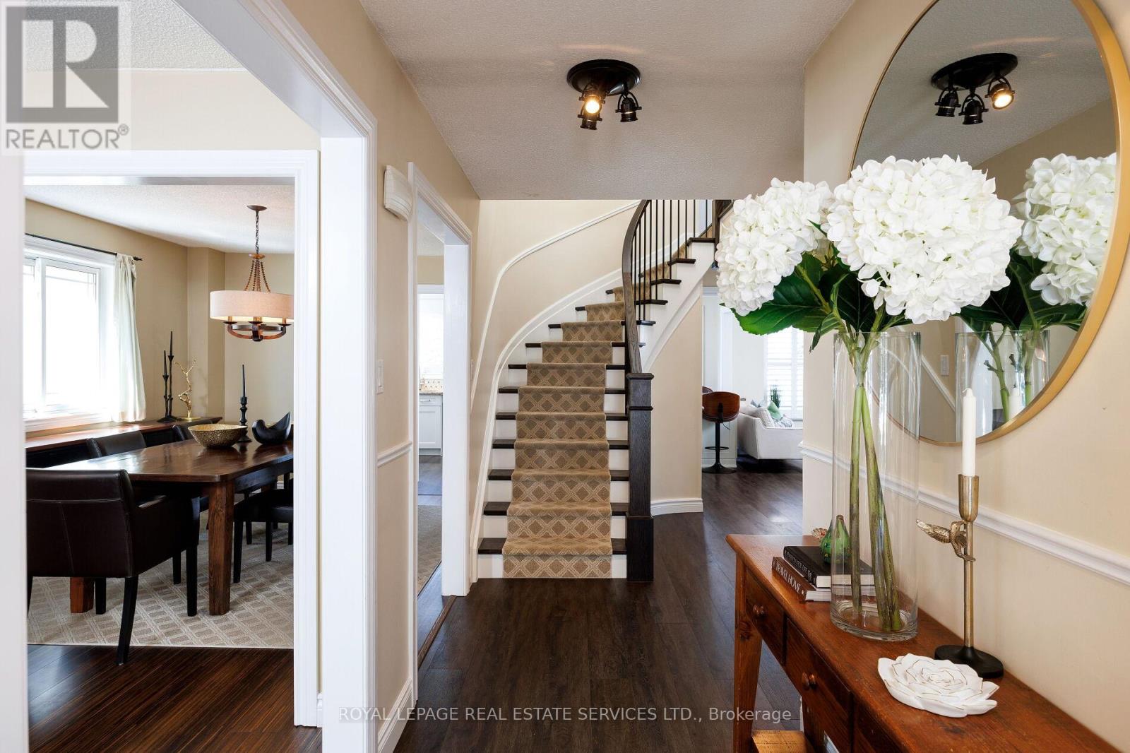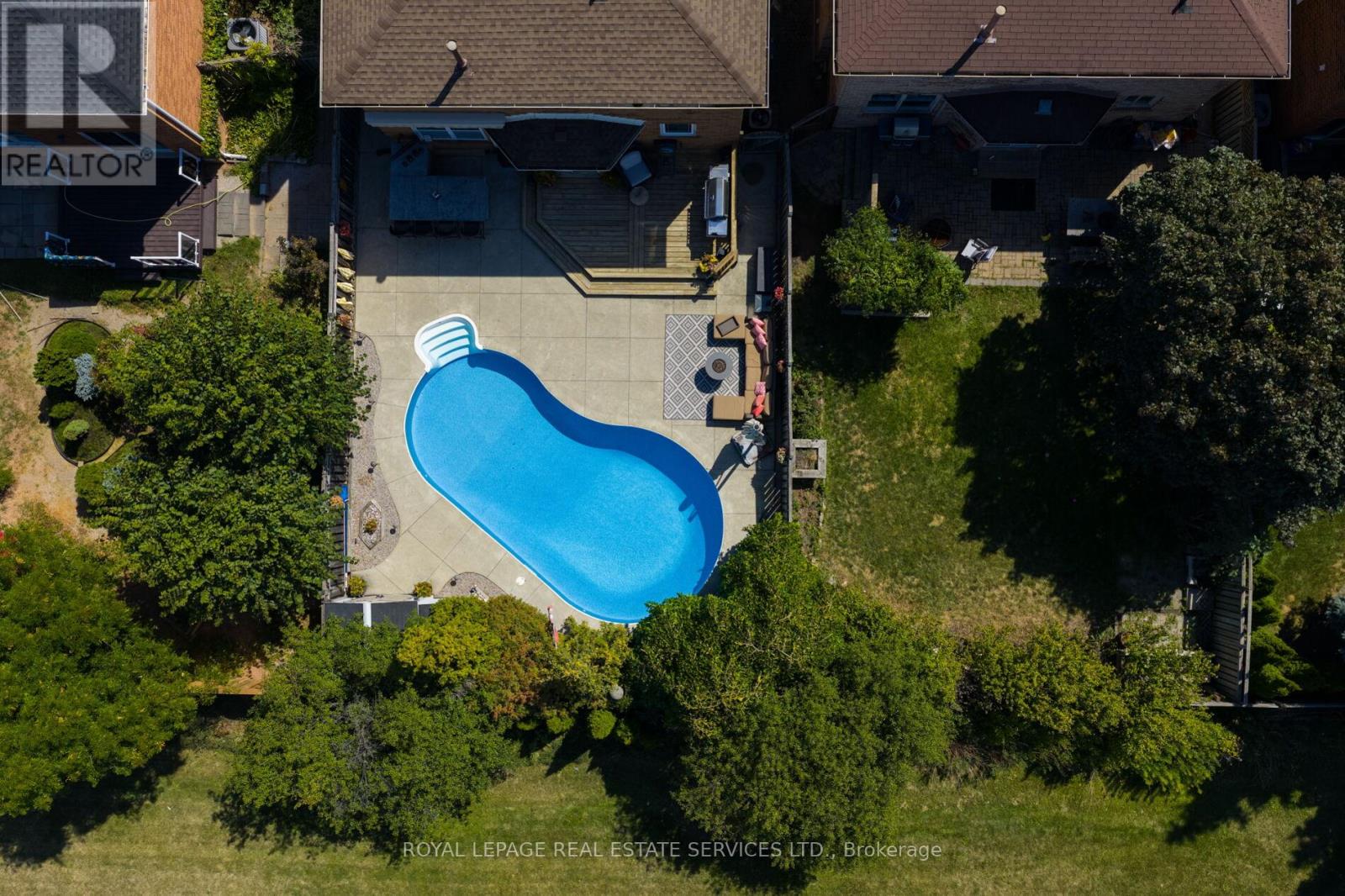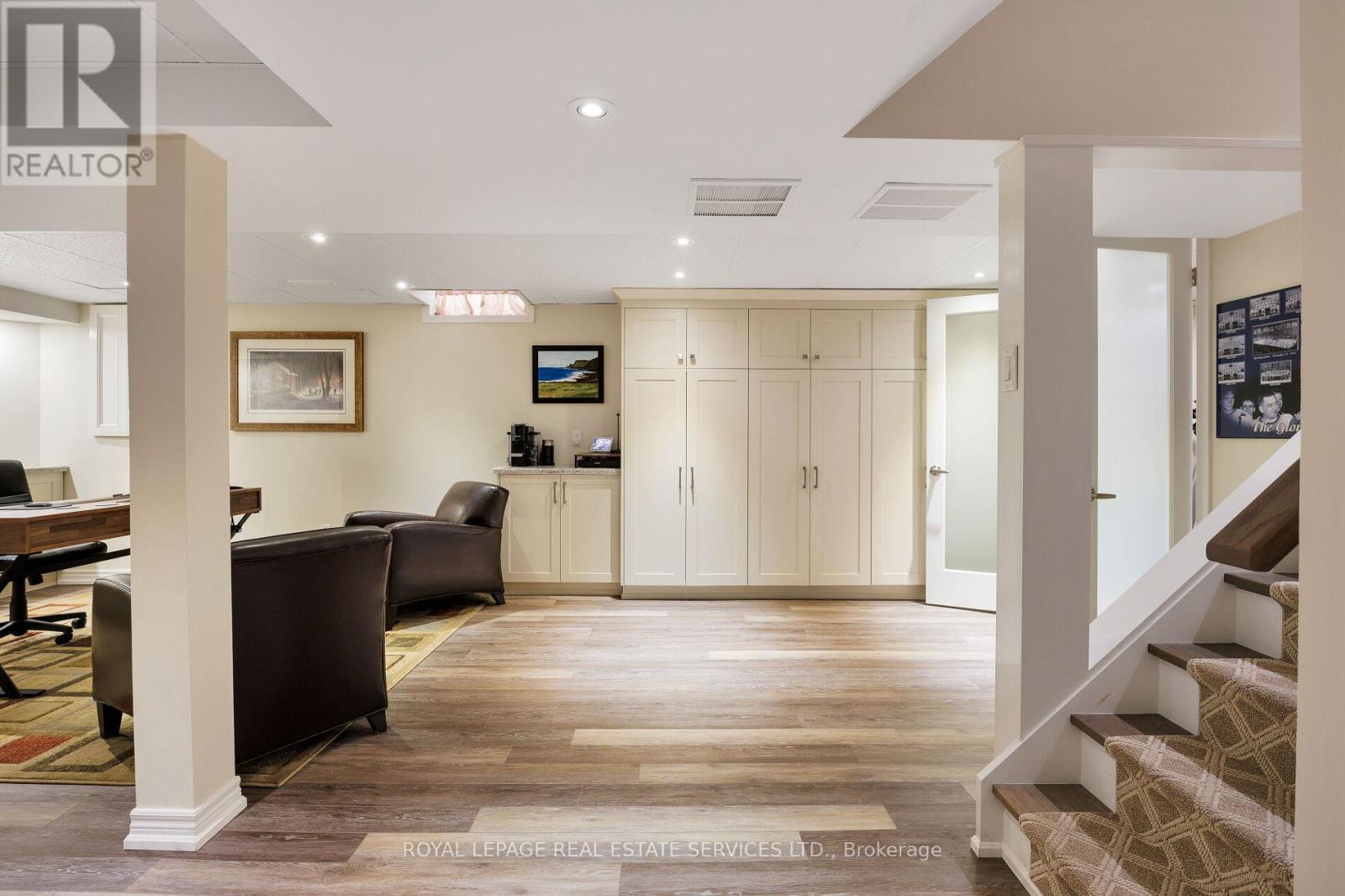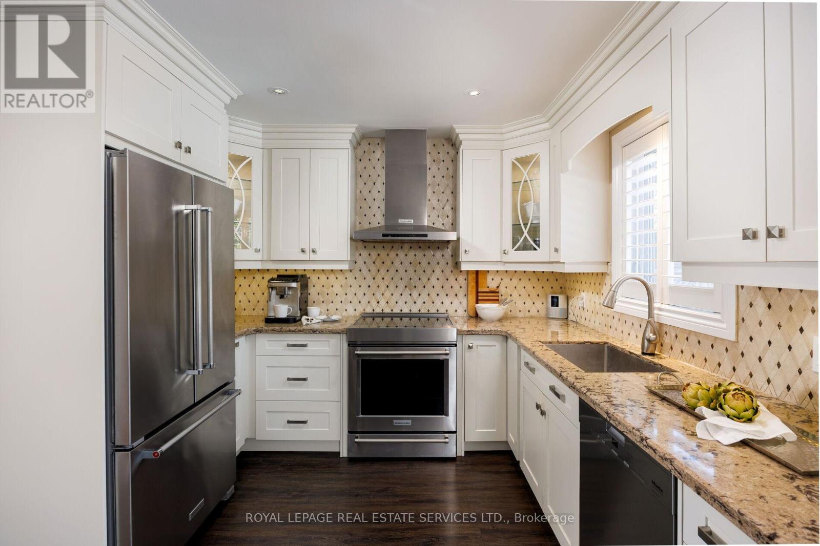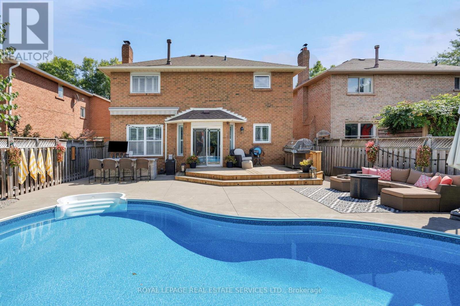 Welcome to Glen Abbey, one of Oakvilles most prestigious and family-friendly communities, known for its parks, trails, top-rated schools, and world-class Glen Abbey Golf Club. This beautifully renovated 3-bedroom, 4-bathroom home combines timeless design with modern upgrades, offering exceptional curb appeal and a private backyard oasis with an upgraded (2022) heated in-ground pool, new deck with lighting, expansive patio, and custom stone bar with awning, gas line, and bar fridge an entertainers dream. The chef-inspired kitchen is the heart of the home, featuring quartz countertops, stainless steel appliances, floor-to-ceiling cabinetry with crown mouldings, under-cabinet lighting, and an oversized island with seating for six, all with a seamless walkout to the pool. Formal living and dining rooms create elegant entertaining spaces, while the redesigned family room with a fireplace and custom built-ins is ideal for everyday living. Additional features include new maple hardwood and premium vinyl plank flooring (2022), an updated staircase with iron pickets, oversized windows, and a renovated laundry room. Upstairs, the serene primary retreat offers a spa-like ensuite with heated floors and a glass shower, complemented by two additional bedrooms and a stylish main bath. The fully finished lower level, renovated in 2022, adds valuable living space with a spacious recreation/media room with an electric fireplace, a custom office, a gym, and a 2-piece bath. Extensive updates include upgraded insulation (2021), a reshingled roof (2022), OmniLogic pool automation system and heater (2022), fridge and stove (2023), California Closets, shutters, quartz counters, and more. Steps to schools, Abbey Plaza, Glen Abbey Community Centre, Oakville Hospital, and with quick highway access, this home delivers the ultimate in luxury, lifestyle, and location.Outstanding! (id:51158)