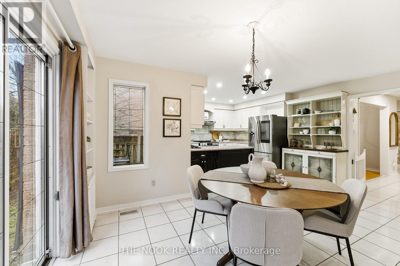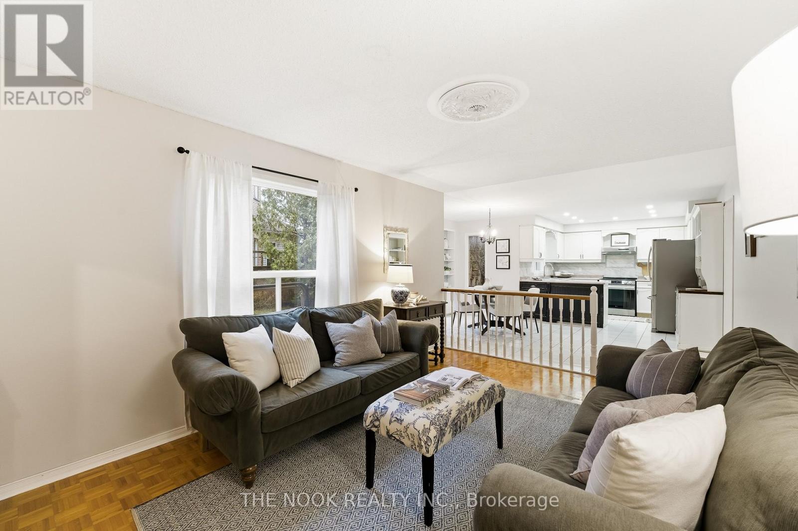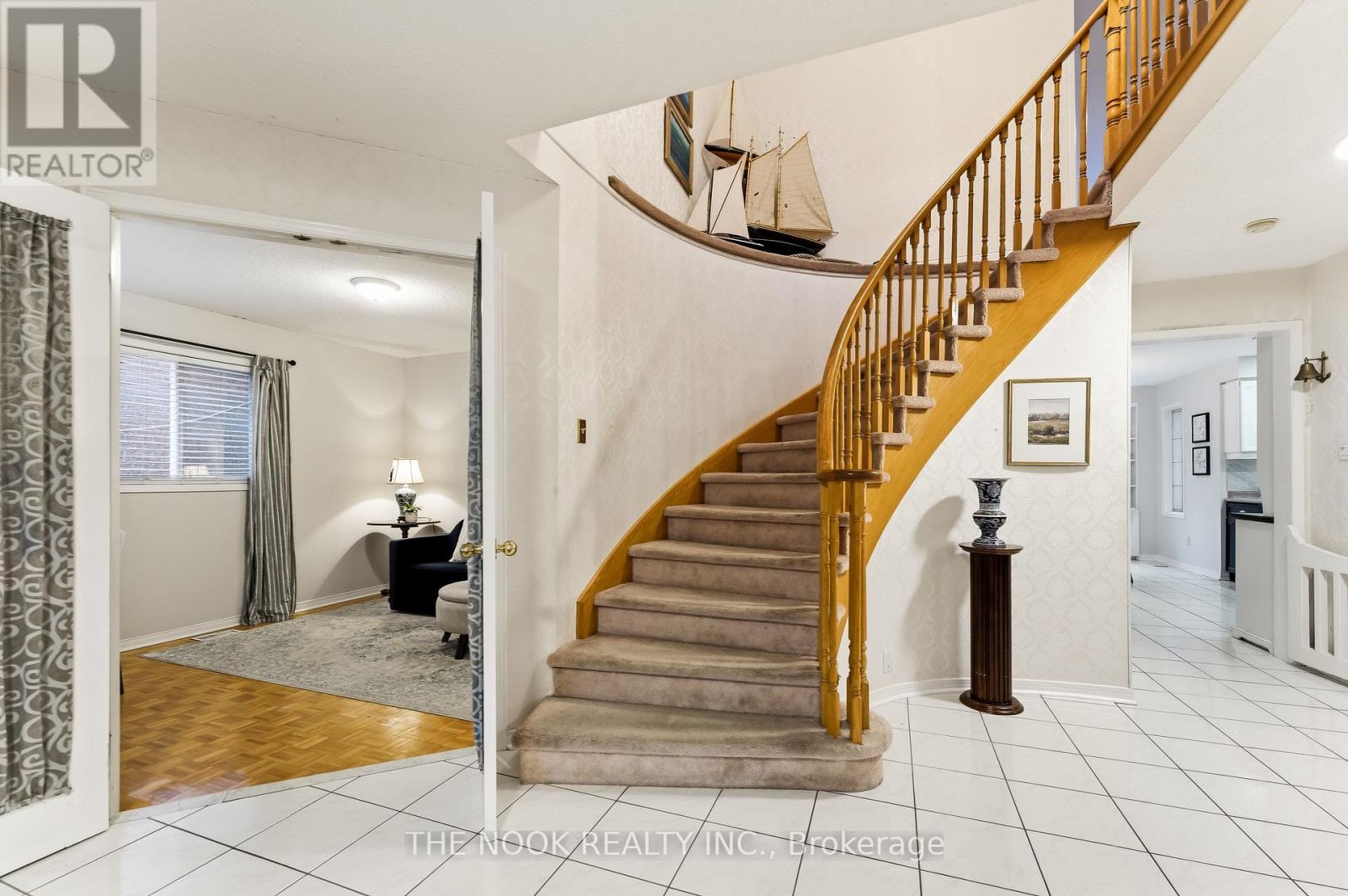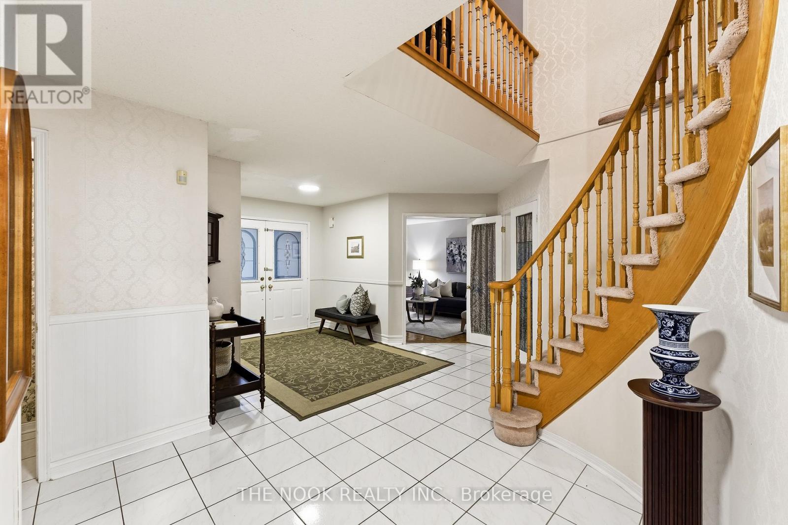 Welcome to 1565 Oakburn St, a beautifully maintained all-brick family home in the highly sought-after Highbush community of Pickering. Offering 2,823 sq ft of thoughtfully designed living space, this 4-bedroom, 3-bathroom residence sits on a premium 49 ft frontage lot with a double car garage and rare 3-car wide driveway. Freshly painted with upgraded lighting throughout, the home presents a bright, move-in-ready interior. The spacious main floor features a rare, highly functional layout with a private office with French doors, separate living and dining rooms, and a welcoming family room-ideal for both everyday living and entertaining. Upstairs, the primary suite offers a large walk-in closet and a spacious private ensuite, creating a true retreat. The huge unspoiled basement with bathroom rough-in provides endless potential to customize additional living space. Step outside to a fully fenced, mature backyard complete with a gazebo and garden shed-perfect for relaxing or hosting. All this, tucked away on a quiet, coveted street just a short walk to top-rated public schools and the Rouge River Park. Enjoy the convenience of being only 5 minutes to Hwy 401 and Pickering's prime shopping, while living in one of the area's most established and family-friendly neighbourhoods. (id:51158)