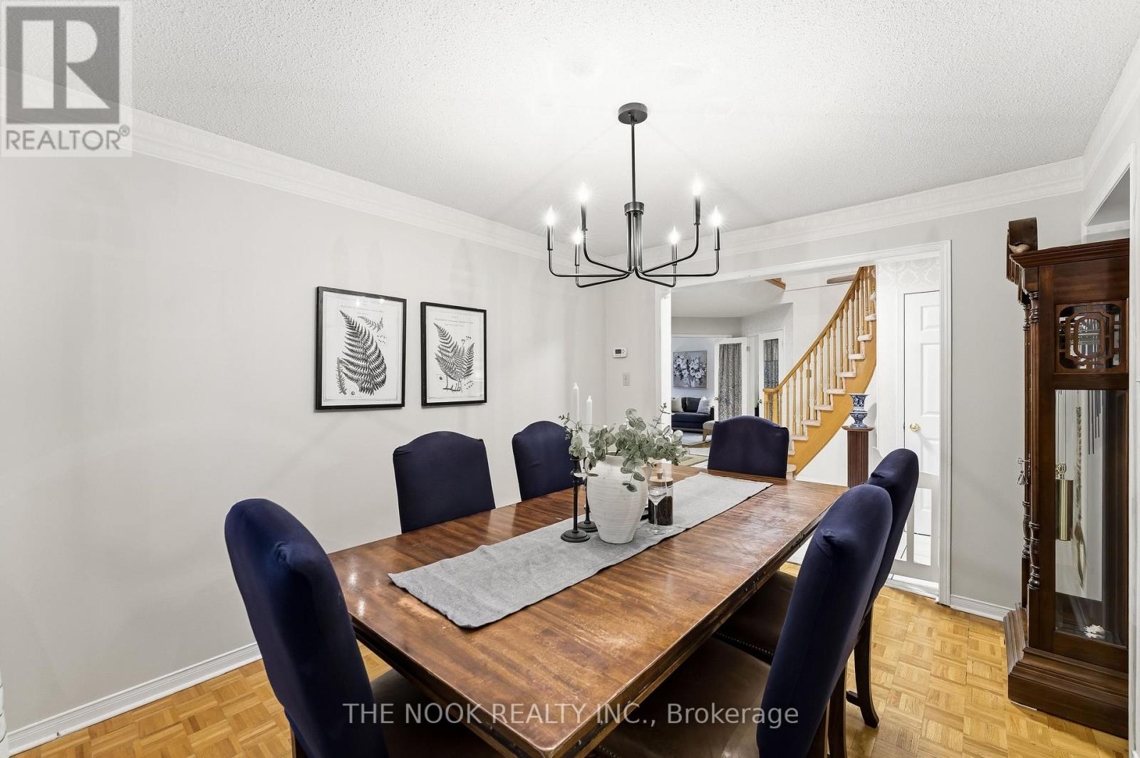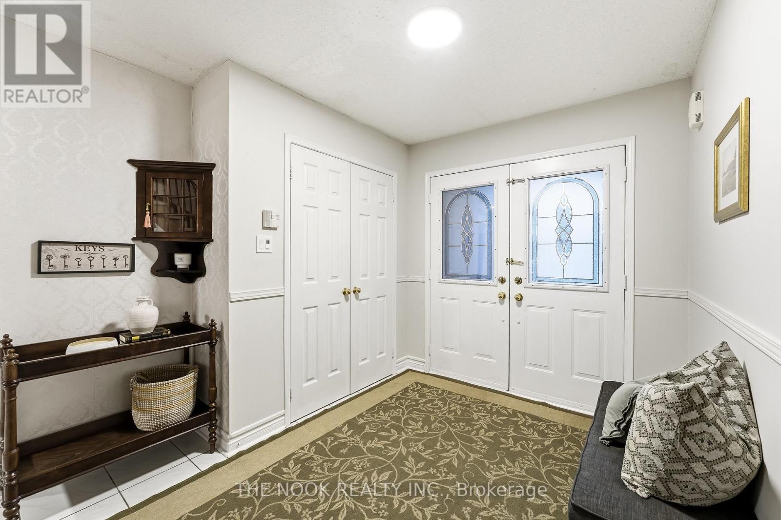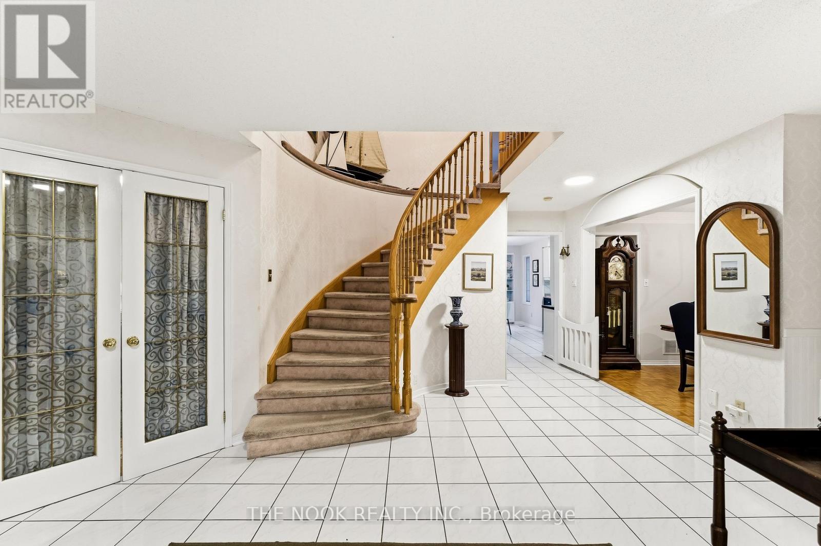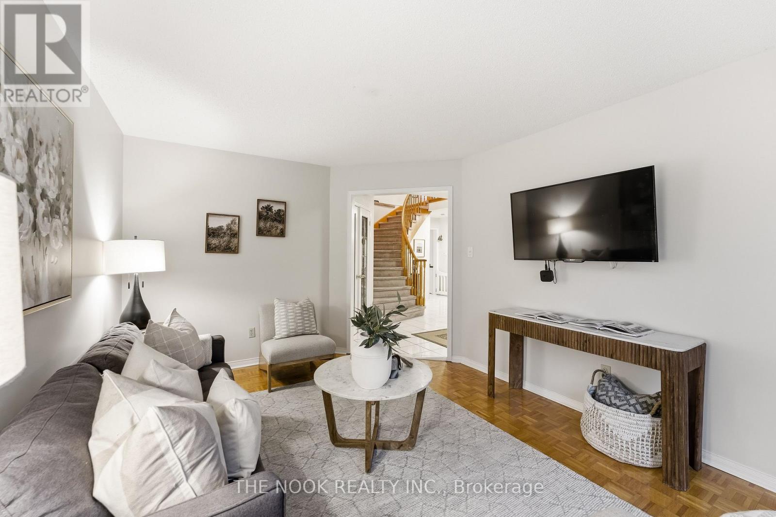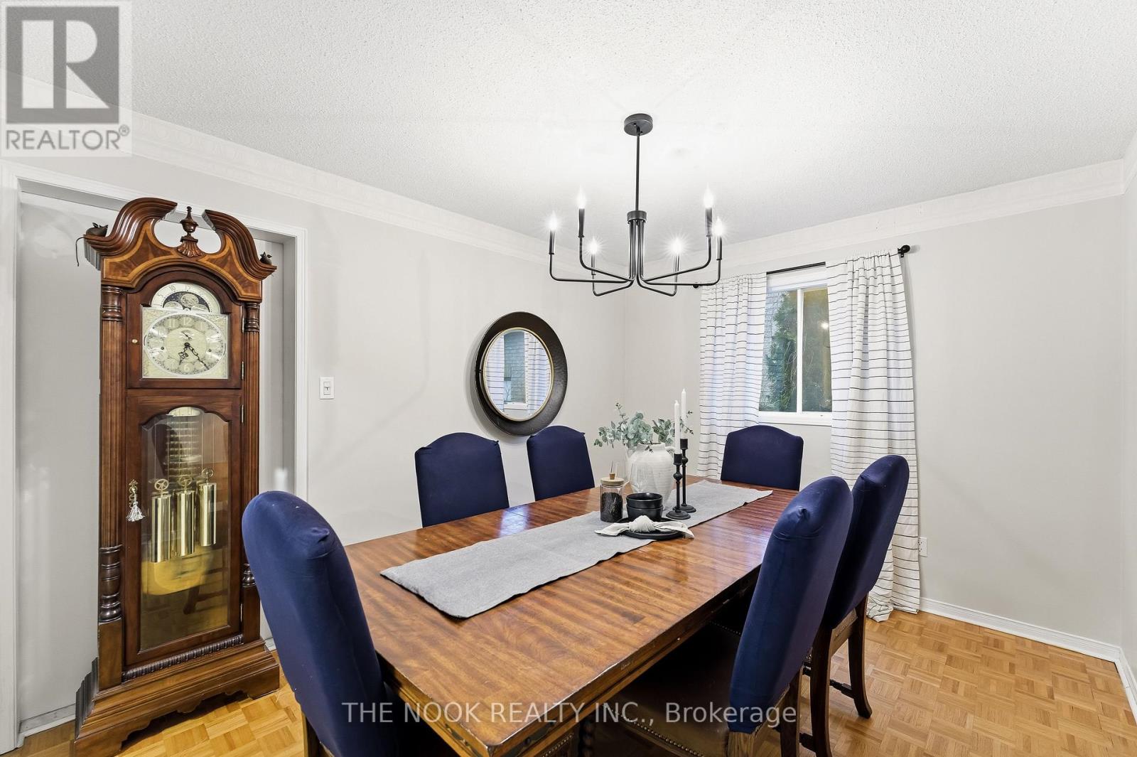 Welcome to 1565 Oakburn St, a beautifully maintained all-brick family home in the highly sought-after Highbush community of Pickering. Offering 2,823 sq ft of thoughtfully designed living space, this 4-bedroom, 3-bathroom residence sits on a premium 49 ft frontage lot with a double car garage and rare 3-car wide driveway. Freshly painted with upgraded lighting throughout, the home presents a bright, move-in-ready interior. The spacious main floor features a rare, highly functional layout with a private office with French doors, separate living and dining rooms, and a welcoming family room-ideal for both everyday living and entertaining. Upstairs, the primary suite offers a large walk-in closet and a spacious private ensuite, creating a true retreat. The huge unspoiled basement with bathroom rough-in provides endless potential to customize additional living space. Step outside to a fully fenced, mature backyard complete with a gazebo and garden shed-perfect for relaxing or hosting. All this, tucked away on a quiet, coveted street just a short walk to top-rated public schools and the Rouge River Park. Enjoy the convenience of being only 5 minutes to Hwy 401 and Pickering's prime shopping, while living in one of the area's most established and family-friendly neighbourhoods. (id:51158)