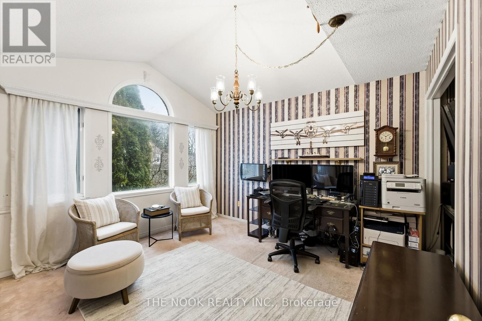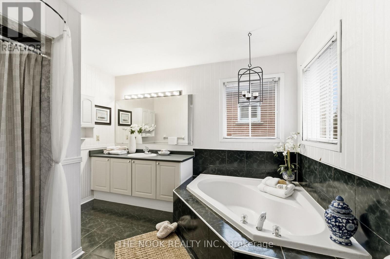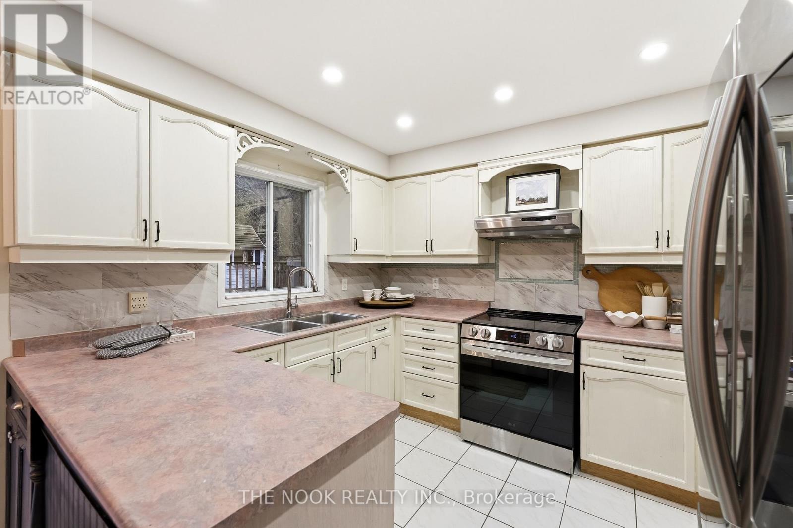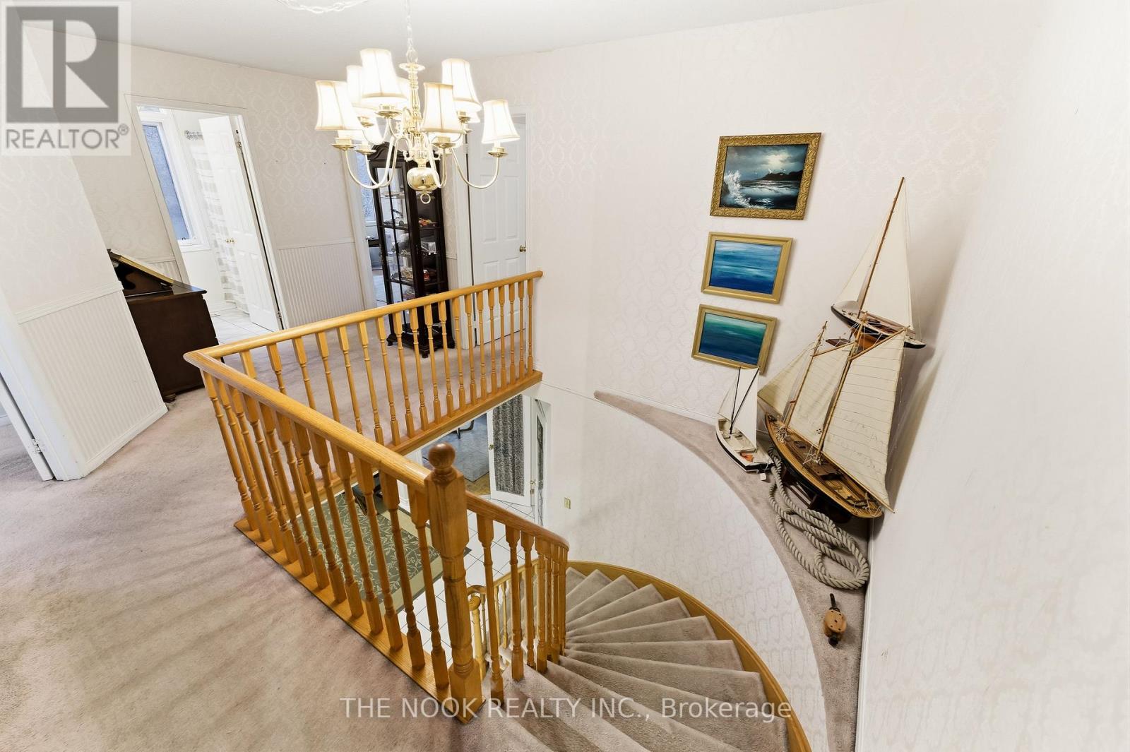Welcome to 1565 Oakburn St, a beautifully maintained all-brick family home in the highly sought-after Highbush community of Pickering. Offering 2,823 sq ft of thoughtfully designed living space, this 4-bedroom, 3-bathroom residence sits on a premium 49 ft frontage lot with a double car garage and rare 3-car wide driveway. Freshly painted with upgraded lighting throughout, the home presents a bright, move-in-ready interior. The spacious main floor features a rare, highly functional layout with a private office with French doors, separate living and dining rooms, and a welcoming family room-ideal for both everyday living and entertaining. Upstairs, the primary suite offers a large walk-in closet and a spacious private ensuite, creating a true retreat. The huge unspoiled basement with bathroom rough-in provides endless potential to customize additional living space. Step outside to a fully fenced, mature backyard complete with a gazebo and garden shed-perfect for relaxing or hosting. All this, tucked away on a quiet, coveted street just a short walk to top-rated public schools and the Rouge River Park. Enjoy the convenience of being only 5 minutes to Hwy 401 and Pickering's prime shopping, while living in one of the area's most established and family-friendly neighbourhoods. (id:51158)