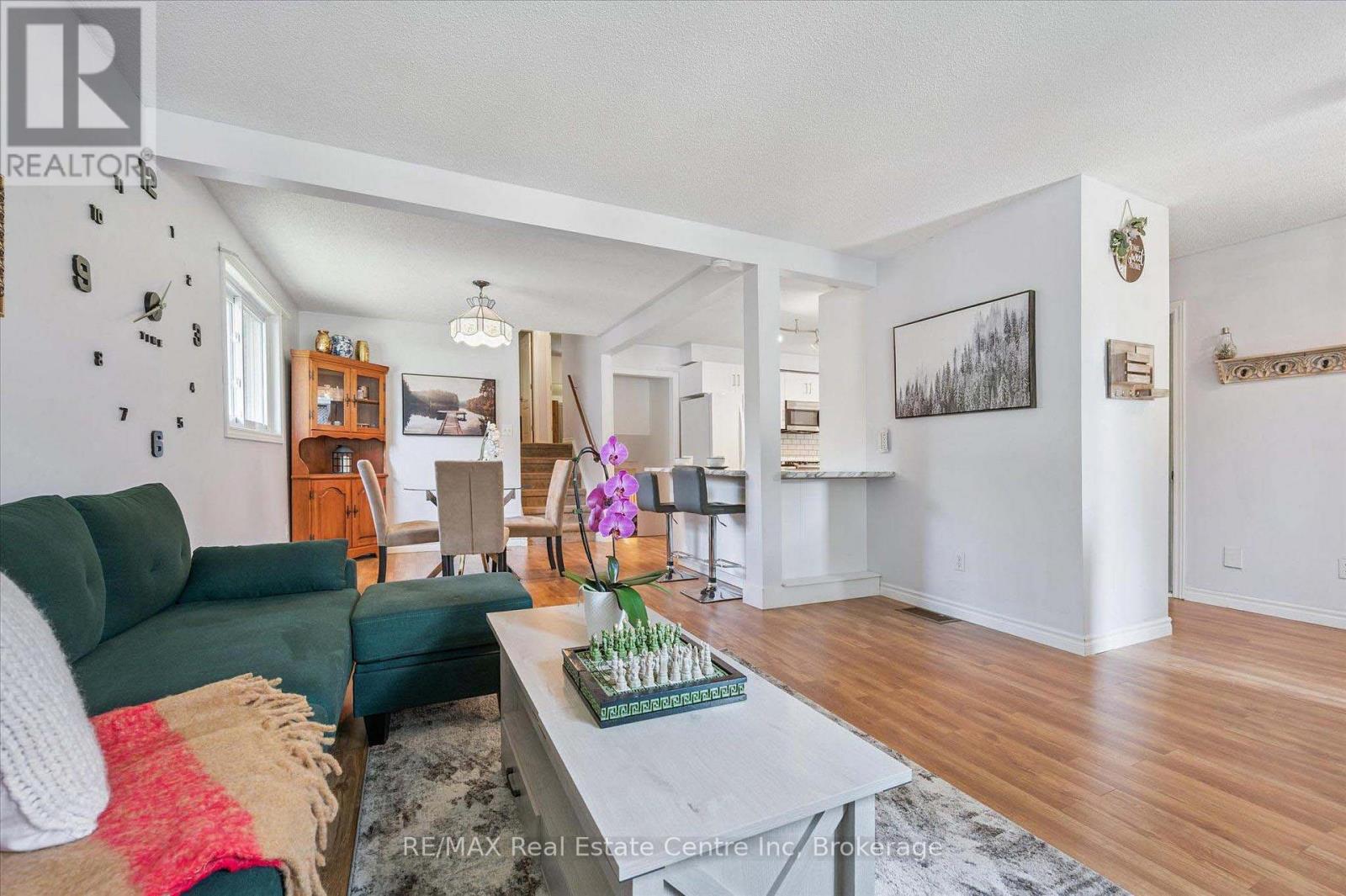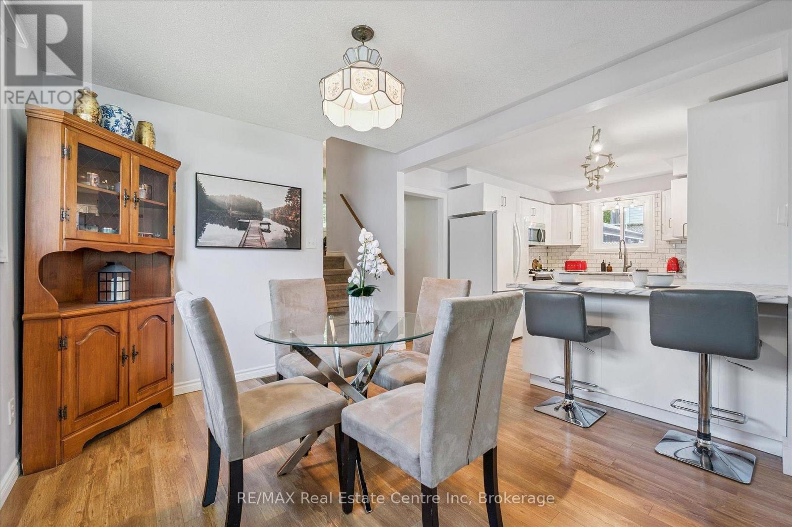 Charming & move-in-ready 3-bdrm backsplit W/fully finished bsmt on massive pool-sized lot in quiet family-friendly neighbourhood! Surrounded by amenities & steps from schools, shops & green space, this home delivers comfort, space & convenience. Step inside to bright & spacious living/dining area where large front-facing windows flood the space W/natural light. Beautiful hardwood floors add warmth throughout & open dining area provides the perfect setting for family dinners & hosting guests. Renovated in 2025 the kitchen blends style & function W/white cabinetry, updated counters, subway tile backsplash, dbl sink under large window & mostly S/S appliances incl. gas stove, new dishwasher & microwave. Its practical layout makes both daily living & entertaining a breeze. Up a few steps you'll find 3 large bdrms each W/ample closet space, generous windows & neutral tones to suit any style. Updated 4pc bath W/sleek glass door tub/shower (2025), oversized vanity & modern tile flooring. Finished bsmt W/huge rec room, vinyl flooring (2022) & gas fireplace. Whether you need a home theatre, games room, gym or play area-there's more than enough room for it all. 2pc bath completes this level. Step outside to expansive concrete patio overlooking massive treelined yard that's both private & fully fenced. Whether you're BBQing, gardening or watching kids & pets play freely-this backyard offers endless potential. Large shed in back for storage needs. Recent updates: new 30' x 15' concrete patio (2023), soffits & eavestroughs (2020) & roof (2017) providing peace of mind for yrs to come. Set on quiet street W/minimal traffic this home is located around the corner from shopping centre W/groceries, pharmacy & dining. Short stroll to Hespeler Public School, mins from Hespeler Village known for charming restaurants & boutiques. Moments from 401 for easy commuting. This home offers perfect mix of space, privacy & convenience W/all essentials nearby & a community vibe that's hard to beat! (id:51158)