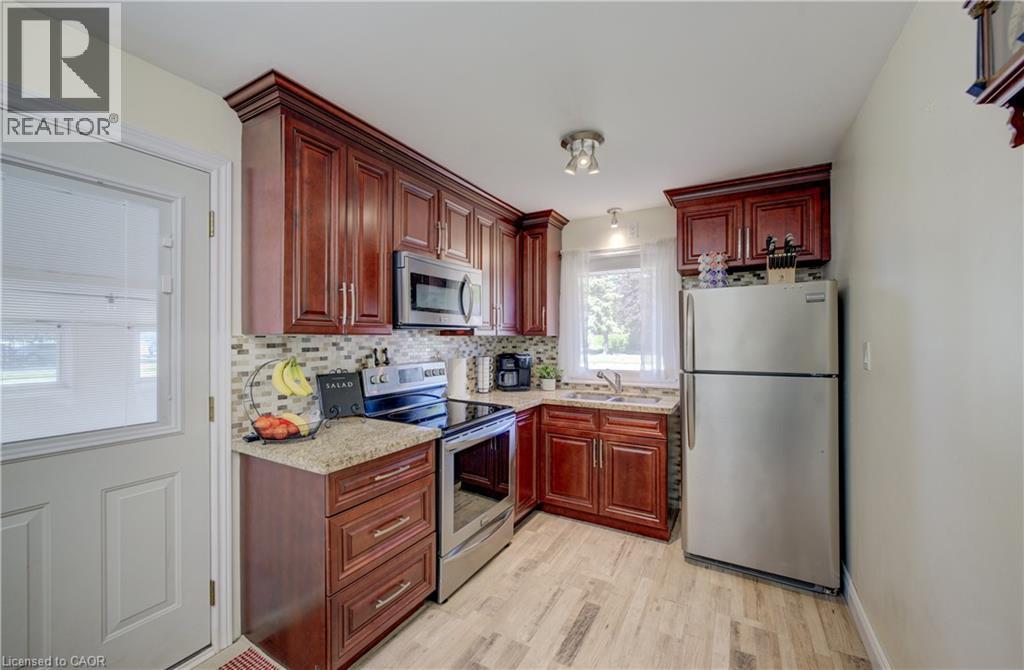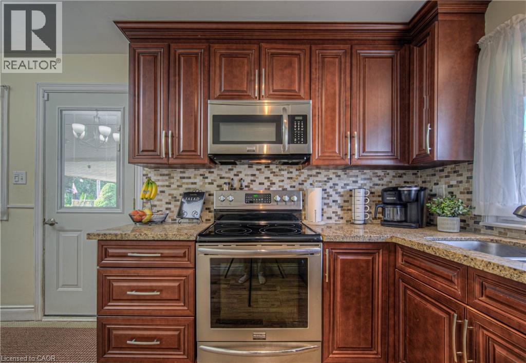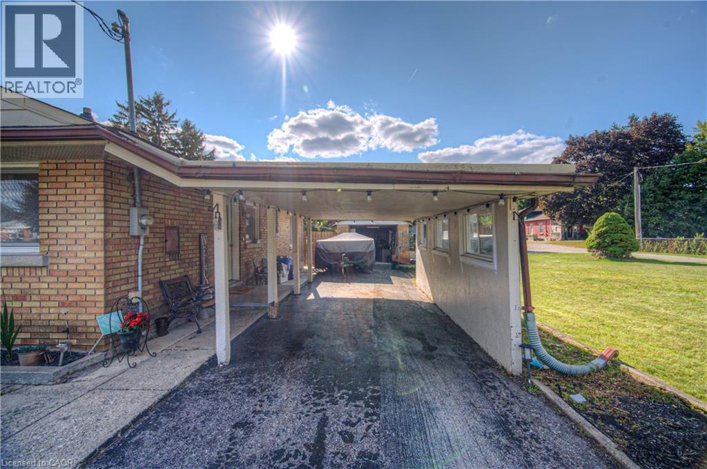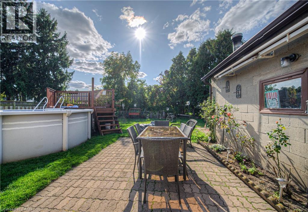 1584 Concession Rd., Cambridge – This well-maintained bungalow offers a blend of comfort, modern updates, and functional living spaces inside and out. The main floor features hardwood flooring throughout the living areas and 3 spacious bedrooms, while the kitchen is finished with durable luxury vinyl flooring, granite countertops, stainless steel appliances, and a bright dinette area. A 4pc bathroom with a relaxing jetted tub completes the main level. Most windows were updated around 2019, enhancing energy efficiency and natural light. The basement provides additional living space with a large recreation room, a bonus fourth bedroom, and a convenient 3-piece bathroom, making it perfect for extended family or guests. The exterior is equally impressive, offering parking for three vehicles with a carport and a detached single-car garage. The fully fenced backyard is designed for outdoor enjoyment, complete with an above-ground pool, greenhouse, shed, and a spacious patio area ideal for entertaining or relaxing. This property combines practical updates with lifestyle amenities, creating a move-in ready home that’s perfect for families or anyone looking for versatile indoor and outdoor spaces. (id:51158)