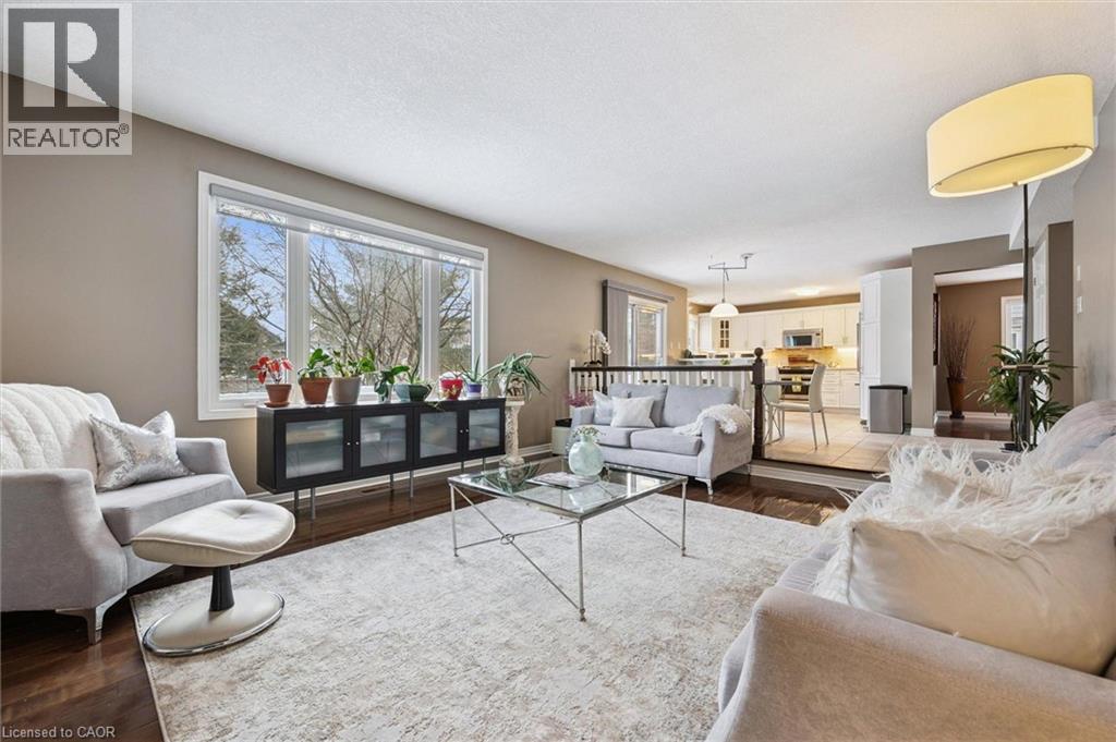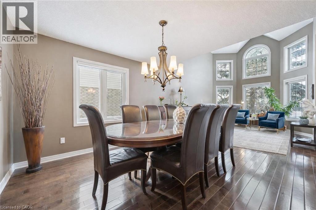 Executive 4-bdrm home set on large treed lot in one of Guelph’s most sought-after family neighbourhoods! Surrounded by mature trees & generous lot this property offers privacy, space & timeless appeal in an established community. Step inside to 2-storey foyer W/skylight that fills entrance W/natural light. Main living area offers soaring ceilings & wall of oversized windows. Rich hardwood floors adds warmth & flows seamlessly into dining room, ideal for hosting dinners, holidays & special occasions. Family room is anchored by elegant fireplace creating warm & inviting space. Oversized windows offer scenic views of backyard. This space opens to eat-in kitchen W/white cabinetry W/glass accents, stone backsplash, Corian counters & top-tier S/S appliances W/gas stove. 2-tier breakfast bar offers seating for casual dining. Dinette area has sliding doors leading to back deck creating effortless indoor-outdoor flow. 2pc bath & laundry complete the level. Upstairs a generous loft overlooks the main living area & offers versatile space for office, playroom, secondary living area or teen retreat. Primary bdrm W/vaulted ceilings, W/I closet & ensuite W/modern dbl-sink vanity, soaker tub & W/I glass shower. 3 add'l bdrms all W/hardwood & oversized windows share 4pc main bath W/skylight & shower/tub. Finished bsmt W/rec room, 3 large windows, pot lighting, 3pc bath & B/I bar, ideal for entertaining! Bonus room provides flexibility & works well as office, gym or playroom W/potential to add a window & create 5th bdrm! New furnace & AC installed in summer 2025! Relax on huge deck overlooking fully fenced backyard surrounded by mature trees. Perfect setting for entertaining, family gatherings or quiet peaceful evenings. Short walk to Colonial Dr Park & entrance to network of trails. Walking distance to Sir Isaac Brock PS one of Guelph’s top-rated schools & St. Ignatius of Loyola Catholic School. Mins from restaurants, groceries, fitness, LCBO & more.Easy access to 401 for commuters (id:51158)
