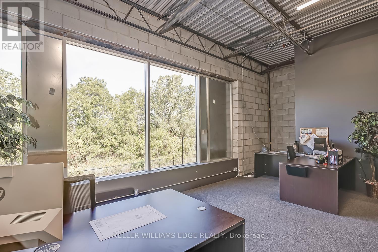 PRIME INDUSTRIAL-COMMERCIAL OPPORTUNITY - This rare and versatile unit offers approximately 2,200 sq. ft. of functional space, including a 1,000 sq. ft. upper mezzanine. Bright and inviting with expansive windows, a glass front entry, and a 10 x 10 drive-in shipping door, this property is designed to meet a wide range of business needs. The main floor features polished concrete floors, a functional kitchenette, spacious washroom, and dedicated storage. The open-concept mezzanine provides flexible options for additional storage, offices, meetings or collaborative work and even includes a wet bar. Additional highlights include 3-phase 60amp/600v electrical service, sprinkler system, and ample on-site parking for staff and visitors. With excellent visibility from King Road and convenient access to Highways 403, 407, QEW, and GO Transit, the location is as strategic as it is practical. Seller is willing to close the adjoining wall or leave it open should you wish to expand by leasing the neighbouring unit. (id:51158)