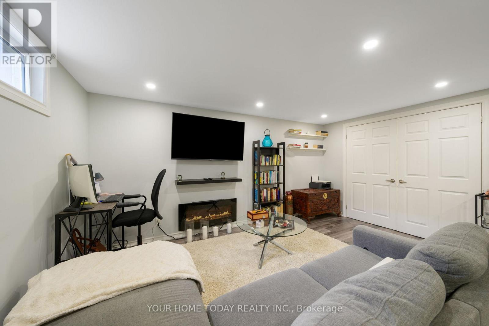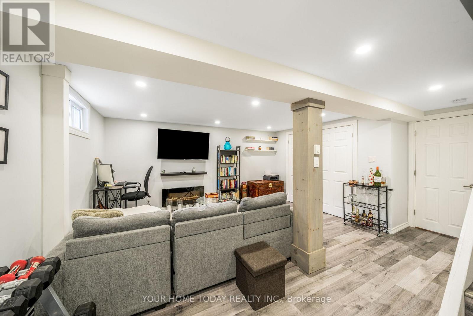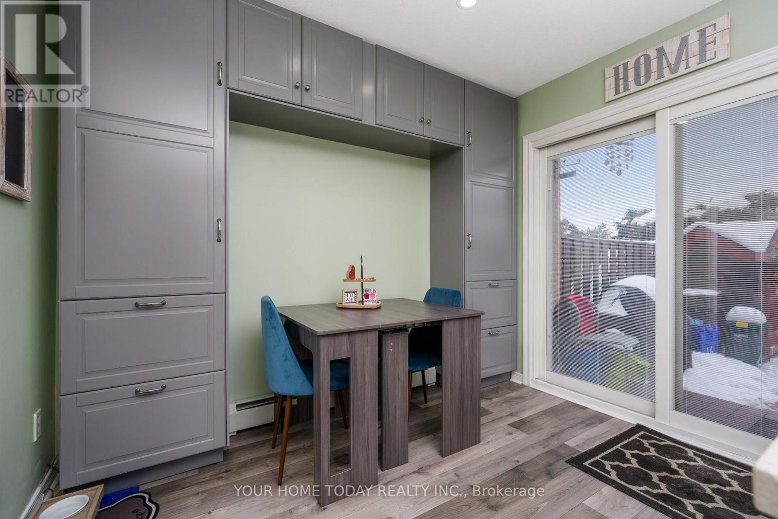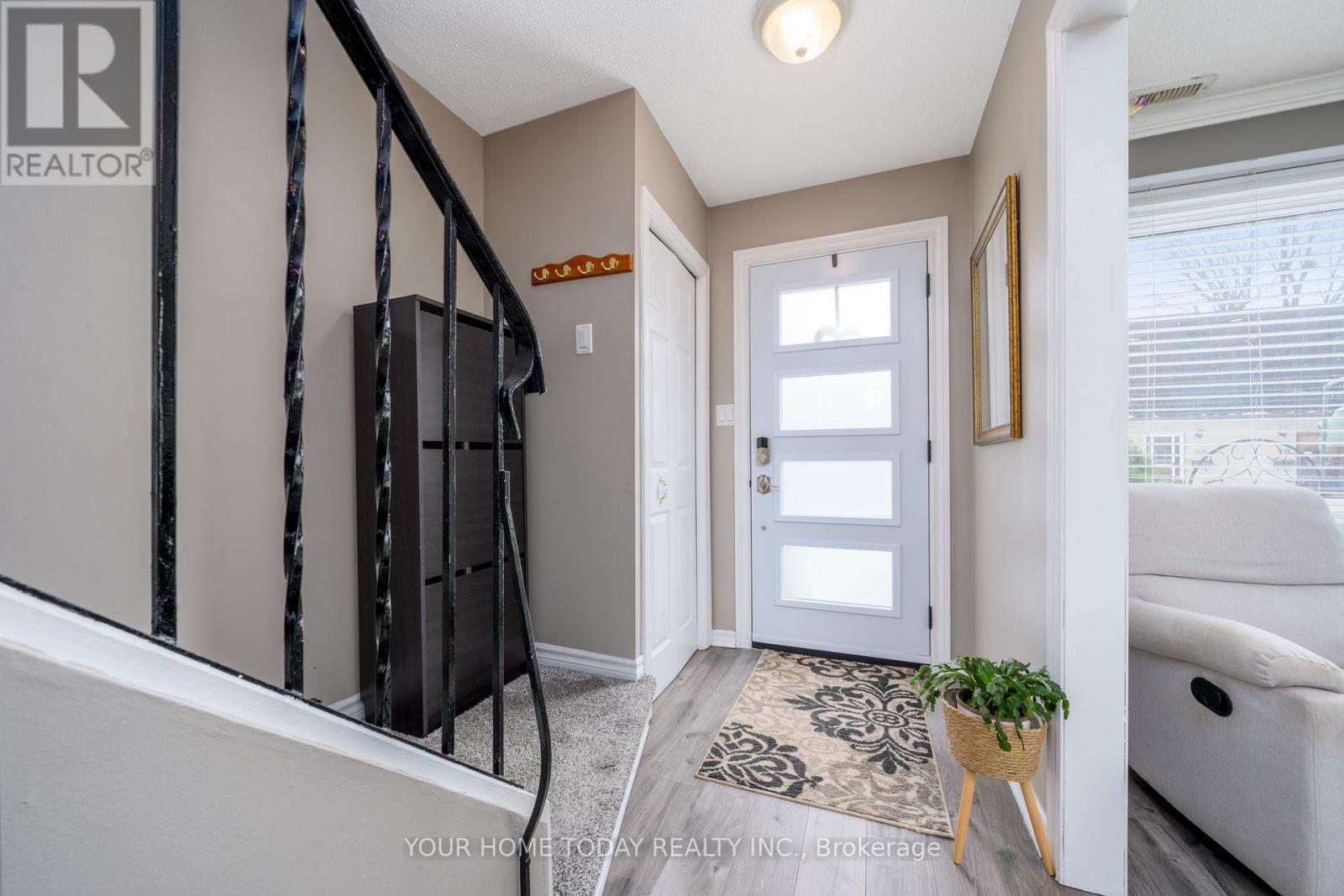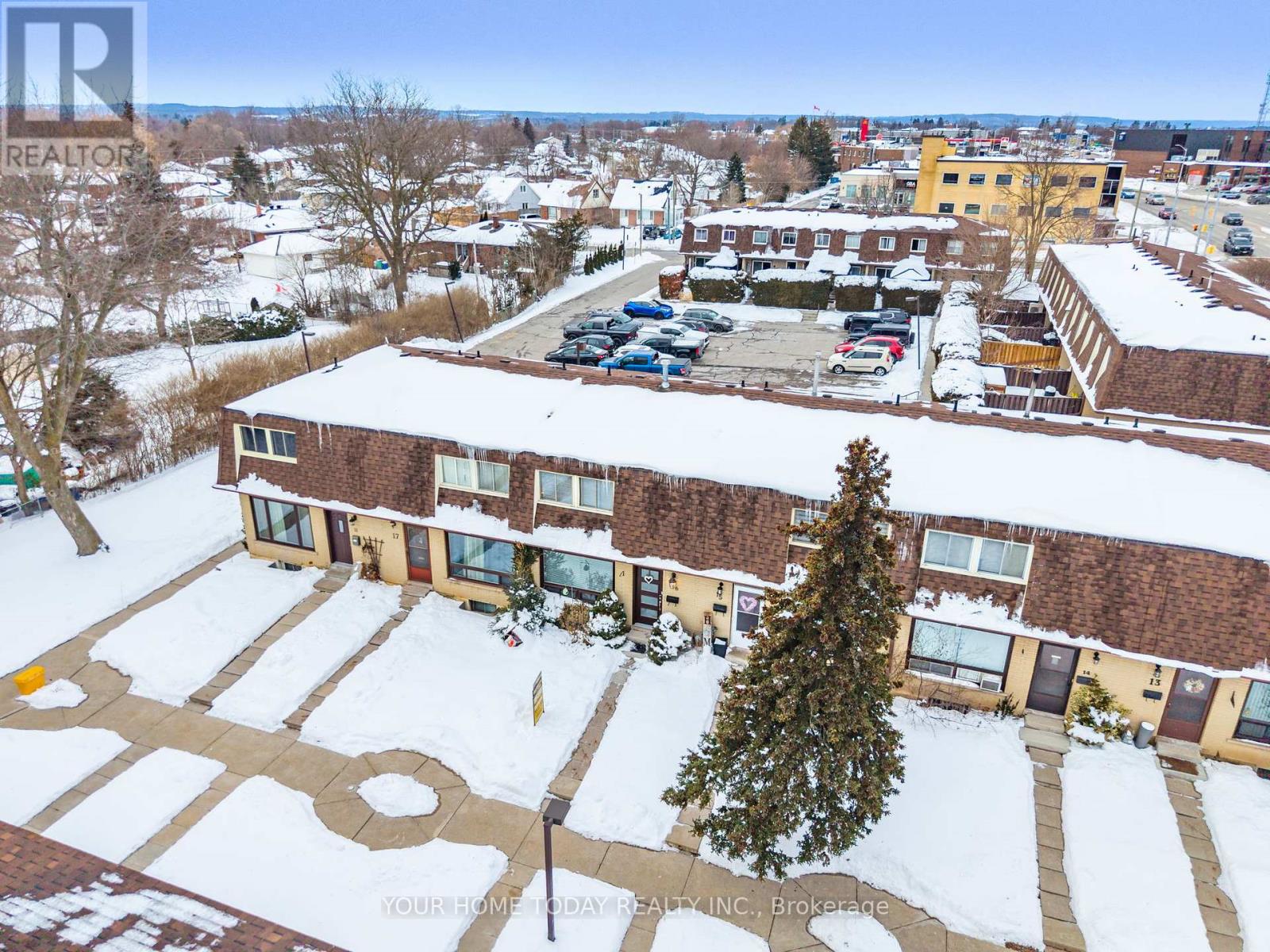 $415 MonthlyAffordable living awaits in this beautifully updated three-bedroom, two-bathroom townhouse that's been finished to perfection and truly move-in ready. The main level showcases stylish laminate flooring and tasteful finishes throughout. The modern kitchen features sleek cabinetry, quartz countertops, glass tile backsplash and an island with seating and storage, plus a walkout to a private, fenced yard with gazebo - perfect for relaxing or entertaining. The sun-filled living room offers a warm and welcoming atmosphere with a corner gas fireplace accented by an attractive wood mantel, an eye-catching built-in corner cabinet, crown molding, and pot lighting. Open to the kitchen, this space creates a seamless setting for family life and entertaining. Upstairs, you'll find three generous bedrooms, including a primary bedroom with his-and-hers closets and semi-ensuite access to a four-piece bathroom. A finished basement adds valuable living space with a spacious rec room featuring an electric fireplace, pot lighting and a built-in bar/serving area, along with a four-piece bathroom and laundry/utility/storage area. Ideally located just steps to the mall and close to schools, parks, restaurants, arena, GO Transit and more, with easy access to main roads for commuters. (id:51158)
