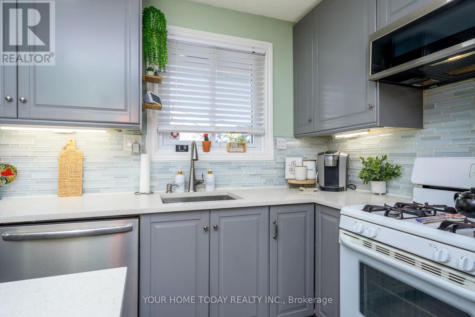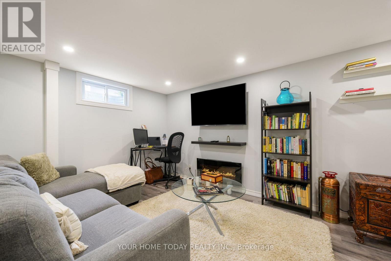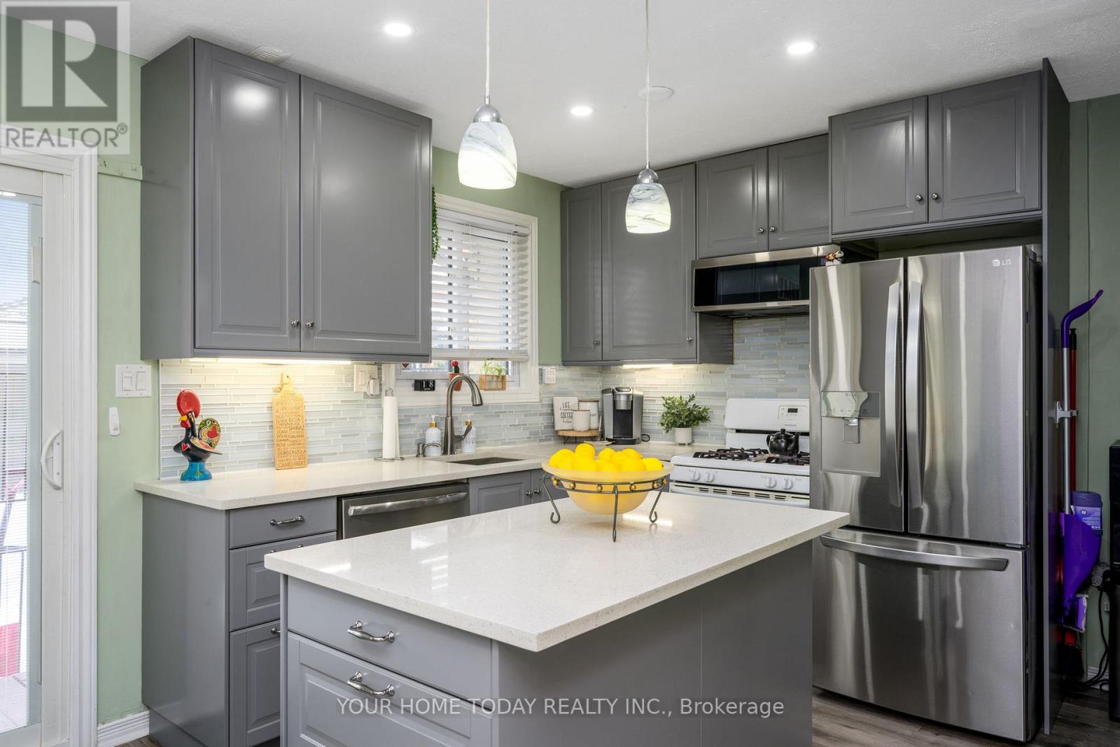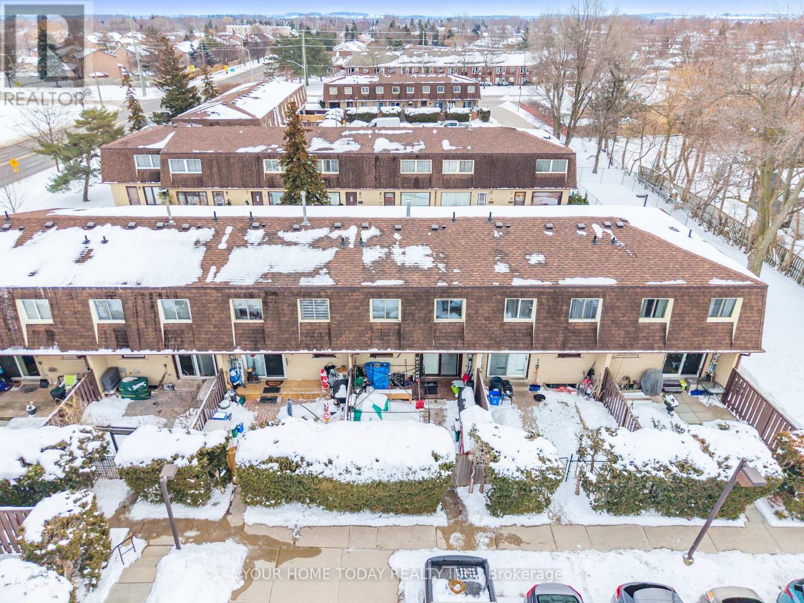$415 MonthlyAffordable living awaits in this beautifully updated three-bedroom, two-bathroom townhouse that's been finished to perfection and truly move-in ready. The main level showcases stylish laminate flooring and tasteful finishes throughout. The modern kitchen features sleek cabinetry, quartz countertops, glass tile backsplash and an island with seating and storage, plus a walkout to a private, fenced yard with gazebo - perfect for relaxing or entertaining. The sun-filled living room offers a warm and welcoming atmosphere with a corner gas fireplace accented by an attractive wood mantel, an eye-catching built-in corner cabinet, crown molding, and pot lighting. Open to the kitchen, this space creates a seamless setting for family life and entertaining. Upstairs, you'll find three generous bedrooms, including a primary bedroom with his-and-hers closets and semi-ensuite access to a four-piece bathroom. A finished basement adds valuable living space with a spacious rec room featuring an electric fireplace, pot lighting and a built-in bar/serving area, along with a four-piece bathroom and laundry/utility/storage area. Ideally located just steps to the mall and close to schools, parks, restaurants, arena, GO Transit and more, with easy access to main roads for commuters. (id:51158)