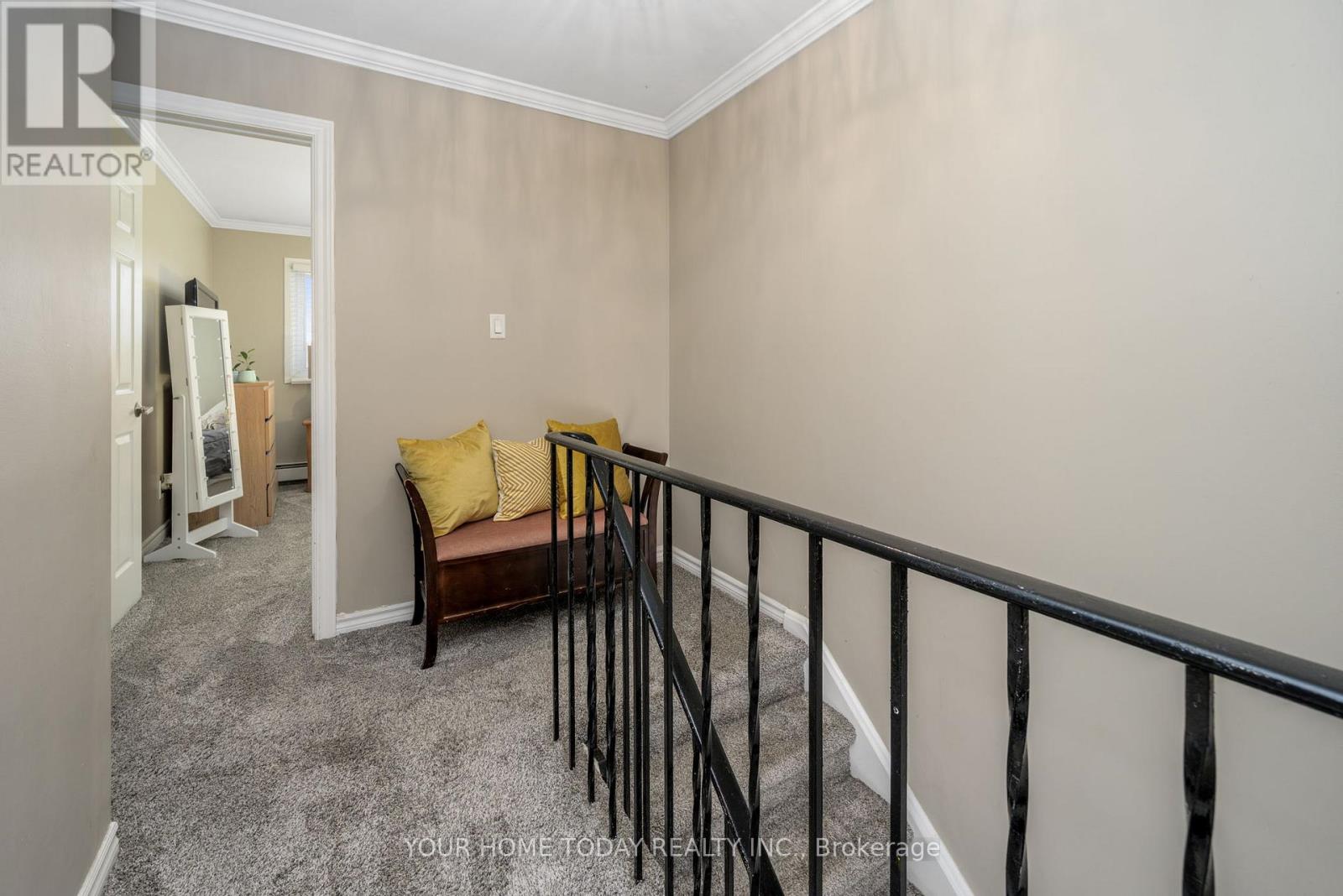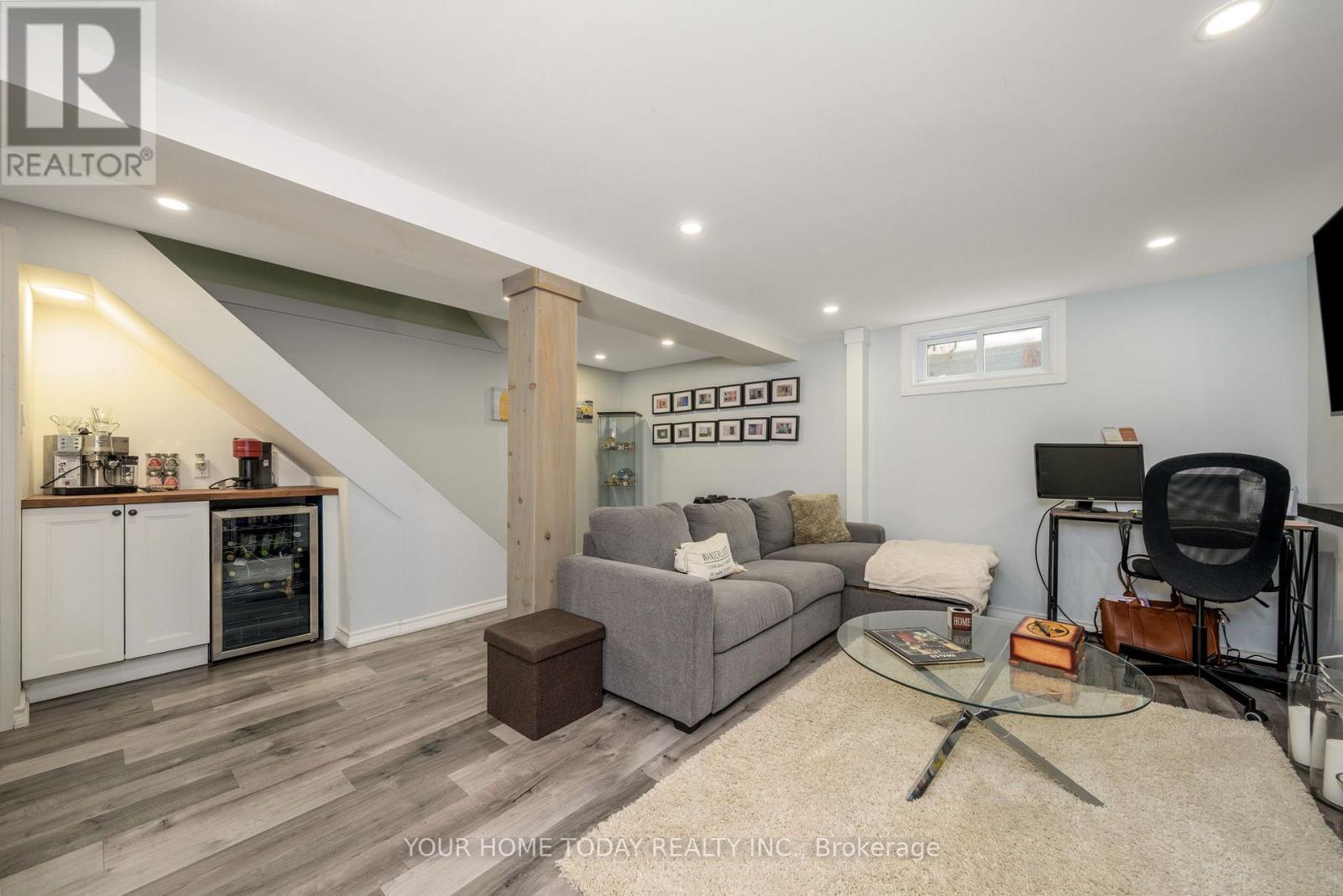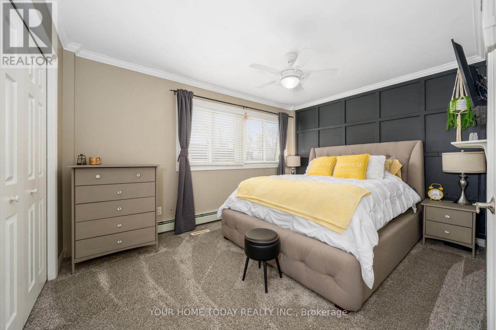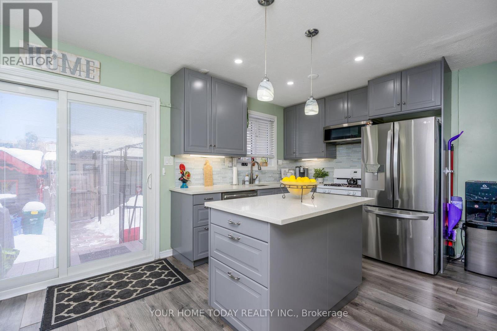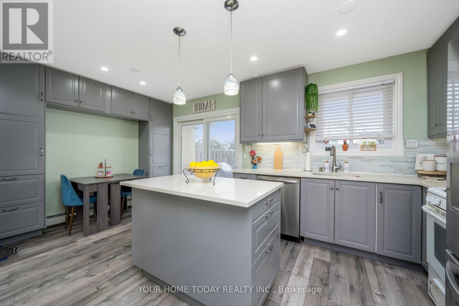$415 MonthlyAffordable living awaits in this beautifully updated three-bedroom, two-bathroom townhouse that's been finished to perfection and truly move-in ready. The main level showcases stylish laminate flooring and tasteful finishes throughout. The modern kitchen features sleek cabinetry, quartz countertops, glass tile backsplash and an island with seating and storage, plus a walkout to a private, fenced yard with gazebo - perfect for relaxing or entertaining. The sun-filled living room offers a warm and welcoming atmosphere with a corner gas fireplace accented by an attractive wood mantel, an eye-catching built-in corner cabinet, crown molding, and pot lighting. Open to the kitchen, this space creates a seamless setting for family life and entertaining. Upstairs, you'll find three generous bedrooms, including a primary bedroom with his-and-hers closets and semi-ensuite access to a four-piece bathroom. A finished basement adds valuable living space with a spacious rec room featuring an electric fireplace, pot lighting and a built-in bar/serving area, along with a four-piece bathroom and laundry/utility/storage area. Ideally located just steps to the mall and close to schools, parks, restaurants, arena, GO Transit and more, with easy access to main roads for commuters. (id:51158)