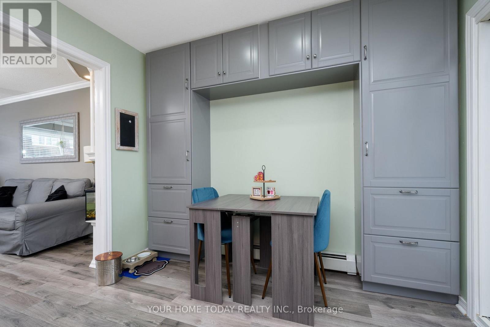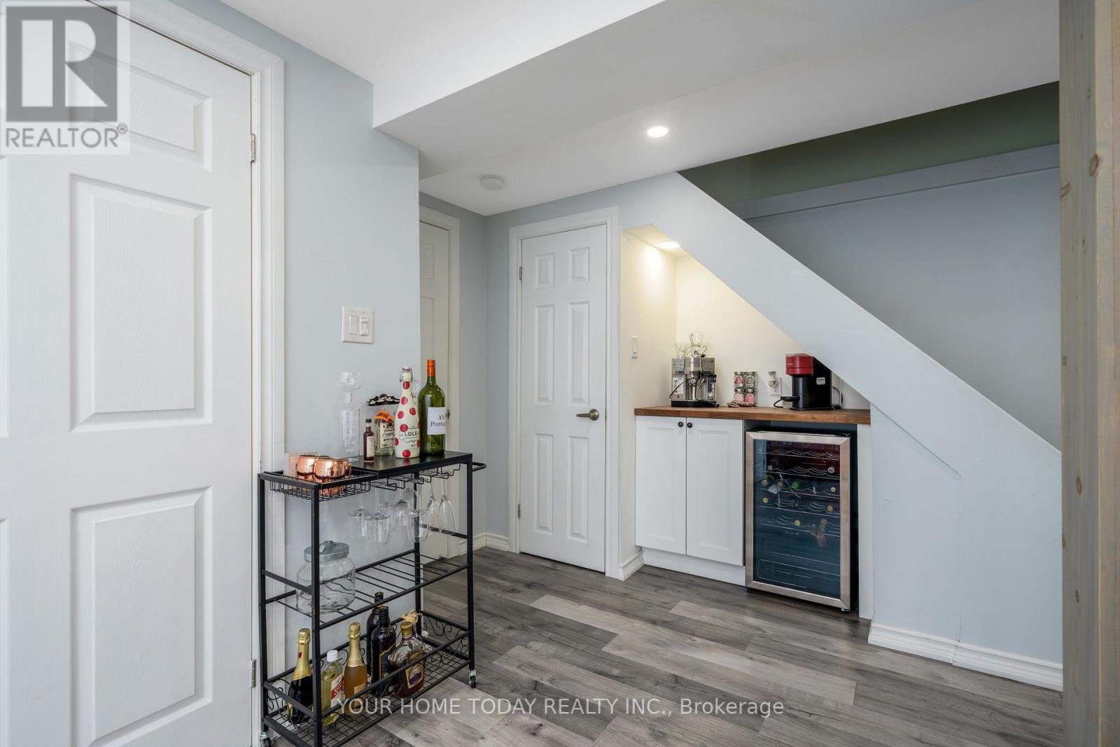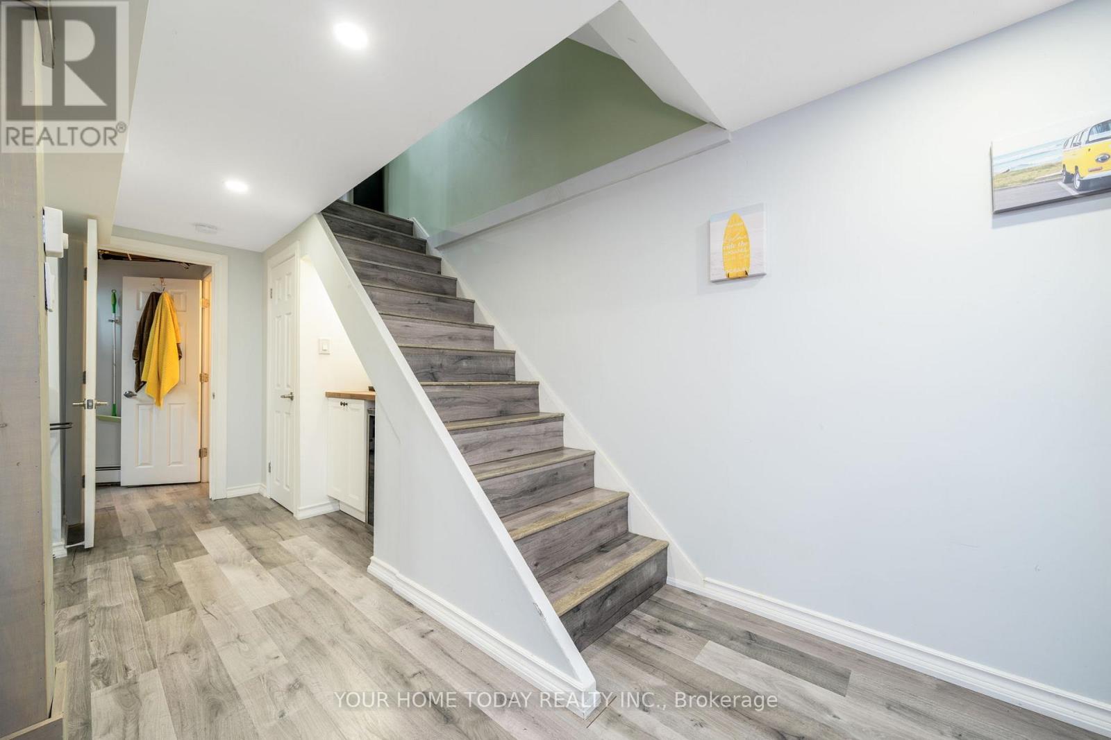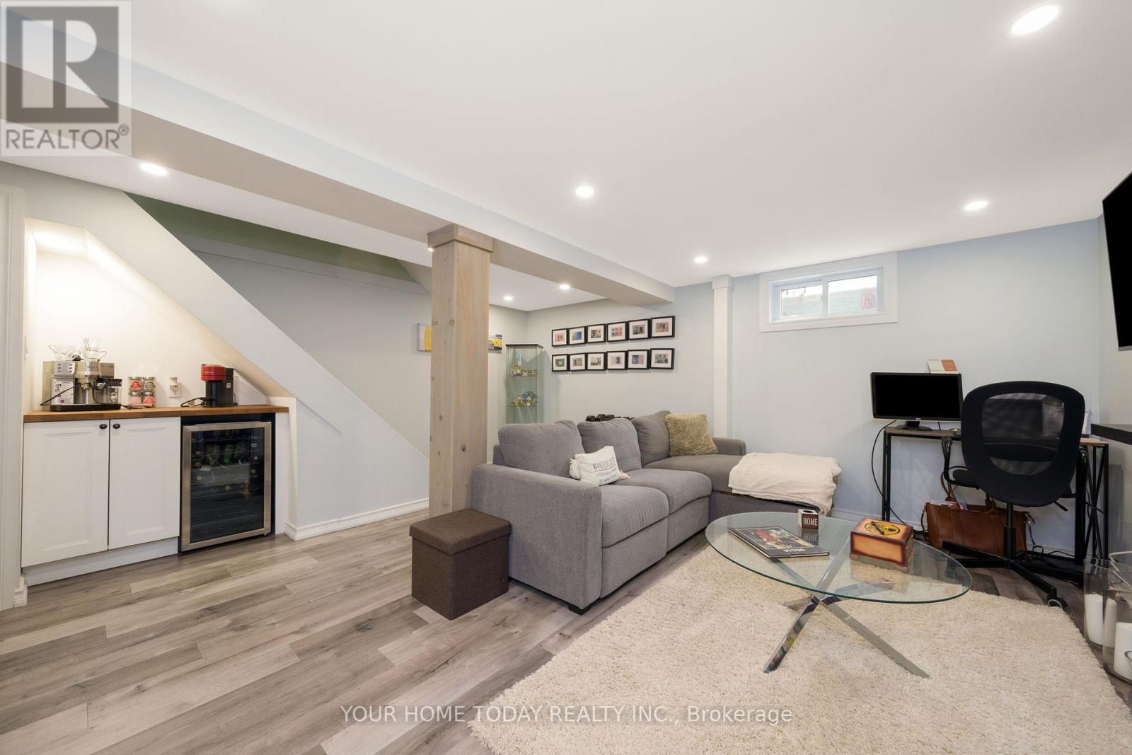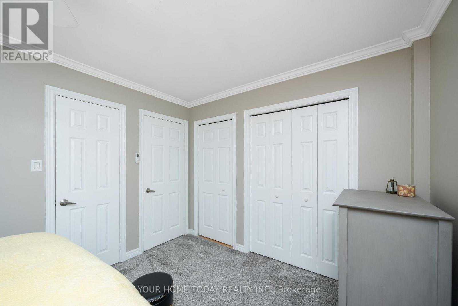 $415 MonthlyAffordable living awaits in this beautifully updated three-bedroom, two-bathroom townhouse that's been finished to perfection and truly move-in ready. The main level showcases stylish laminate flooring and tasteful finishes throughout. The modern kitchen features sleek cabinetry, quartz countertops, glass tile backsplash and an island with seating and storage, plus a walkout to a private, fenced yard with gazebo - perfect for relaxing or entertaining. The sun-filled living room offers a warm and welcoming atmosphere with a corner gas fireplace accented by an attractive wood mantel, an eye-catching built-in corner cabinet, crown molding, and pot lighting. Open to the kitchen, this space creates a seamless setting for family life and entertaining. Upstairs, you'll find three generous bedrooms, including a primary bedroom with his-and-hers closets and semi-ensuite access to a four-piece bathroom. A finished basement adds valuable living space with a spacious rec room featuring an electric fireplace, pot lighting and a built-in bar/serving area, along with a four-piece bathroom and laundry/utility/storage area. Ideally located just steps to the mall and close to schools, parks, restaurants, arena, GO Transit and more, with easy access to main roads for commuters. (id:51158)