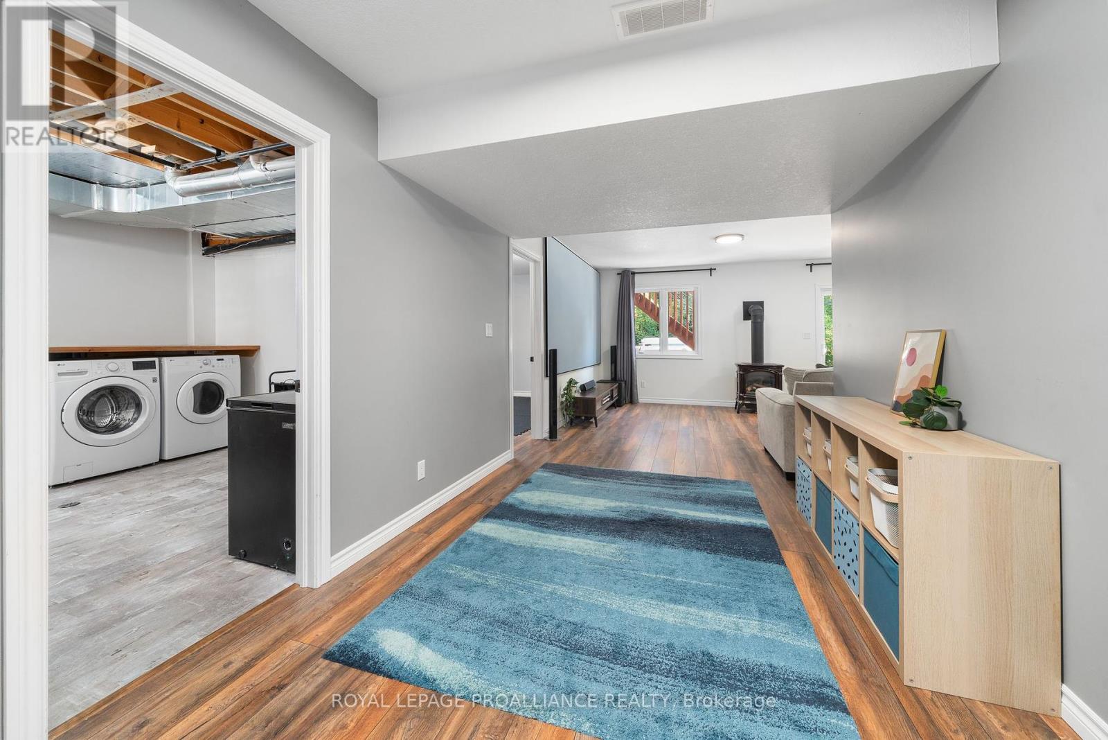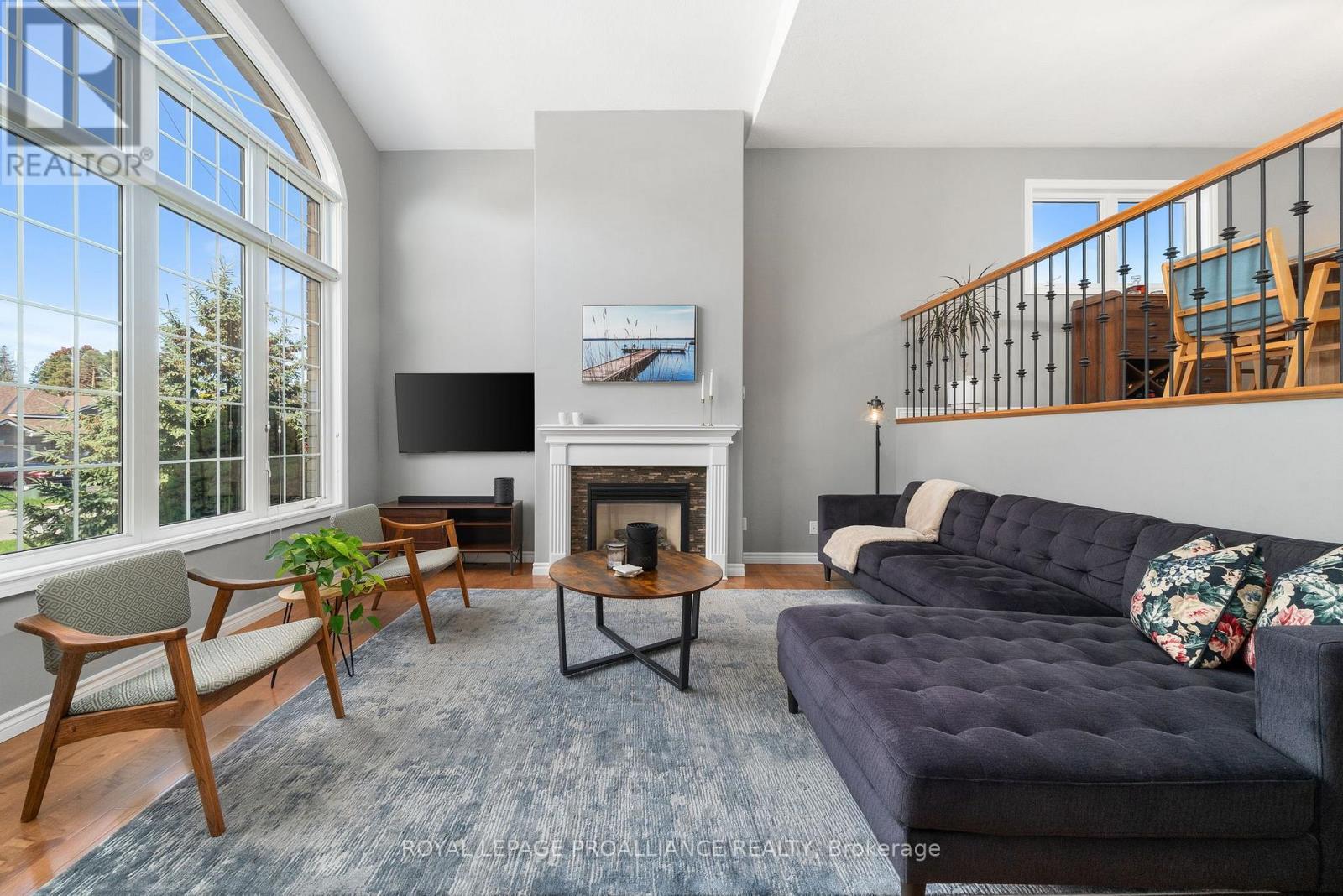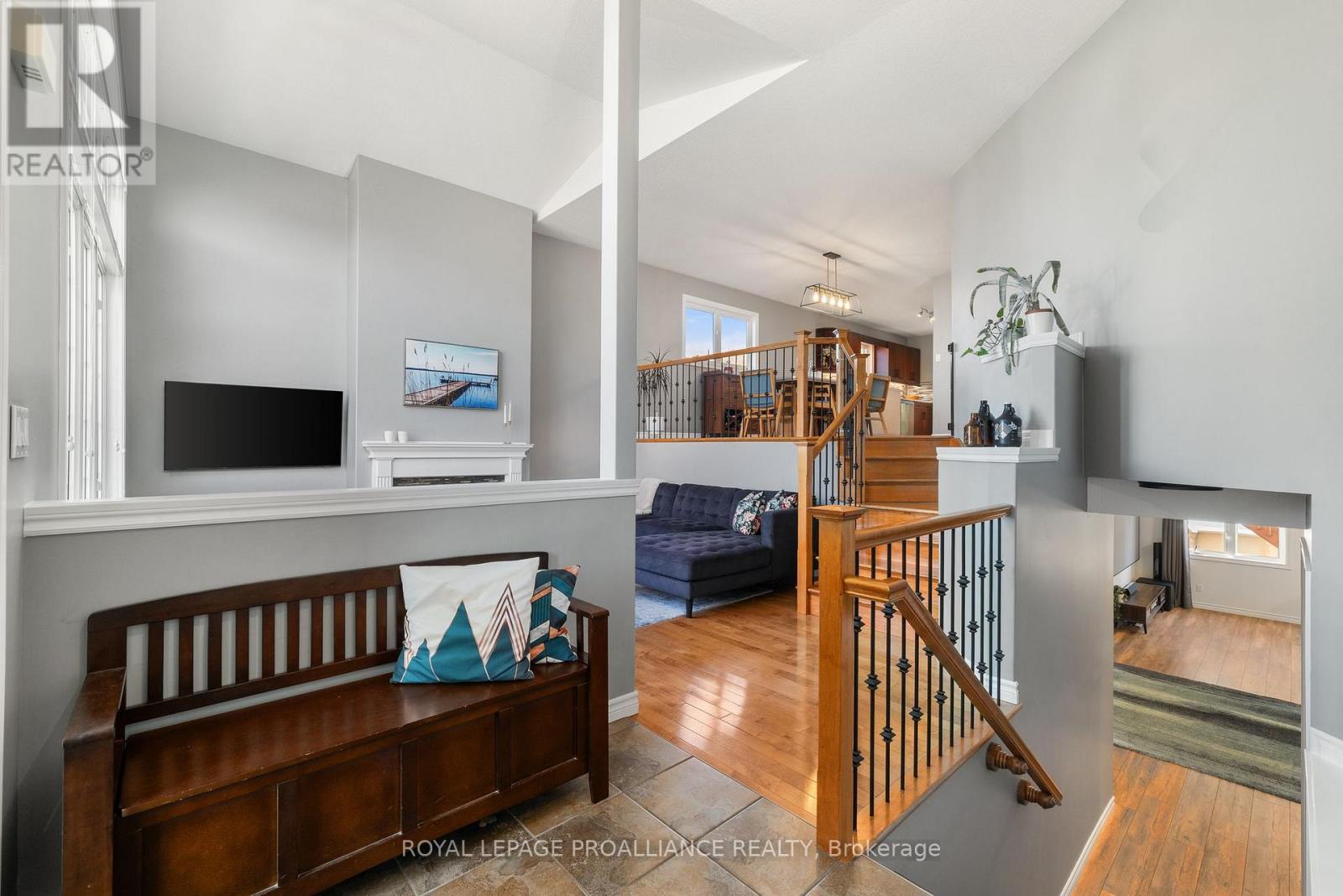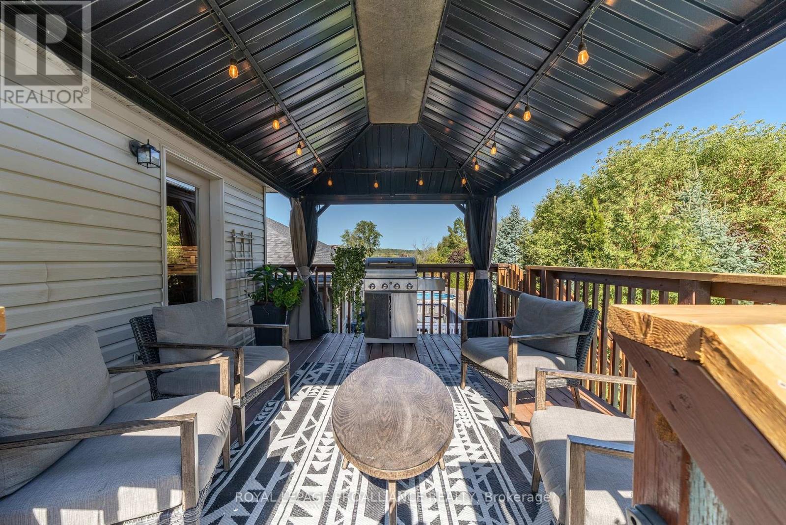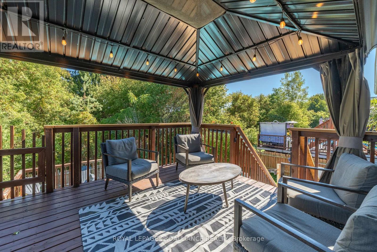 This not-so-ordinary 5-bedroom, 3-bath walk-out raised bungalow offers great space for entertaining indoors and out with plenty of space for families of all sizes. The vaulted main level living room with soaring picture window and cozy gas fireplace creates a unique and impressive, bright and open feeling throughout the main living areas. Generous dining area, great for family meals and dinner parties, is open to the stylish kitchen with waterfall quartz countertop, peninsula seating, tiled backsplash, and stainless steel appliances. Step through the garden door to the upper deck with metal pergola the perfect spot to start your day or enjoy warm summer nights. 3 bed 2 bath main floor layout makes daily routines flow easily. The spacious primary suite includes a 3-piece ensuite, while 2 additional bedrooms are served by a spacious 4pc family bath with plenty of storage. The walk-out lower level offers fun and flexibility with 2 additional bedrooms, a 4-piece bath, and a large rec room with gas fireplace and direct access to the hot tub. Great space for large families or hosting overnight guests, or create dedicated home gym and office space. A generous laundry room with access to plenty of storage completes the space. Outdoors, enjoy a fully fenced, low-maintenance backyard with an above-ground pool, hot tub area, handy under-deck storage, and mature trees backing onto the scenic Lower Trent Trail. The double attached garage provides excellent parking and storage, with space versatile enough for a golf simulator. Located in the welcoming community of Frankford, you'll enjoy riverfront fun, outdoor recreation, and a quick drive to Batawa's ski hill and trails. Updates include: Roof (2022), On Demand Hot Water Heater: (2025) and AC (2025). With space to relax, play, and entertain, your family is sure to Feel at Home at 16 Kyle Court. (id:51158)