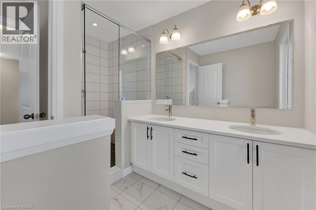 Welcome home! This recently completed freehold townhouse features modern garage door, 9 ft. ceilings on the main floor for an airy ambiance. The kitchen boasts quartz countertops, 36 upper cabinets, and an extended bar top, perfect for culinary enthusiasts and entertaining alike. Relax in the great room adorned with beautiful laminate flooring, while ceramic tiles grace the foyer, washrooms, and laundry areas. Retreat to the spa-like en-suite bathroom featuring a glass shower and double sinks, offering ultimate comfort and style. Additional highlights include a basement rough-in for a three-piece bathroom, air conditioner, high-efficiency furnace, and a heat recovery ventilation system for year-round comfort and efficiency. Don't miss out on this exceptional home. (id:51158)