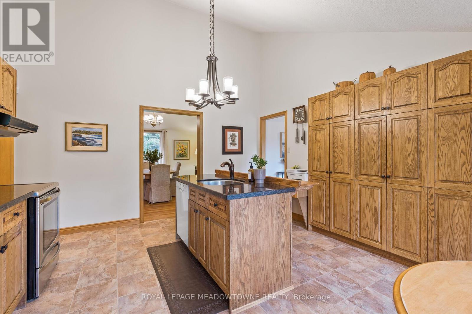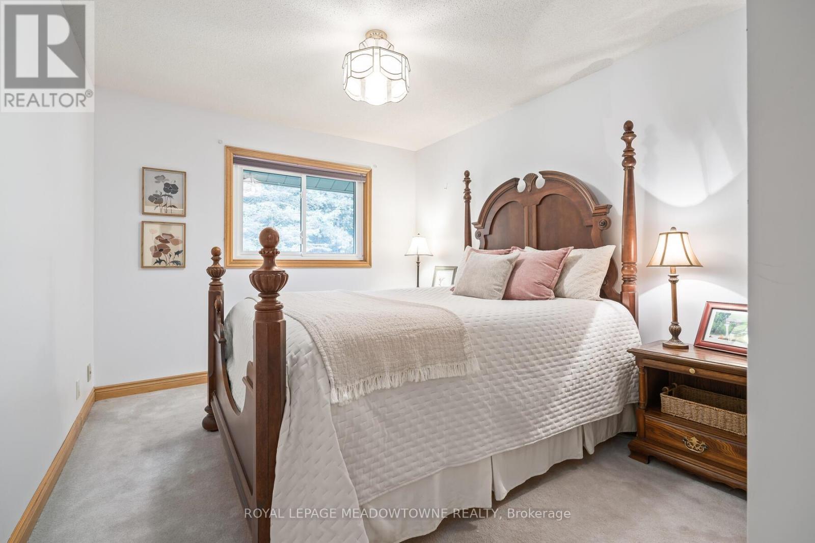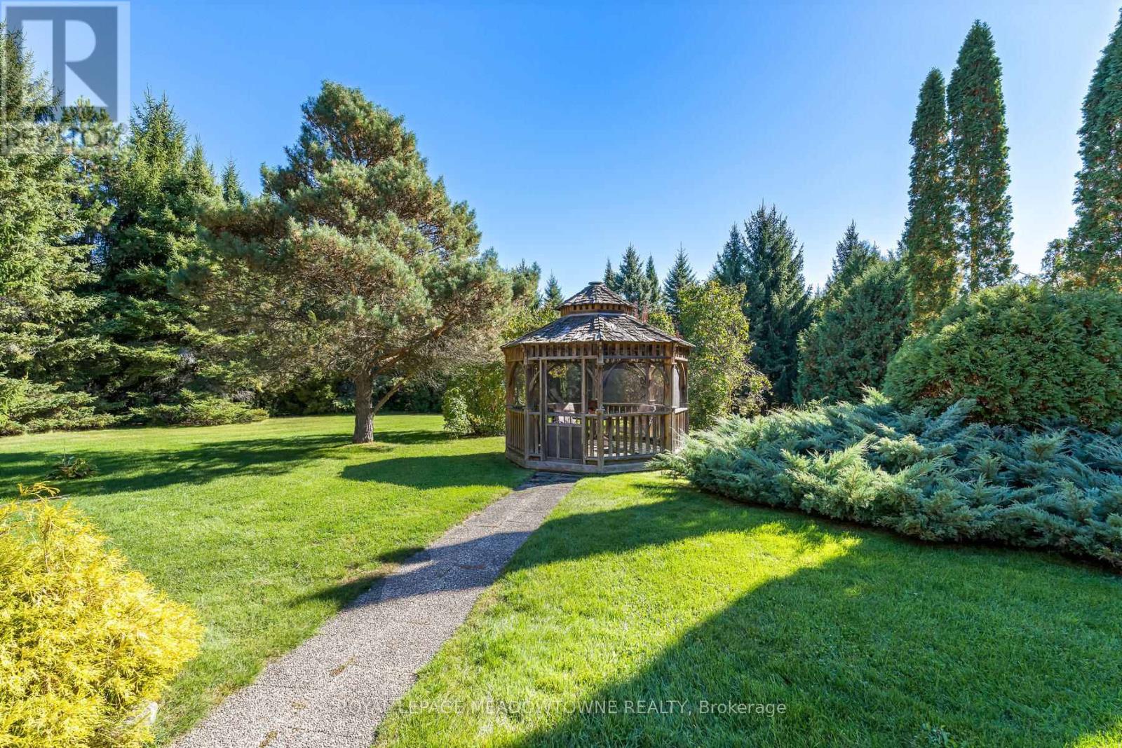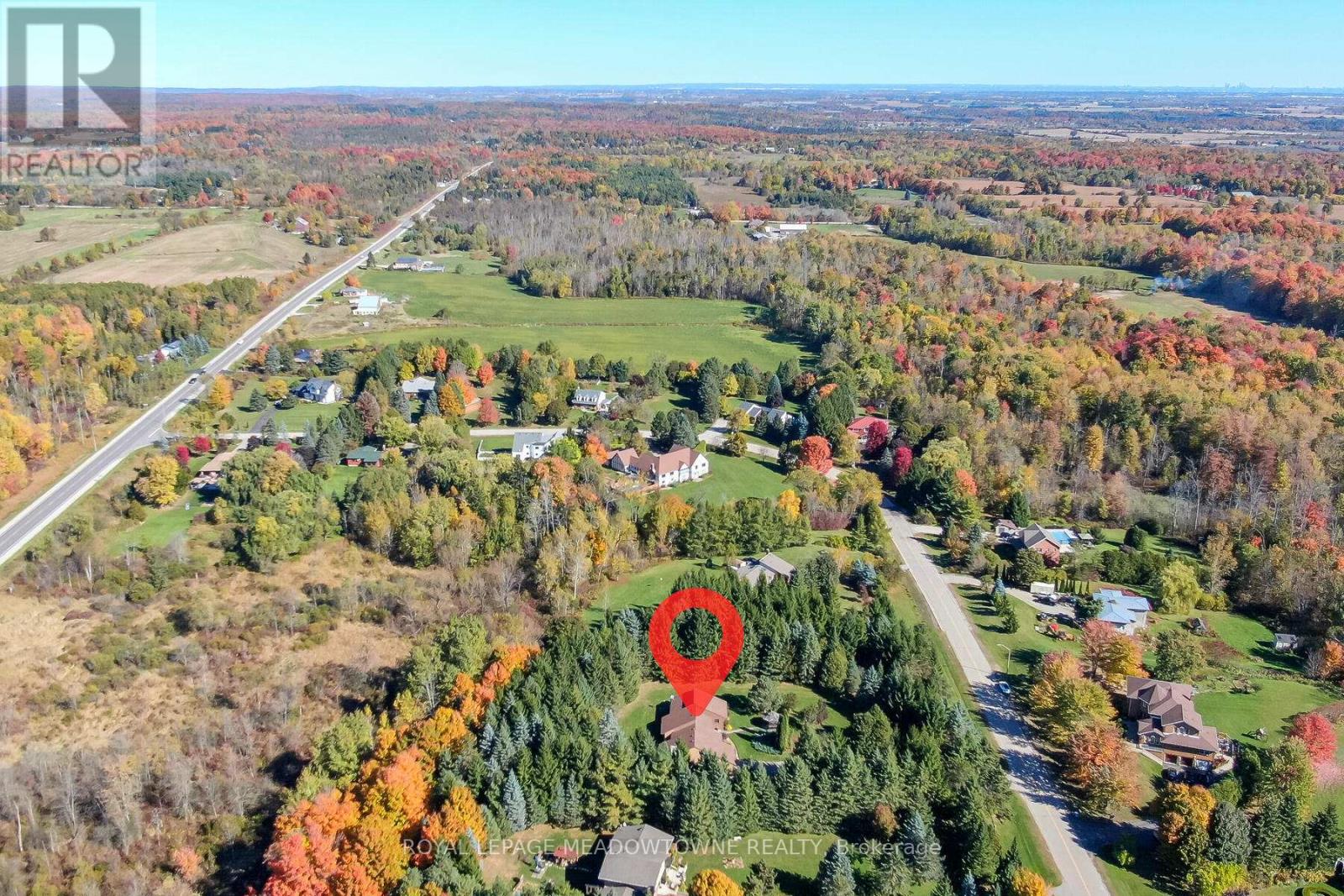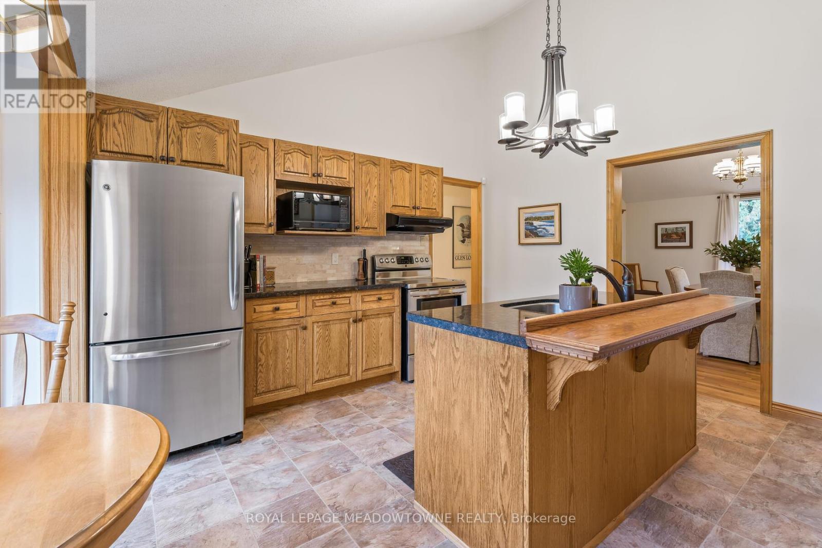 Fabulous bungalow on private 2 acre lot in prime location in Halton Hills. Quiet pocket of custom homes just minutes to Georgetown, Acton, the Limehouse kilns and Bruce trail. Lovingly cared for by original owners. The principal rooms are quite large and all have gorgeous country views. The family room features a wood-burning fireplace and gleaming hardwood floors. Enjoy the sun-filled eat-in kitchen with granite counters and a huge wall-to-wall pantry. The primary suite offers a walkout to the yard plus a 4-pc ensuite and two closets. Main floor laundry with garage and side door entrance. There is a massive lower level that is currently finished as a rec room with loads of room for the large pool table, exercise area and it also features a separate room ideal for a bedroom or storage space. Nature abounds this beautiful property with numerous evergreens and its own little backyard forest with trails. The two-car garage is oversize and there is a super long driveway for all your guests' vehicles and your toys too. Shingles 2018, Furnace rebuilt 2023, many updated windows. Survey available. Enjoy the peace and quiet of the country living just minutes to town. (id:51158)