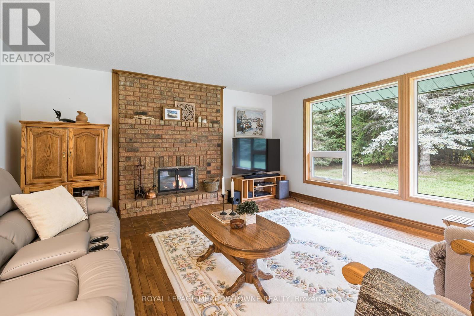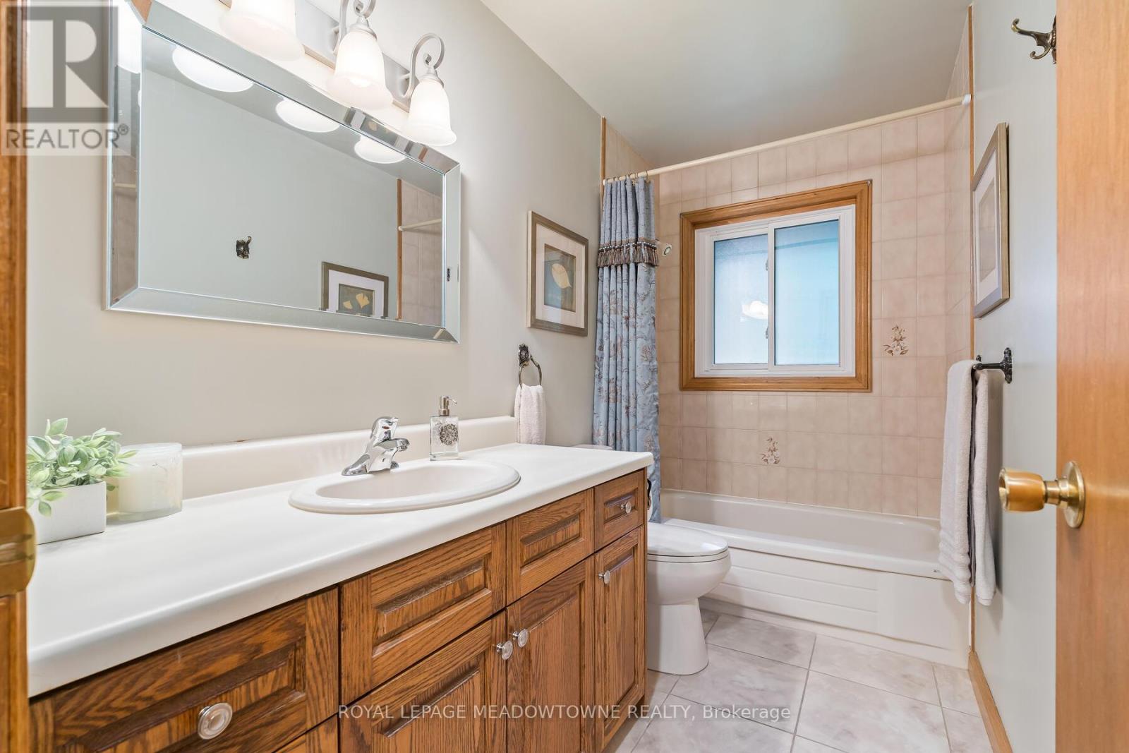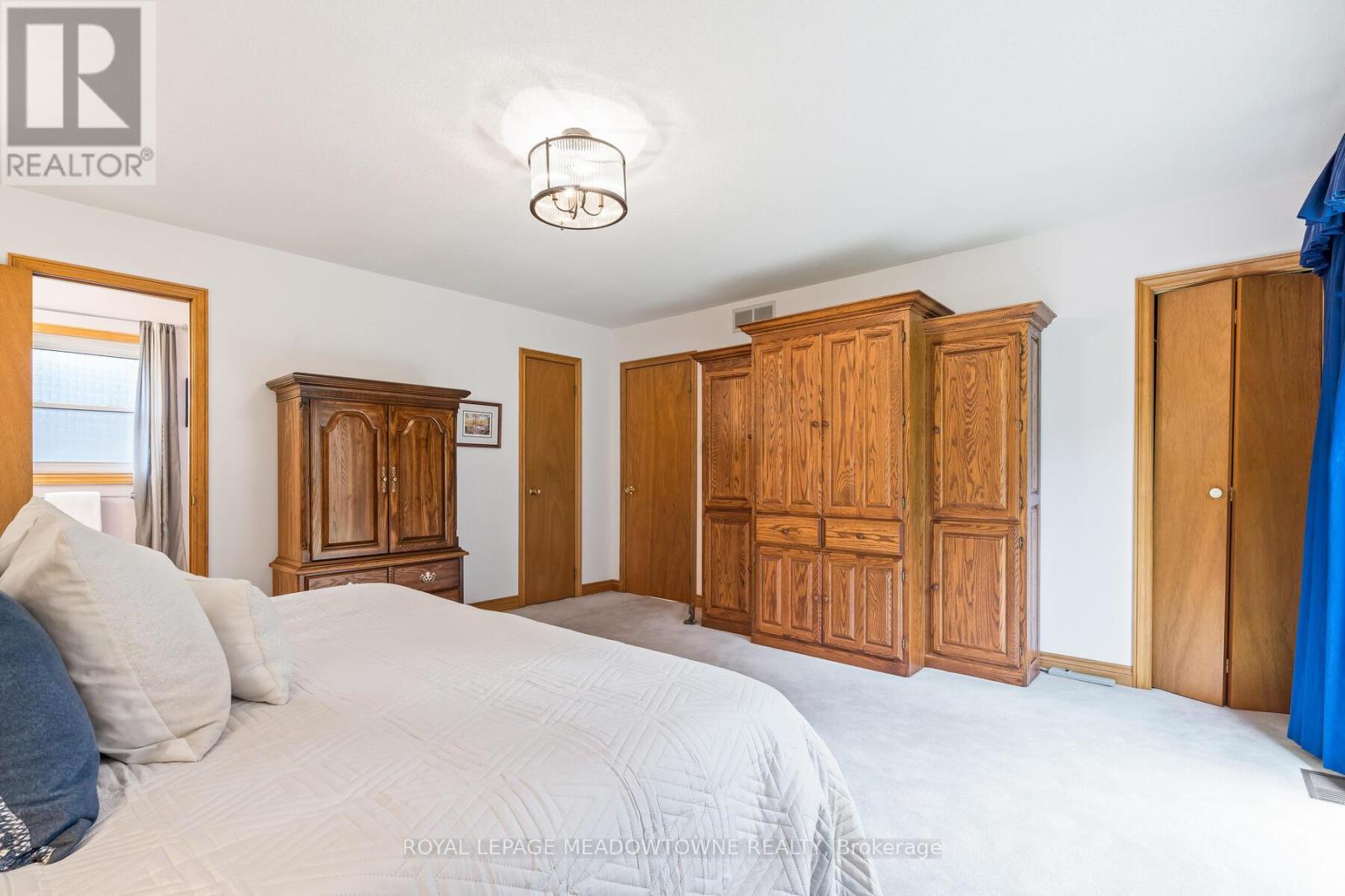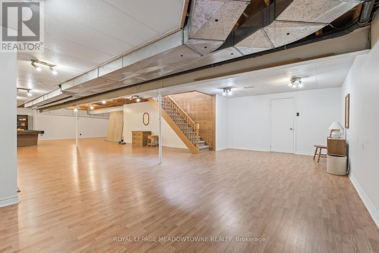 Fabulous bungalow on private 2 acre lot in prime location in Halton Hills. Quiet pocket of custom homes just minutes to Georgetown, Acton, the Limehouse kilns and Bruce trail. Lovingly cared for by original owners. The principal rooms are quite large and all have gorgeous country views. The family room features a wood-burning fireplace and gleaming hardwood floors. Enjoy the sun-filled eat-in kitchen with granite counters and a huge wall-to-wall pantry. The primary suite offers a walkout to the yard plus a 4-pc ensuite and two closets. Main floor laundry with garage and side door entrance. There is a massive lower level that is currently finished as a rec room with loads of room for the large pool table, exercise area and it also features a separate room ideal for a bedroom or storage space. Nature abounds this beautiful property with numerous evergreens and its own little backyard forest with trails. The two-car garage is oversize and there is a super long driveway for all your guests' vehicles and your toys too. Shingles 2018, Furnace rebuilt 2023, many updated windows. Survey available. Enjoy the peace and quiet of the country living just minutes to town. (id:51158)