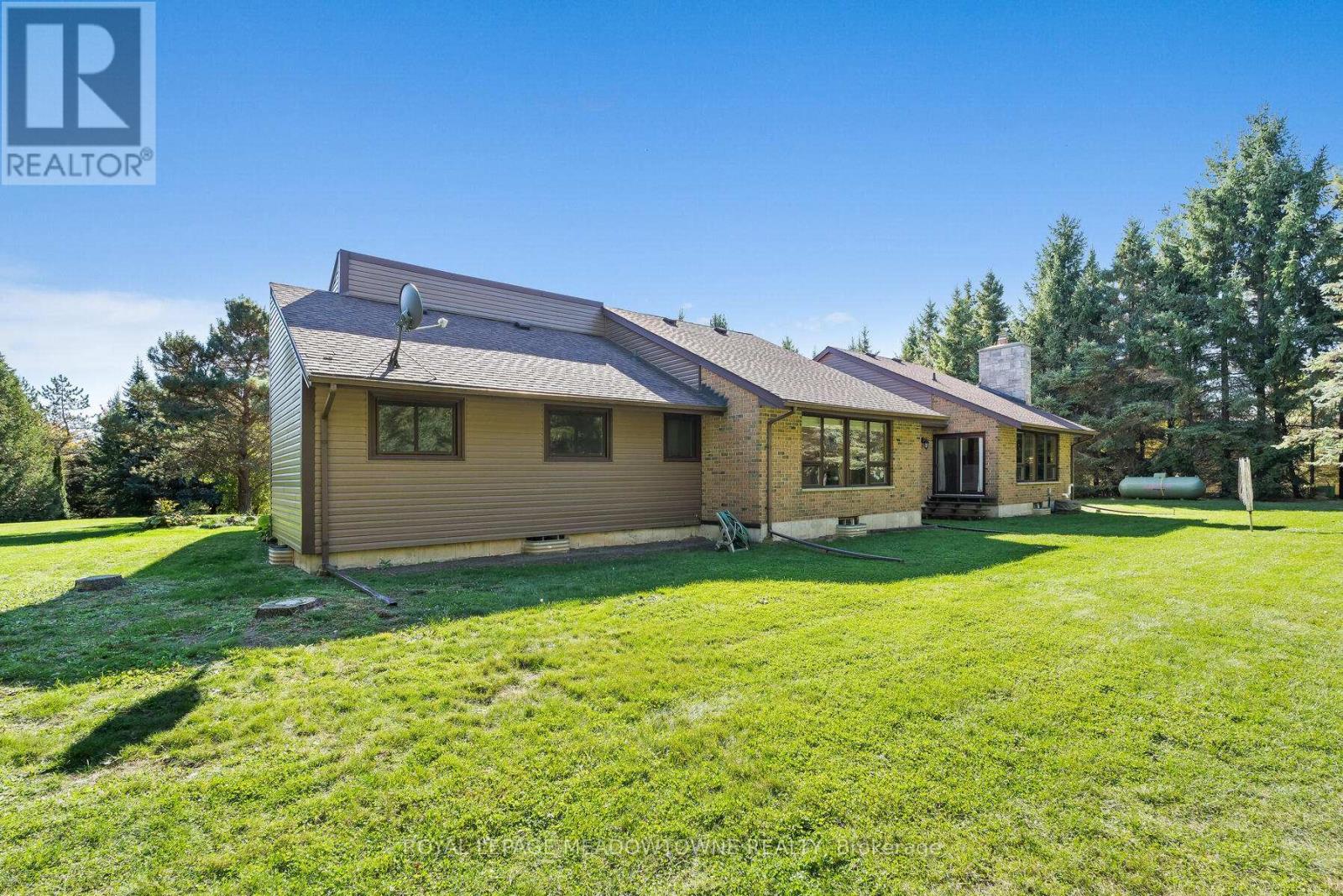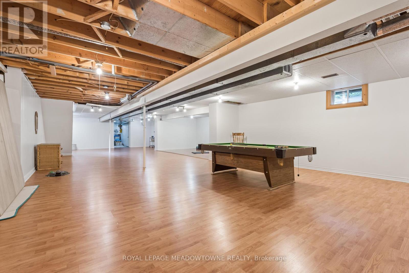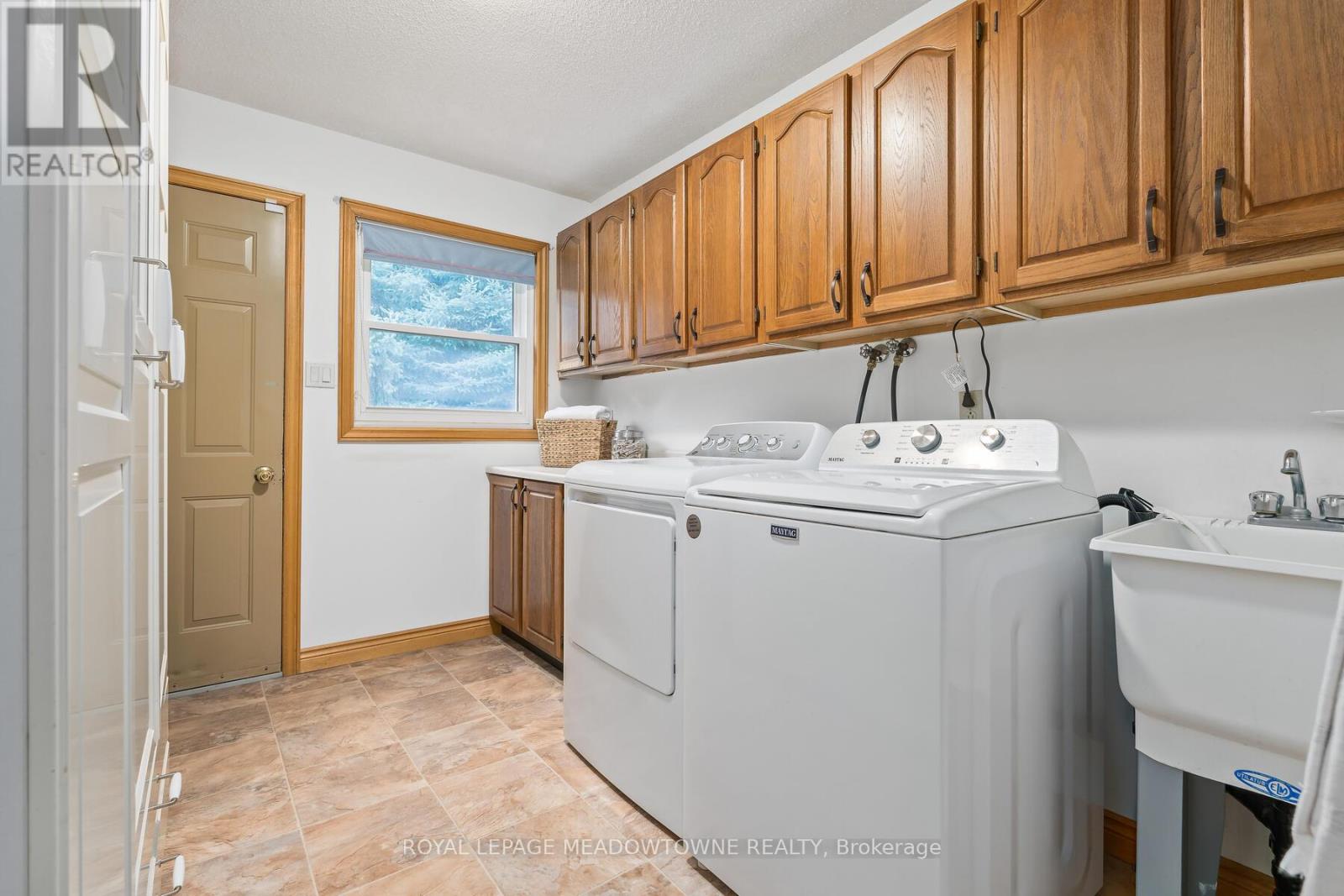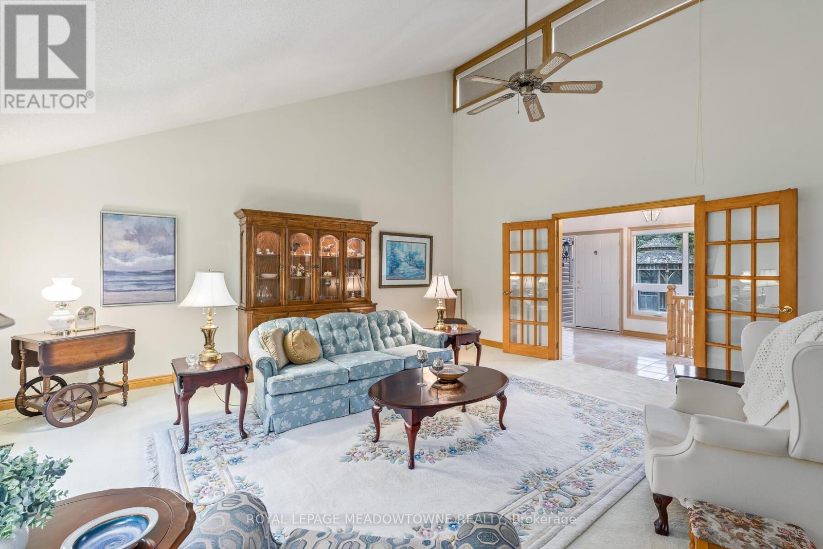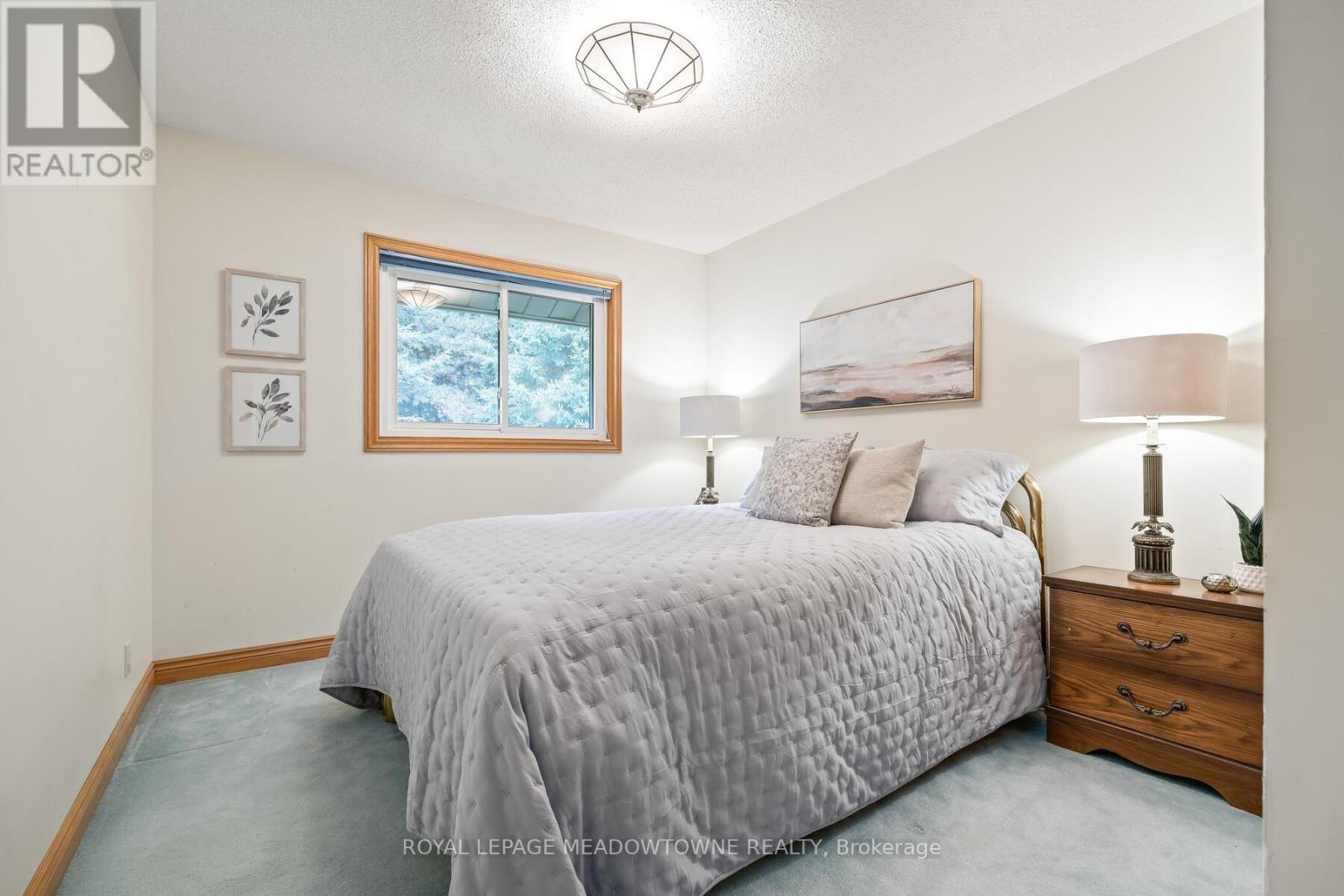 Fabulous bungalow on private 2 acre lot in prime location in Halton Hills. Quiet pocket of custom homes just minutes to Georgetown, Acton, the Limehouse kilns and Bruce trail. Lovingly cared for by original owners. The principal rooms are quite large and all have gorgeous country views. The family room features a wood-burning fireplace and gleaming hardwood floors. Enjoy the sun-filled eat-in kitchen with granite counters and a huge wall-to-wall pantry. The primary suite offers a walkout to the yard plus a 4-pc ensuite and two closets. Main floor laundry with garage and side door entrance. There is a massive lower level that is currently finished as a rec room with loads of room for the large pool table, exercise area and it also features a separate room ideal for a bedroom or storage space. Nature abounds this beautiful property with numerous evergreens and its own little backyard forest with trails. The two-car garage is oversize and there is a super long driveway for all your guests' vehicles and your toys too. Shingles 2018, Furnace rebuilt 2023, many updated windows. Survey available. Enjoy the peace and quiet of the country living just minutes to town. (id:51158)