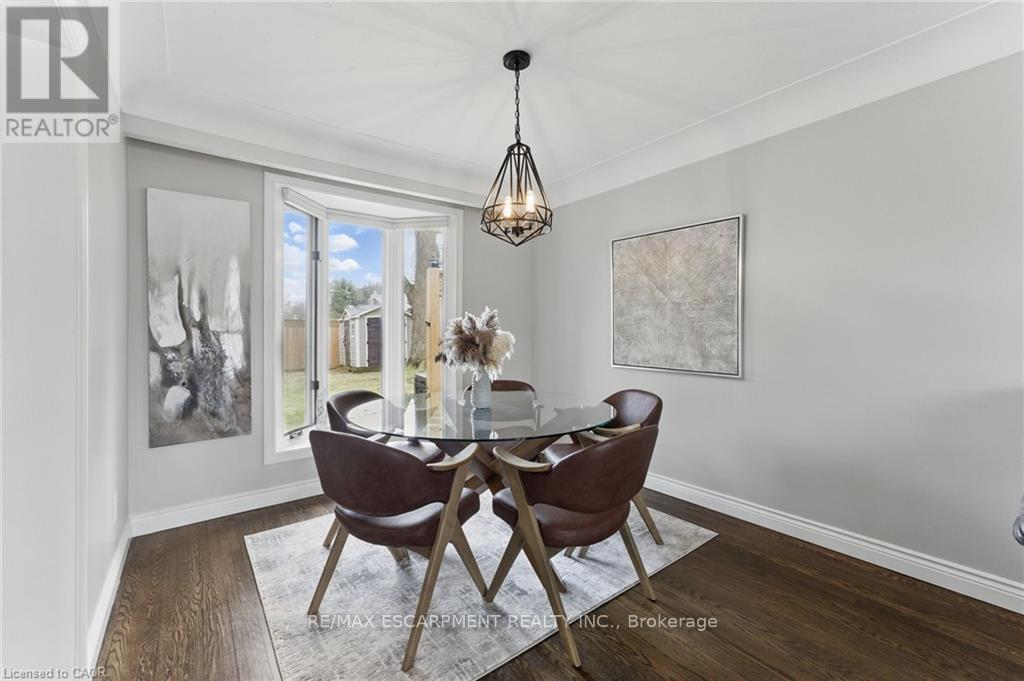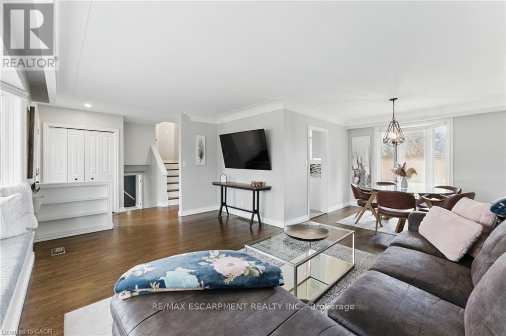 Welcome to 160 Council Crescent, a beautifully updated home in the heart of Ancaster, set on a private 75 x 100 ft lot with mature trees and no rear neighbours. This charming property offers the perfect blend of comfort, style, and location. The bright living room showcases a large bow window that fills the space with natural light, while the open living and dining area features recently refinished hardwood floors for a warm, modern feel. The kitchen has been tastefully updated with brand new quartz countertops and offers a walkout to the spacious, fully fenced backyard - ideal for entertaining, kids, or pets. Upstairs you'll find 3 bedrooms and a recently renovated 4-piece bathroom. The lower level provides versatile additional living space, perfect for a playroom, recreation area, home office, or even a fourth bedroom. Major mechanical updates offer peace of mind, including a new furnace, air conditioner, and owned hot water tank (2024). Located in a highly desirable, family-friendly neighbourhood close to top-rated schools, parks, trails, shopping, and commuter access - this is a fantastic opportunity to own in one of Ancaster's most sought-after communities. (id:51158)