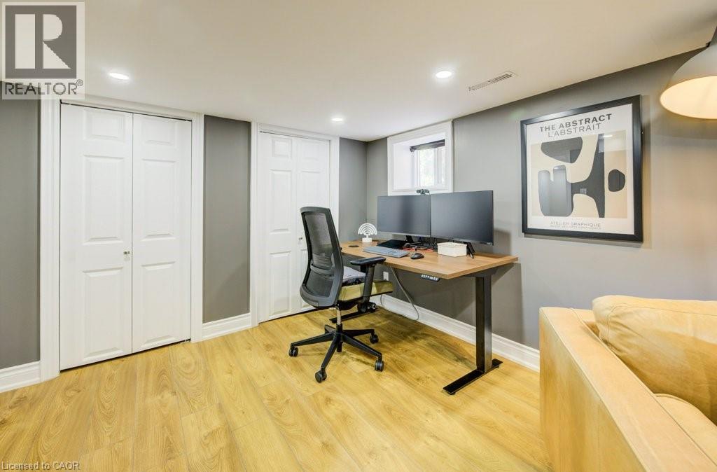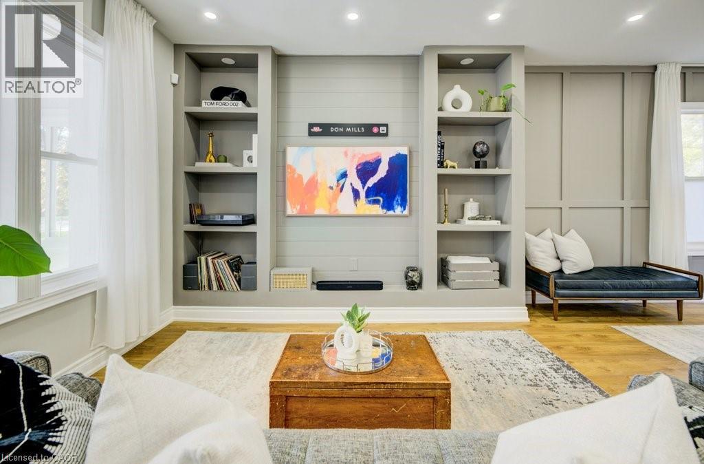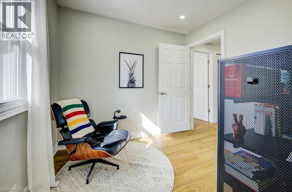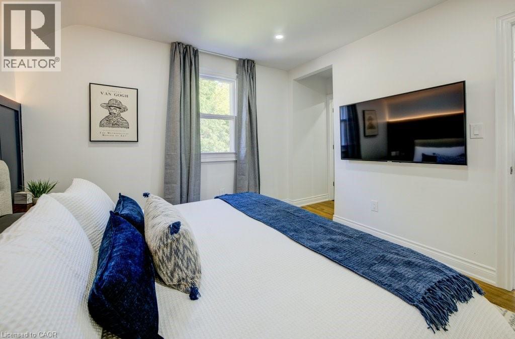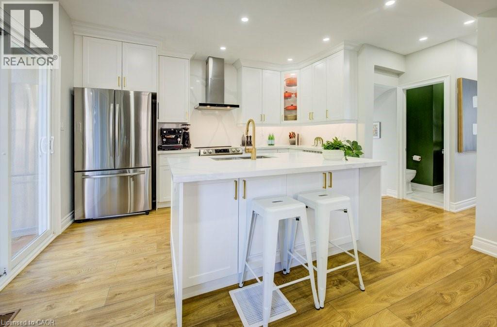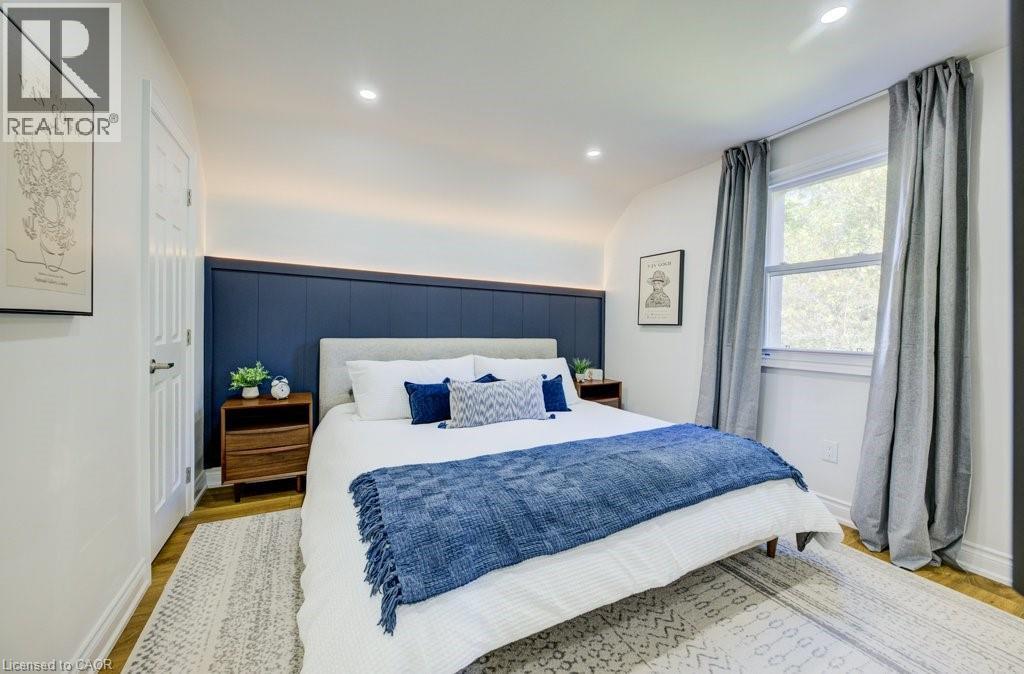 Welcome to this stunning 2.5 storey home in one of Kitchener’s most desirable neighbourhoods, surrounded by mature trees and trails at your fingersteps. Offering over 2300 sq ft of finished living space on a fully landscaped lot, this move-in ready home blends charm with high-end modern updates. Step into the bright sunroom, ideal as a mudroom or sitting area, before entering the fully renovated interior featuring a carpet-free layout, custom finishes, pot lighting, and thoughtful design throughout. The open-concept main floor includes a bright living room with built-ins and a spacious dining area surrounded by oversized windows. The custom kitchen is a true showpiece with an oversized island with storage, double sink, gold hardware, sleek stone countertops, ample cabinetry, and a stunning stone backsplash, space that is perfect for entertaining or everyday living. Upstairs, you will find the primary suite that features two closets, integrated lighting, and a luxurious newly updated ensuite with steam shower, floor-to-ceiling glass, built-in shelving, and high-end tile. The second bedroom is very spacious with generously sized closet, and the third is ideal as an office or den. A gorgeous 4-piece main bath with double vanity, glass shower doors and marble accents completes this level. And if that weren’t enough space, a retreat awaits! Accessed from the third room is the versatile upper loft which offers space for a bedroom, office, or playroom, with a bright window and large storage/closet. The finished basement (with separate entrance- in law potential) includes a cozy rec room with electric fireplace, pot lights, built-ins, laundry area, and extra storage. Outside, enjoy a private, fully fenced yard surrounded by mature trees, a deck for morning coffee, and a new fire pit area for evenings with friends. Minutes to Kitchener Market, Victoria Park, shops, restaurants, Google, LRT, GO Station, and expressway access. This is downtown living at its finest! (id:51158)