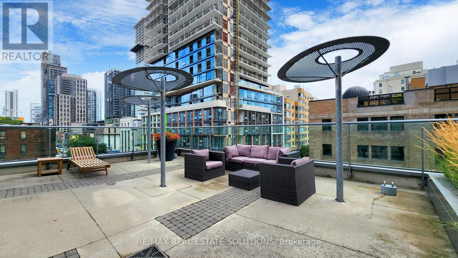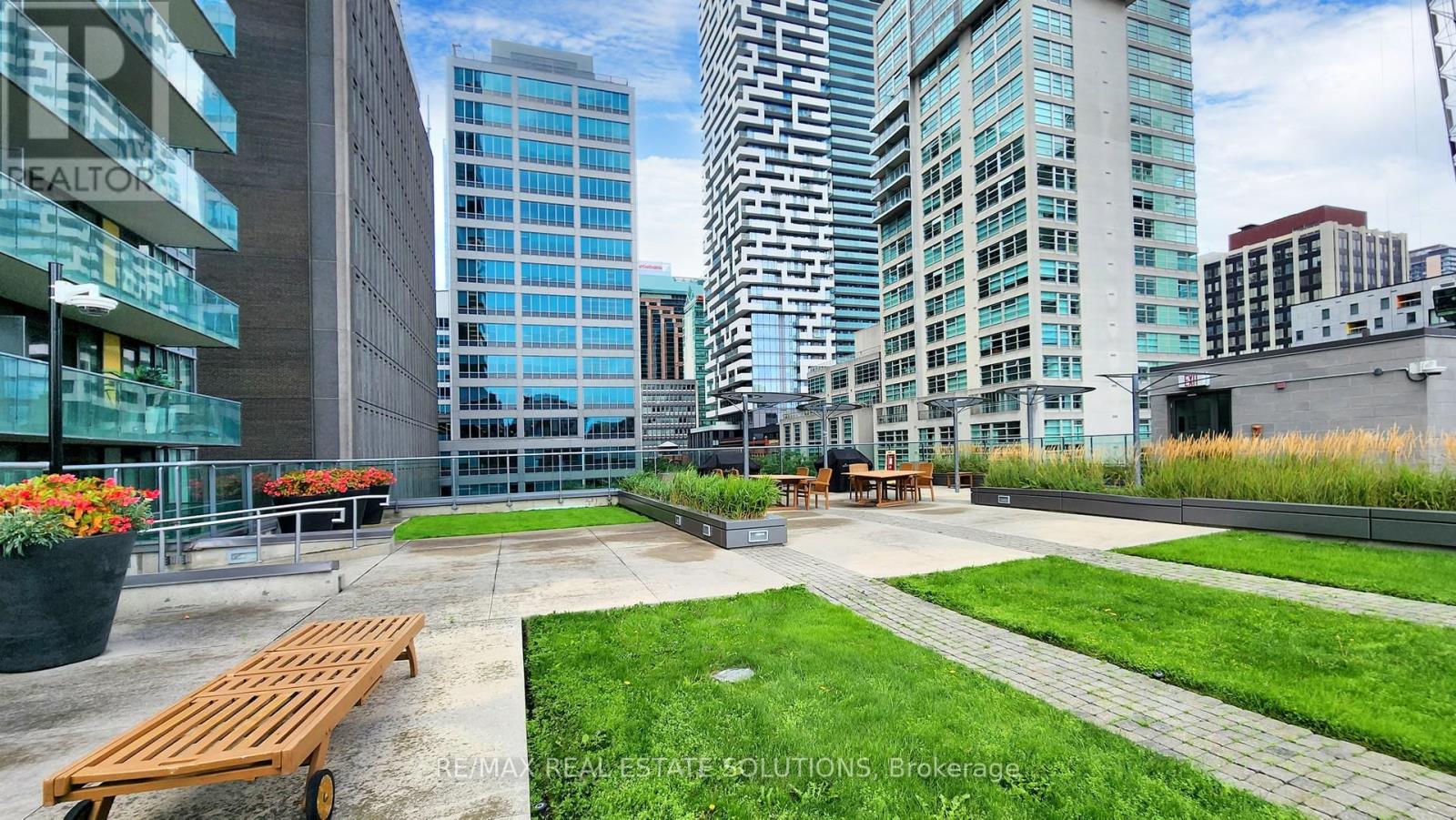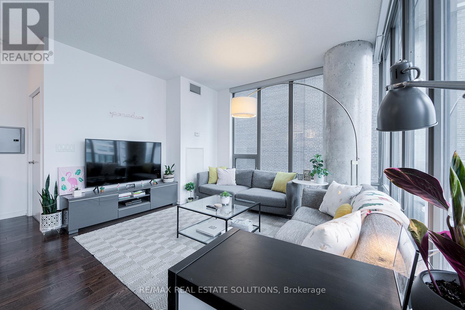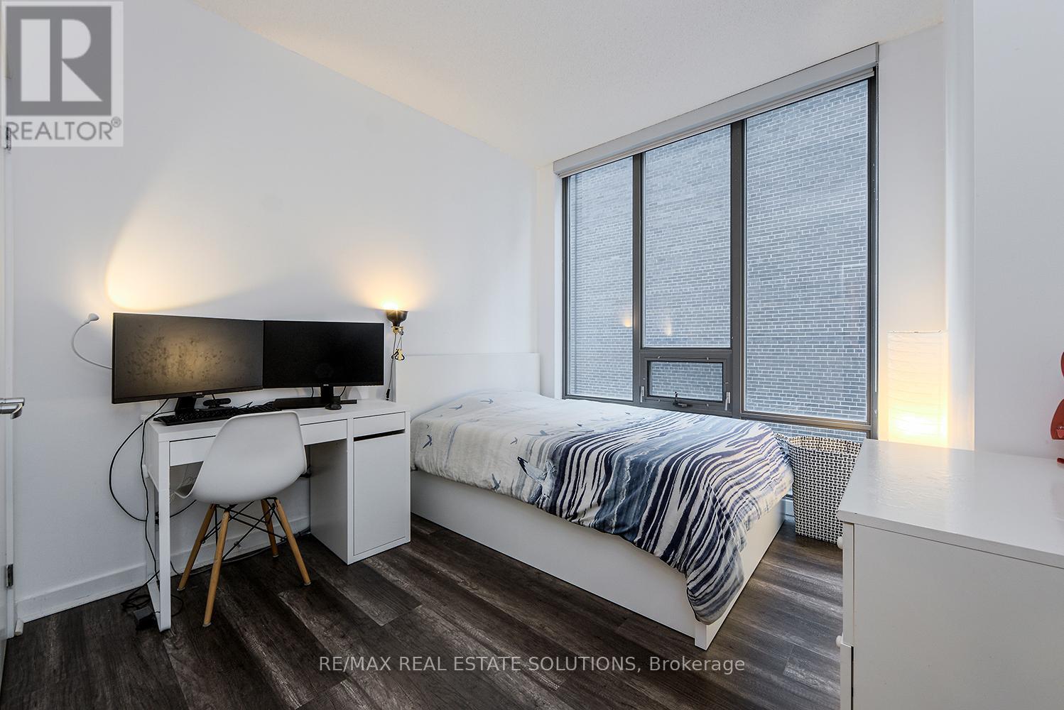 $653 MonthlyLive in one of downtown Torontos most sought-after addresses at the Spire. This bright and unique corner 1-bed unit features an open-concept layout with floor-to-ceiling windows that flood the space with natural light and extend seamlessly to a private balcony. The modern kitchen boasts sleek finishes and stainless steel appliances, ideal for any home chef. The spacious bedroom is equally inviting, with large windows that create an open, airy feel. Bonus: this unit includes a dedicated parking spot -- a rare find for a 1-bed condo. Residents enjoy premium building amenities including a 24-hour concierge, fully equipped gym, guest suites, rooftop terrace, and BBQ area. Perfectly located near Church & Adelaide, you're steps to Queen and King subway stations, the St. Lawrence Market, the Financial District, and the Harbourfront. Surrounded by trendy restaurants, shops, and excellent transit, this condo offers the very best of downtown living. (id:51158)