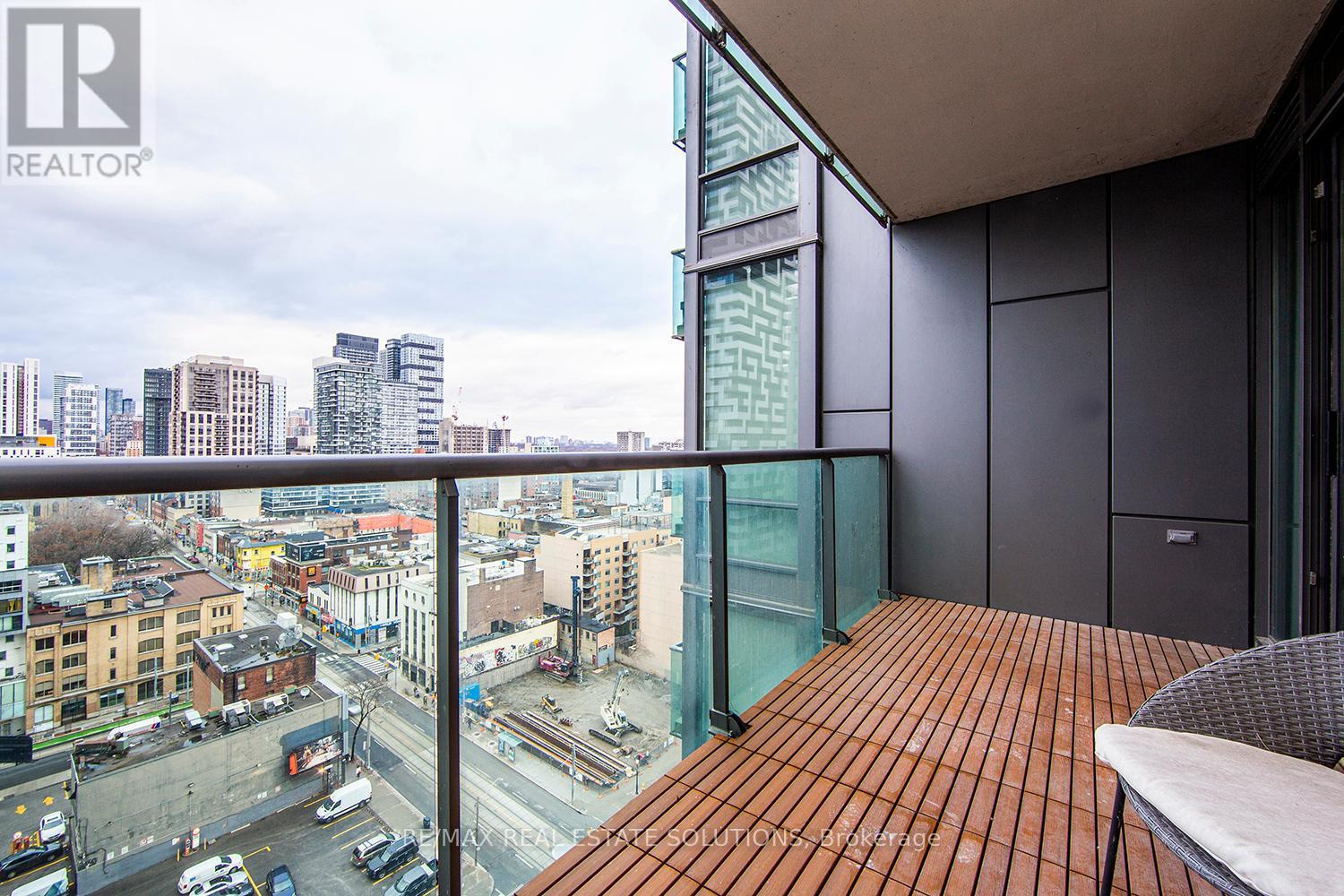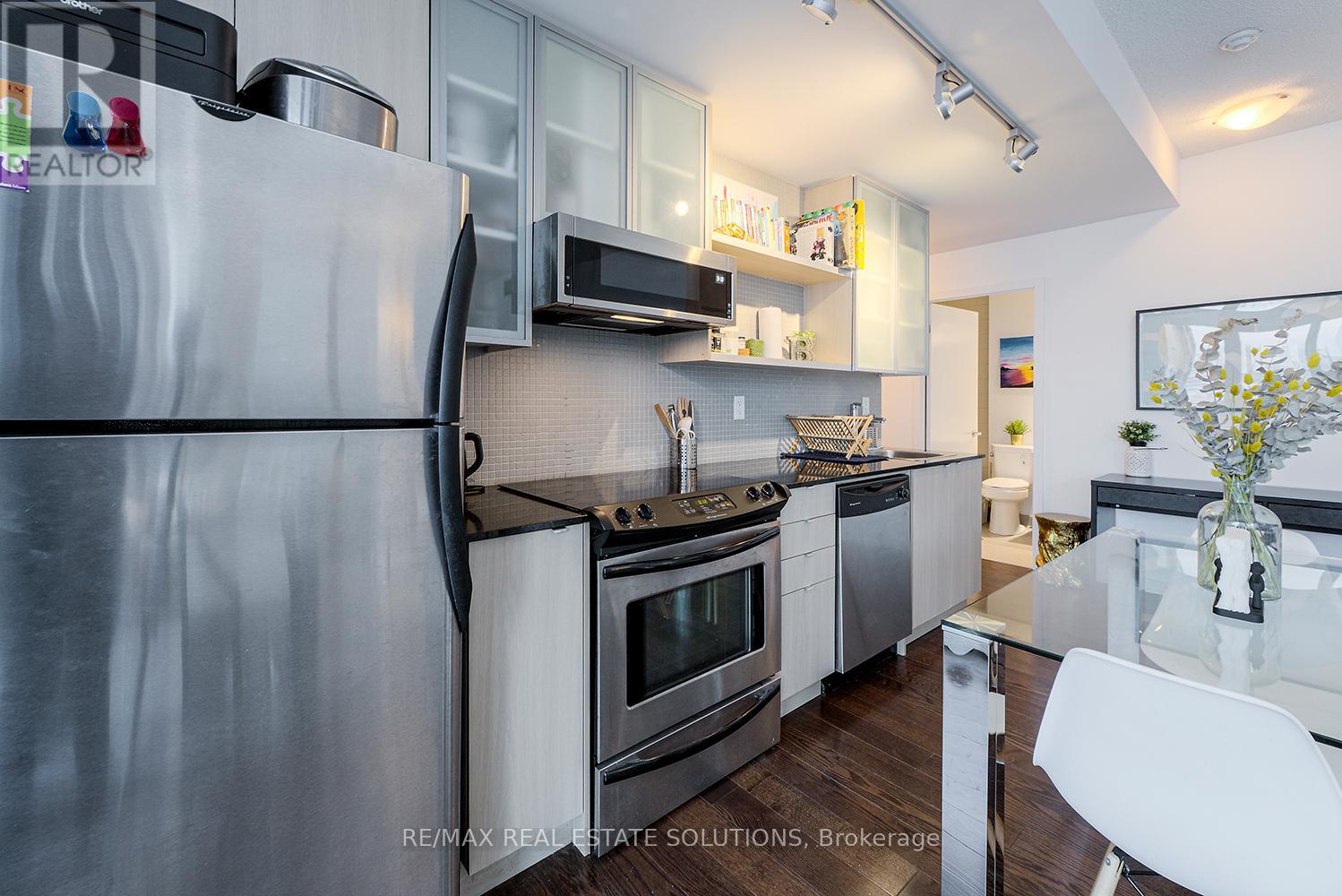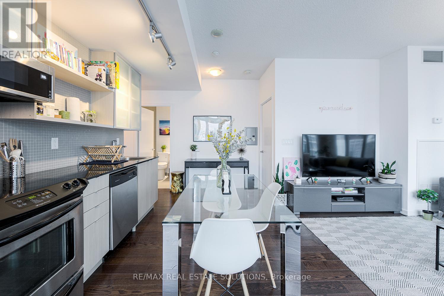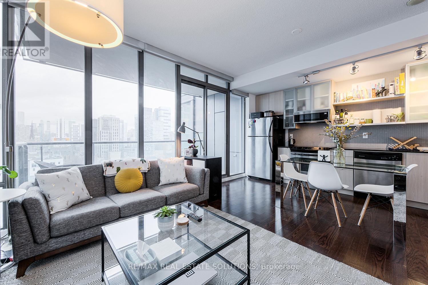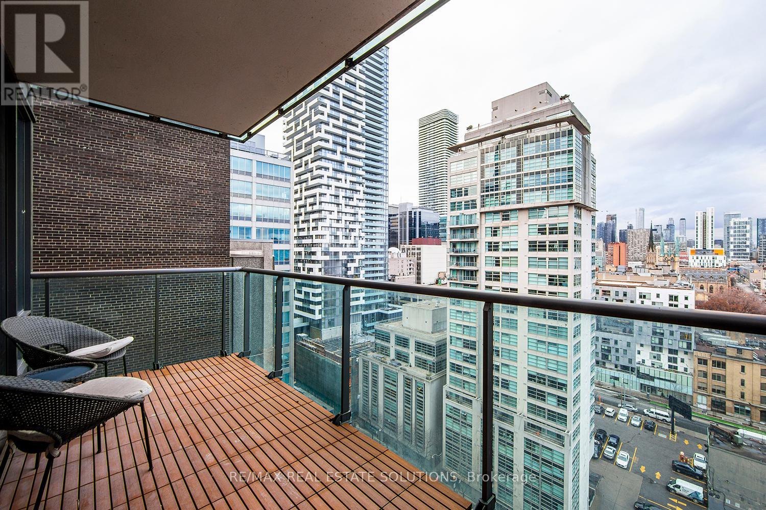 $653 MonthlyLive in one of downtown Torontos most sought-after addresses at the Spire. This bright and unique corner 1-bed unit features an open-concept layout with floor-to-ceiling windows that flood the space with natural light and extend seamlessly to a private balcony. The modern kitchen boasts sleek finishes and stainless steel appliances, ideal for any home chef. The spacious bedroom is equally inviting, with large windows that create an open, airy feel. Bonus: this unit includes a dedicated parking spot -- a rare find for a 1-bed condo. Residents enjoy premium building amenities including a 24-hour concierge, fully equipped gym, guest suites, rooftop terrace, and BBQ area. Perfectly located near Church & Adelaide, you're steps to Queen and King subway stations, the St. Lawrence Market, the Financial District, and the Harbourfront. Surrounded by trendy restaurants, shops, and excellent transit, this condo offers the very best of downtown living. (id:51158)