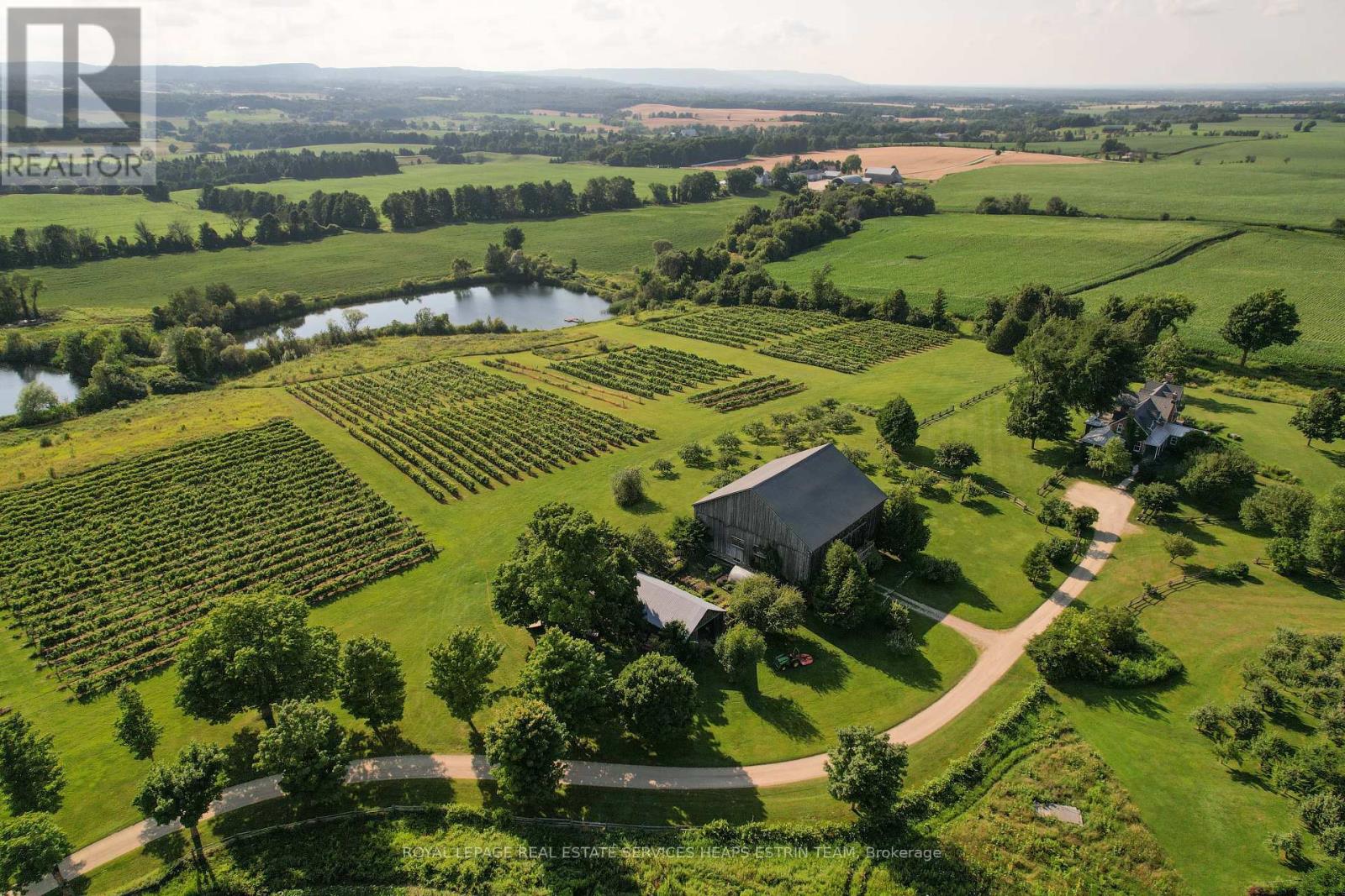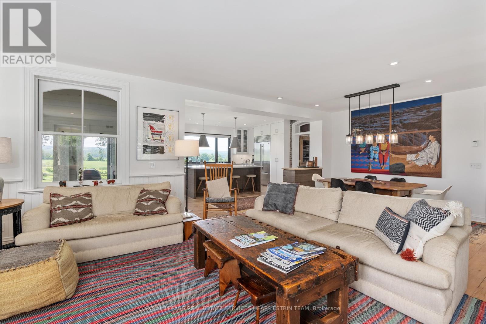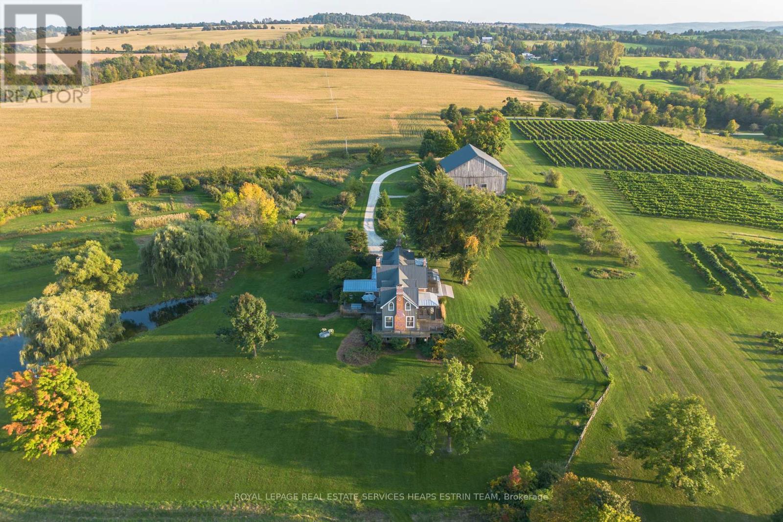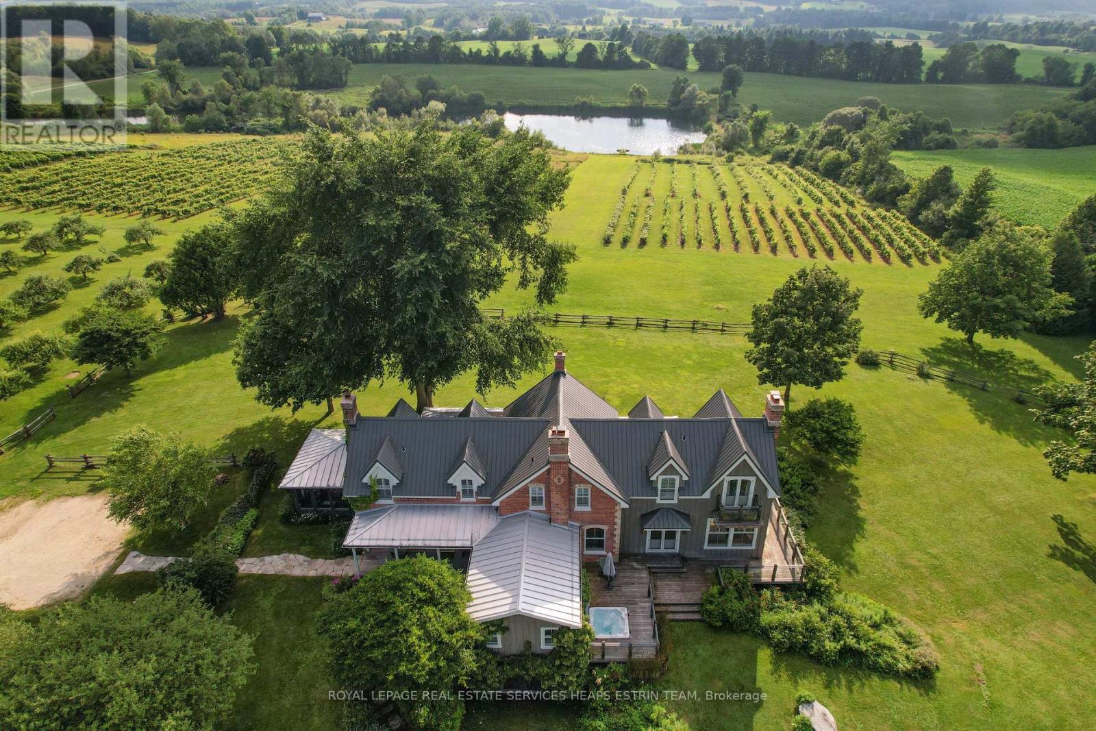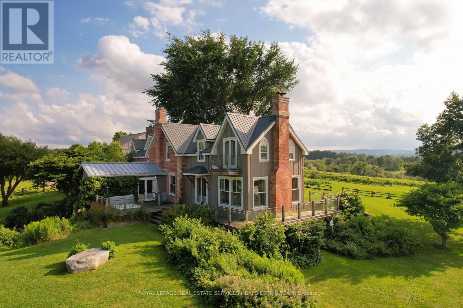Four Wheel Farm is a rare and extraordinary 242-acre estate offering unmatched privacy, panoramic views, and timeless character in the heart of Southern Georgian Bay. Set across two parcels (approx. 102 and 140 acres), this legacy property overlooks the Niagara Escarpment with views of Georgian Bay and its own gently sloping vineyard. Surrounded entirely by farmland, the setting is peaceful and secluded yet just minutes from Creemore, Collingwood, Mad River Golf Club, and private ski clubs including Devils Glen and Osler Bluff, under 2 hours from Toronto.At its centre is a beautifully preserved red brick Victorian farmhouse, thoughtfully expanded with modern additions that honour its heritage while elevating its functionality. With over 6000 square feet of living space, the home exudes warmth and charm throughout. The open-concept main floor flows seamlessly between a remodeled kitchen, formal and informal living areas, a dining space perfect for entertaining, and a sun-drenched 3-season room with in-floor heating and views across the ponds and vineyard. Four wood-burning fireplaces and rich architectural details add to the inviting atmosphere.The home features five bedrooms and six bathrooms, including a generous primary suite, a 5-piece ensuite, and a private balcony offering breathtaking views of the property and Georgian Bay. Multiple decks and a hot tub enhance the connection to the surrounding landscape, creating ideal spaces for both relaxing and hosting.The land includes approx. 140 acres of productive farmland, a 5.5-acre vineyard, 30 acres of sugar bush and mixed hardwood, four ponds, and trails through forests and natural habitat. Outbuildings include a classic renovated 60x 60bank barn and a large drive shed for equipment. This is a once-in-a-generation opportunity to own a truly private, character-filled estate with enduring appeal for generations to come. (id:51158)