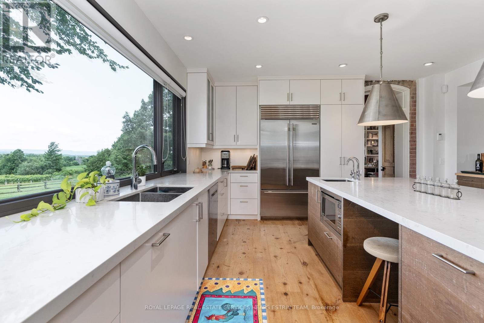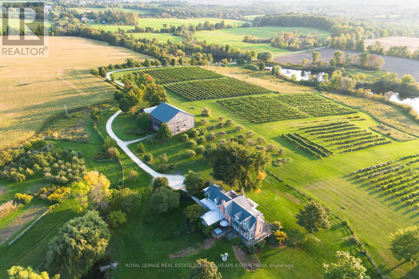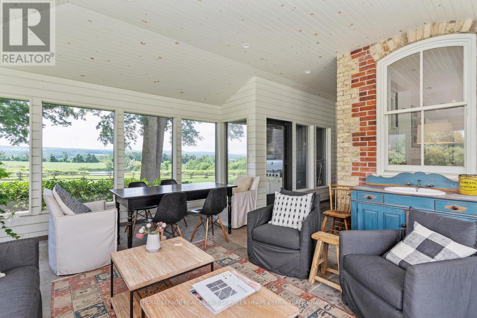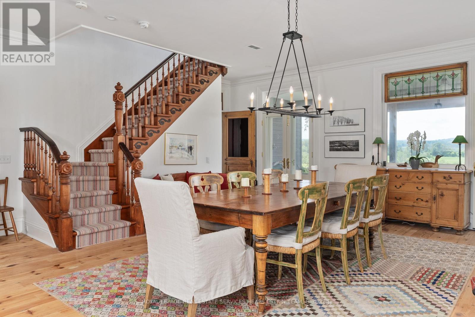Four Wheel Farm is a rare and extraordinary 242-acre estate offering unmatched privacy, panoramic views, and timeless character in the heart of Southern Georgian Bay. Set across two parcels (approx. 102 and 140 acres), this legacy property overlooks the Niagara Escarpment with views of Georgian Bay and its own gently sloping vineyard. Surrounded entirely by farmland, the setting is peaceful and secluded yet just minutes from Creemore, Collingwood, Mad River Golf Club, and private ski clubs including Devils Glen and Osler Bluff, under 2 hours from Toronto.At its centre is a beautifully preserved red brick Victorian farmhouse, thoughtfully expanded with modern additions that honour its heritage while elevating its functionality. With over 6000 square feet of living space, the home exudes warmth and charm throughout. The open-concept main floor flows seamlessly between a remodeled kitchen, formal and informal living areas, a dining space perfect for entertaining, and a sun-drenched 3-season room with in-floor heating and views across the ponds and vineyard. Four wood-burning fireplaces and rich architectural details add to the inviting atmosphere.The home features five bedrooms and six bathrooms, including a generous primary suite, a 5-piece ensuite, and a private balcony offering breathtaking views of the property and Georgian Bay. Multiple decks and a hot tub enhance the connection to the surrounding landscape, creating ideal spaces for both relaxing and hosting.The land includes approx. 140 acres of productive farmland, a 5.5-acre vineyard, 30 acres of sugar bush and mixed hardwood, four ponds, and trails through forests and natural habitat. Outbuildings include a classic renovated 60x 60bank barn and a large drive shed for equipment. This is a once-in-a-generation opportunity to own a truly private, character-filled estate with enduring appeal for generations to come. (id:51158)