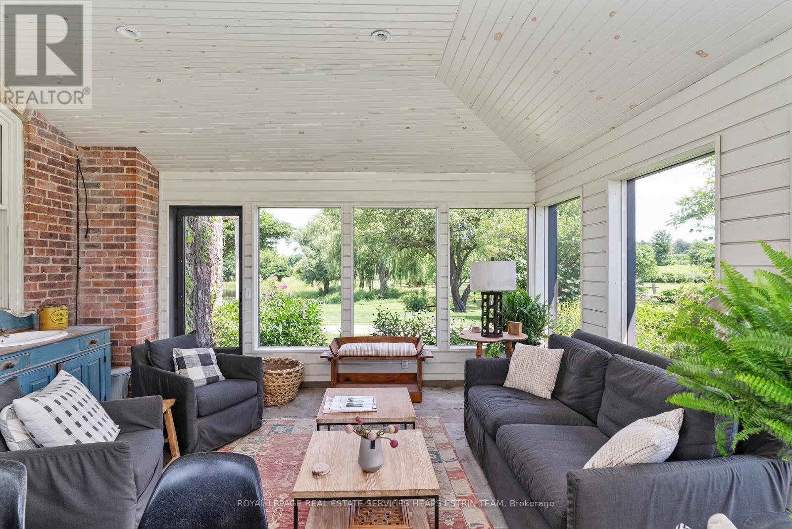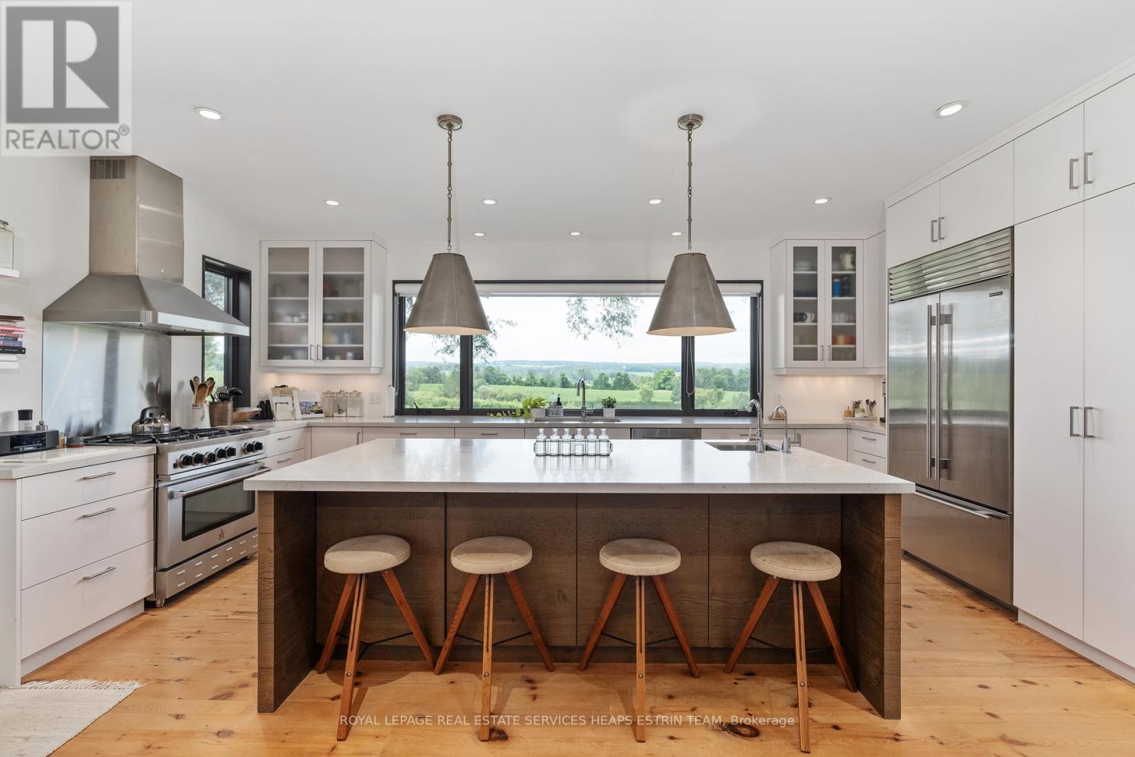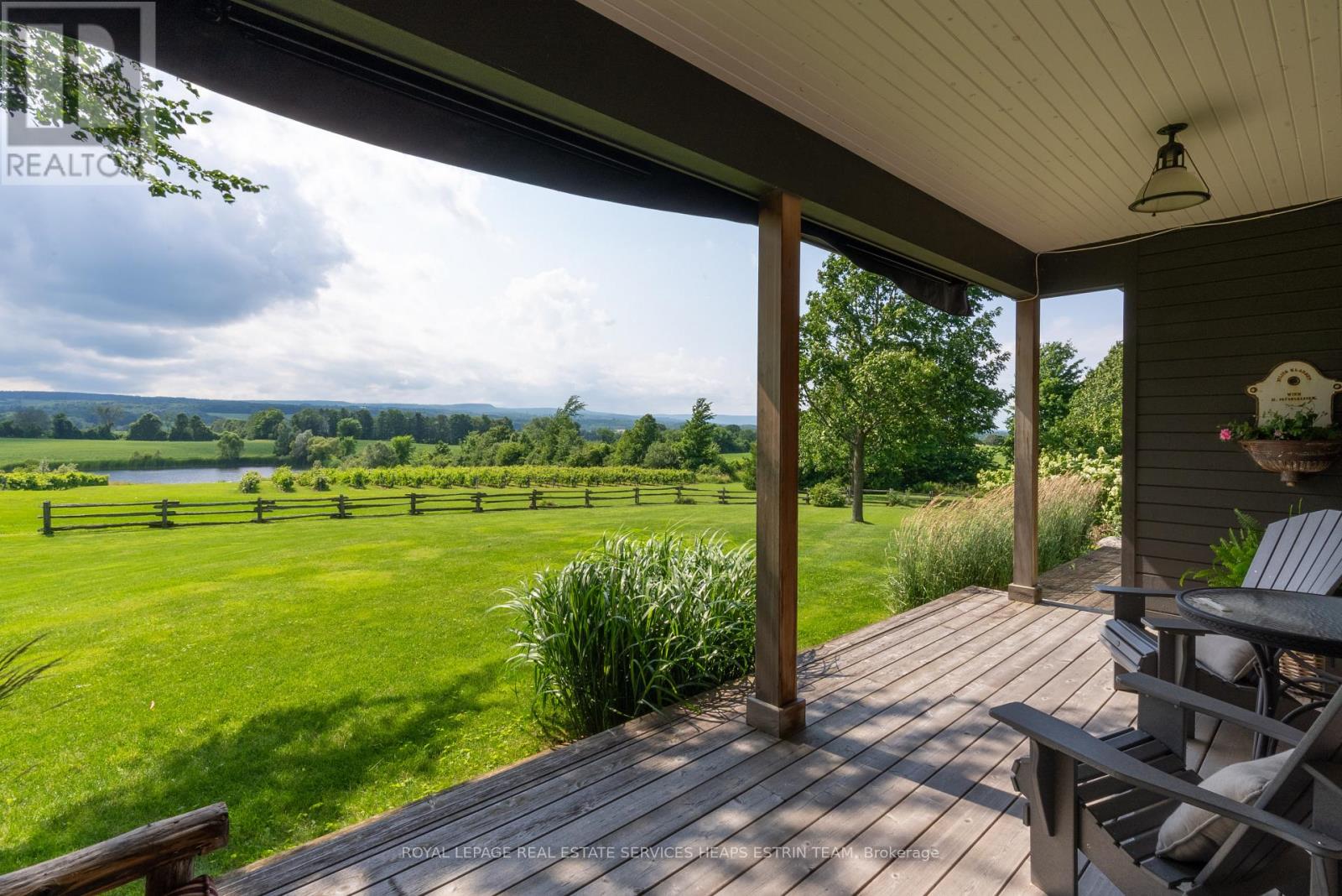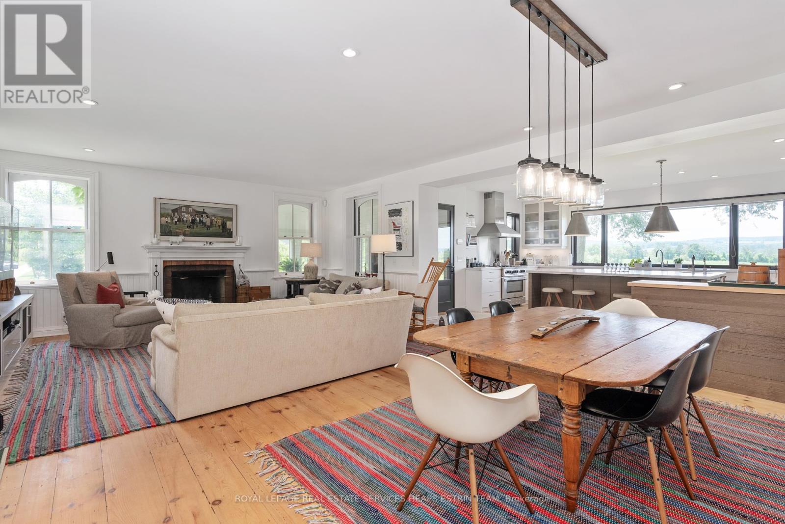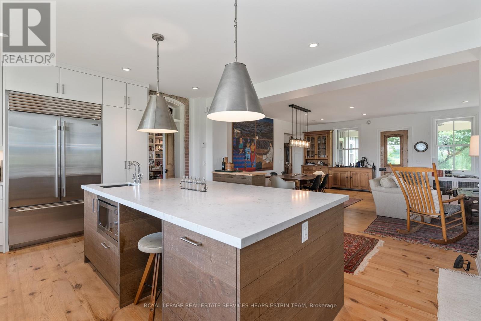 Four Wheel Farm is a rare and extraordinary 242-acre estate offering unmatched privacy, panoramic views, and timeless character in the heart of Southern Georgian Bay. Set across two parcels (approx. 102 and 140 acres), this legacy property overlooks the Niagara Escarpment with views of Georgian Bay and its own gently sloping vineyard. Surrounded entirely by farmland, the setting is peaceful and secluded yet just minutes from Creemore, Collingwood, Mad River Golf Club, and private ski clubs including Devils Glen and Osler Bluff, under 2 hours from Toronto.At its centre is a beautifully preserved red brick Victorian farmhouse, thoughtfully expanded with modern additions that honour its heritage while elevating its functionality. With over 6000 square feet of living space, the home exudes warmth and charm throughout. The open-concept main floor flows seamlessly between a remodeled kitchen, formal and informal living areas, a dining space perfect for entertaining, and a sun-drenched 3-season room with in-floor heating and views across the ponds and vineyard. Four wood-burning fireplaces and rich architectural details add to the inviting atmosphere.The home features five bedrooms and six bathrooms, including a generous primary suite, a 5-piece ensuite, and a private balcony offering breathtaking views of the property and Georgian Bay. Multiple decks and a hot tub enhance the connection to the surrounding landscape, creating ideal spaces for both relaxing and hosting.The land includes approx. 140 acres of productive farmland, a 5.5-acre vineyard, 30 acres of sugar bush and mixed hardwood, four ponds, and trails through forests and natural habitat. Outbuildings include a classic renovated 60x 60bank barn and a large drive shed for equipment. This is a once-in-a-generation opportunity to own a truly private, character-filled estate with enduring appeal for generations to come. (id:51158)