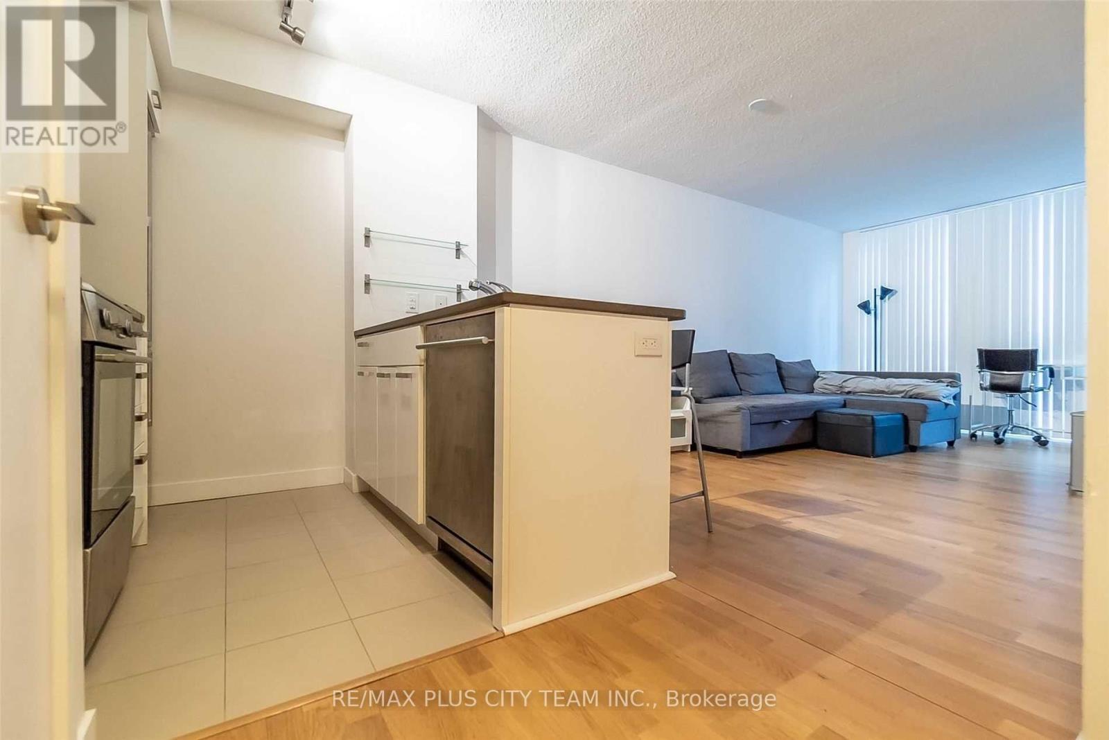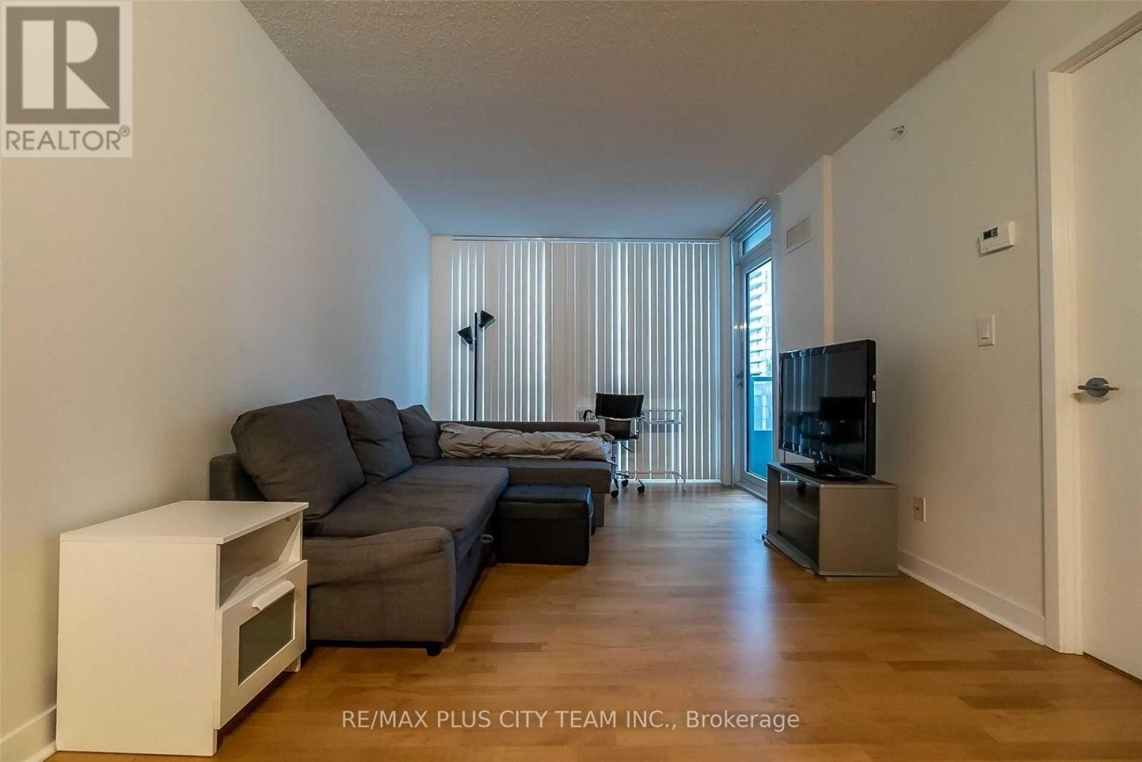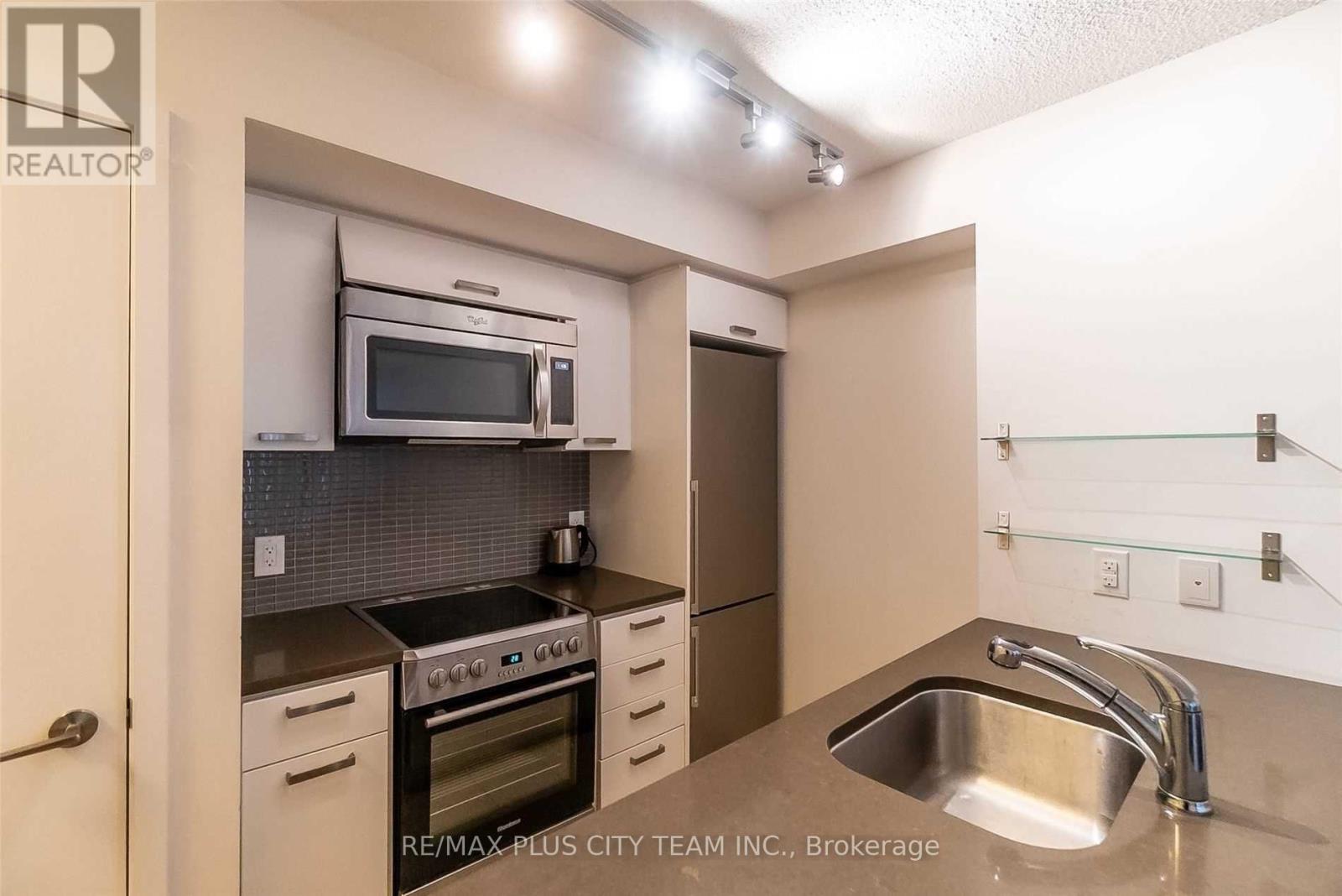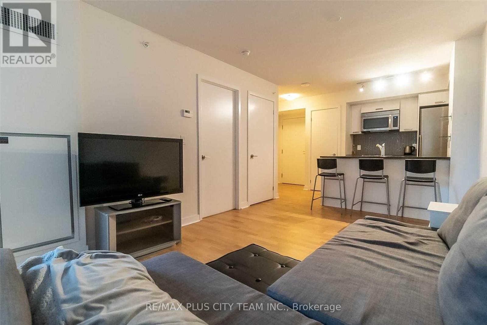 Enjoy open-concept living in this 1-bedroom, 1-bath suite in the heart of the Entertainment District. The bright living and dining area features durable laminate flooring and a large window that fills the space with natural light, plus a walkout from the living room to a 43 sq ft balcony for fresh air and city views. The modern kitchen offers stainless steel appliances, quartz counters, sleek cabinetry, and a convenient breakfast bar for casual meals or work-from-home days. The bedroom is a comfortable retreat with space for a queen bed and storage. In-suite laundry adds everyday convenience. Residents enjoy outstanding building amenities including a fitness centre, party and media rooms, concierge, and inviting lounge spaces. Prime location steps to St. Andrew Station, the 503 streetcar, Rogers Centre, CN Tower, the Financial and Entertainment Districts, world-class dining, shopping, the PATH, and more. Move-in ready and fully furnished for easy downtown living. *Please note that the photos are from a previous listing. (id:51158)