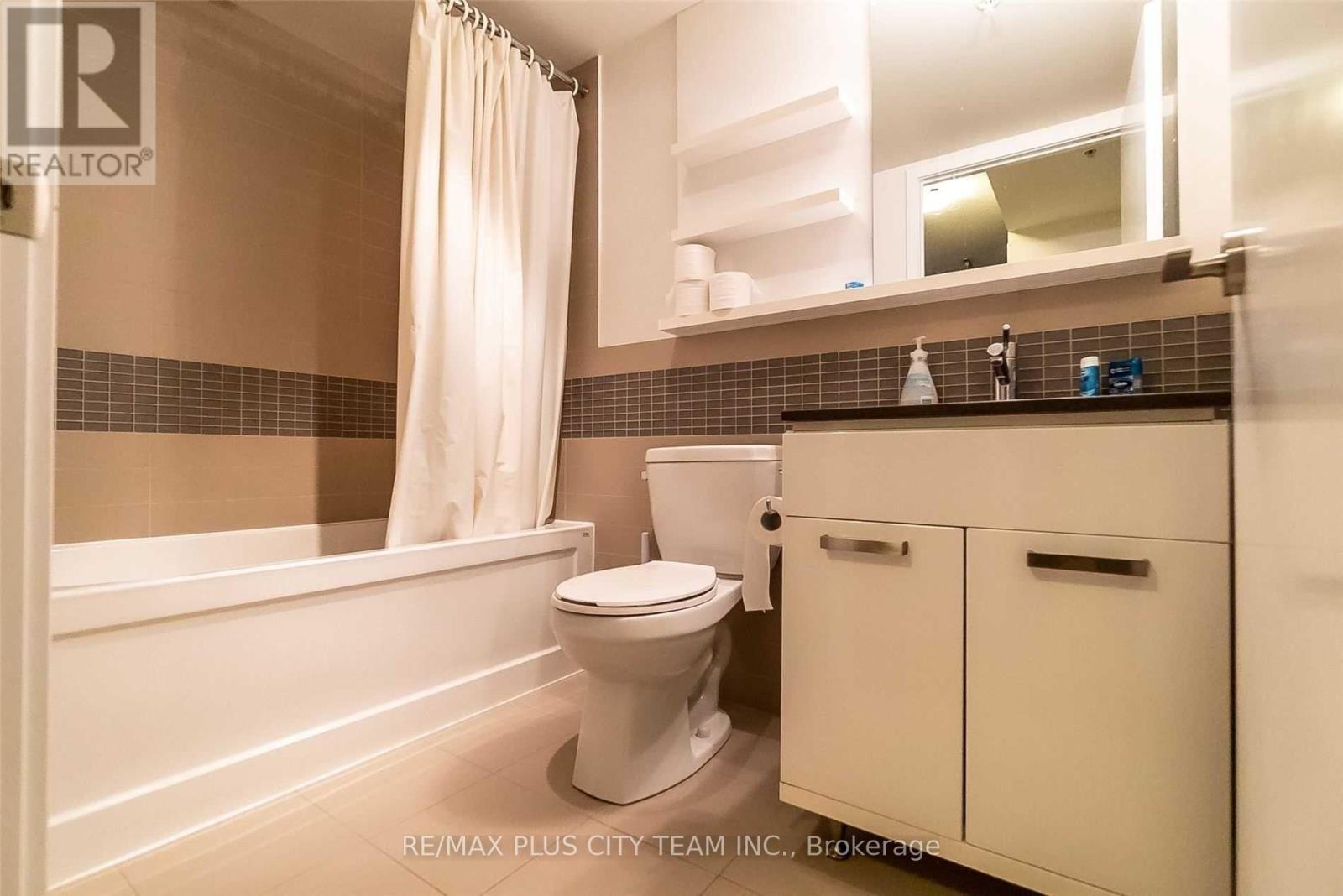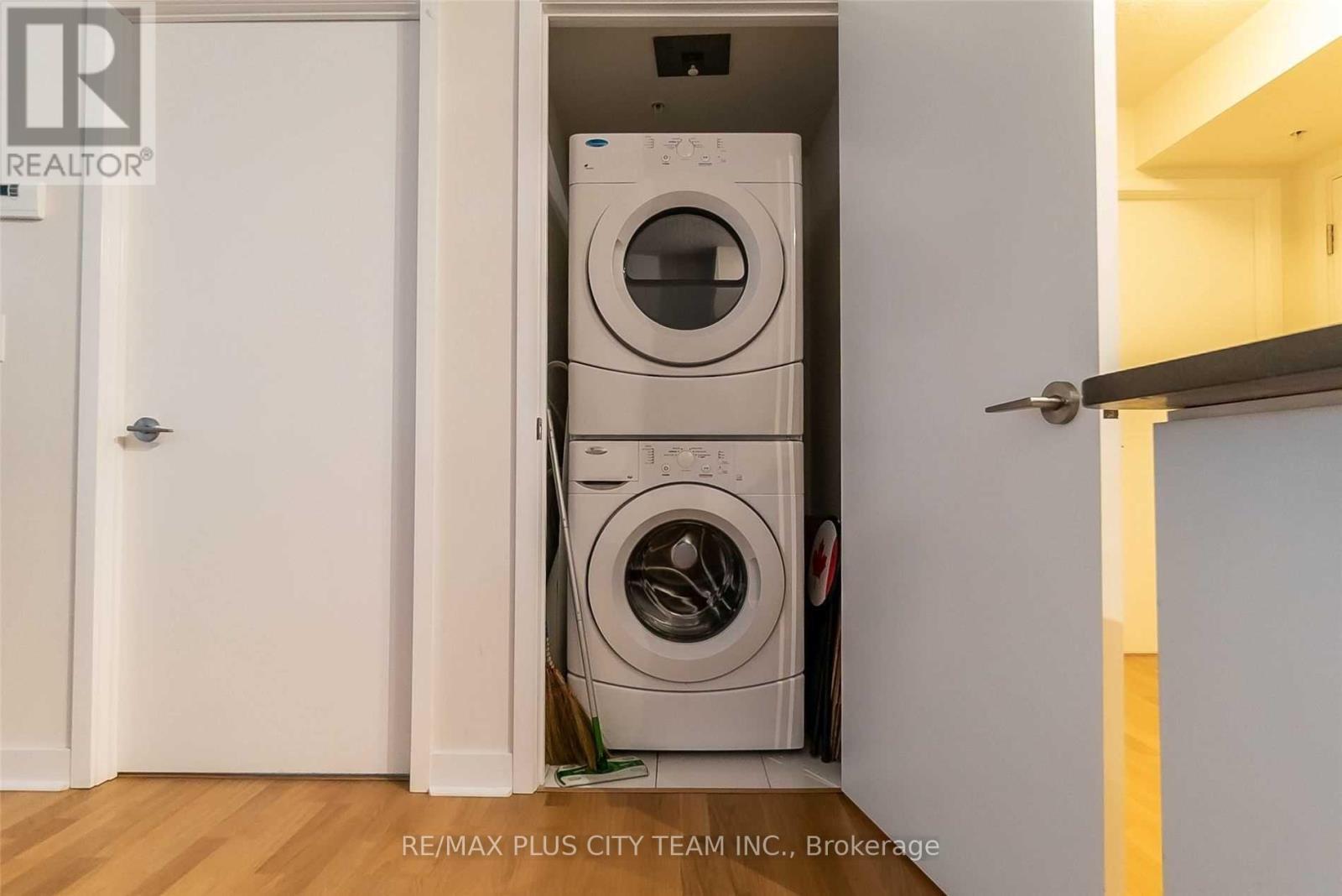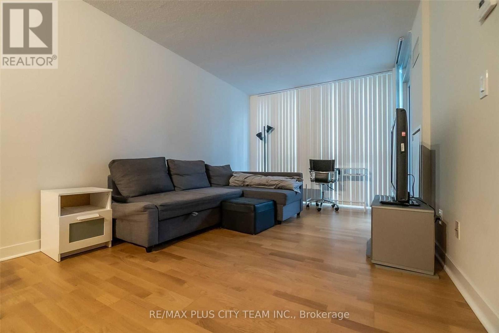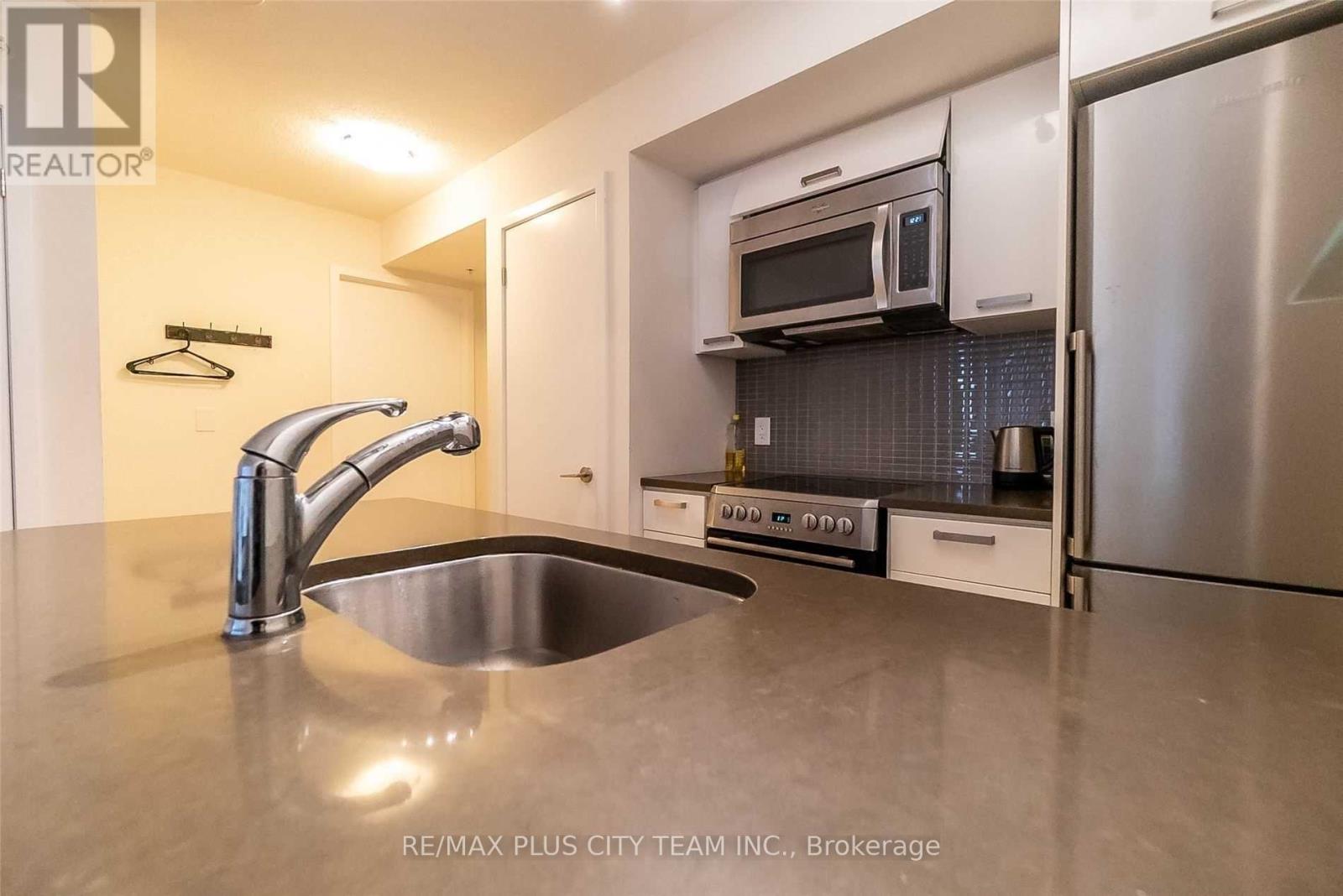 Enjoy open-concept living in this 1-bedroom, 1-bath suite in the heart of the Entertainment District. The bright living and dining area features durable laminate flooring and a large window that fills the space with natural light, plus a walkout from the living room to a 43 sq ft balcony for fresh air and city views. The modern kitchen offers stainless steel appliances, quartz counters, sleek cabinetry, and a convenient breakfast bar for casual meals or work-from-home days. The bedroom is a comfortable retreat with space for a queen bed and storage. In-suite laundry adds everyday convenience. Residents enjoy outstanding building amenities including a fitness centre, party and media rooms, concierge, and inviting lounge spaces. Prime location steps to St. Andrew Station, the 503 streetcar, Rogers Centre, CN Tower, the Financial and Entertainment Districts, world-class dining, shopping, the PATH, and more. Move-in ready and fully furnished for easy downtown living. *Please note that the photos are from a previous listing. (id:51158)