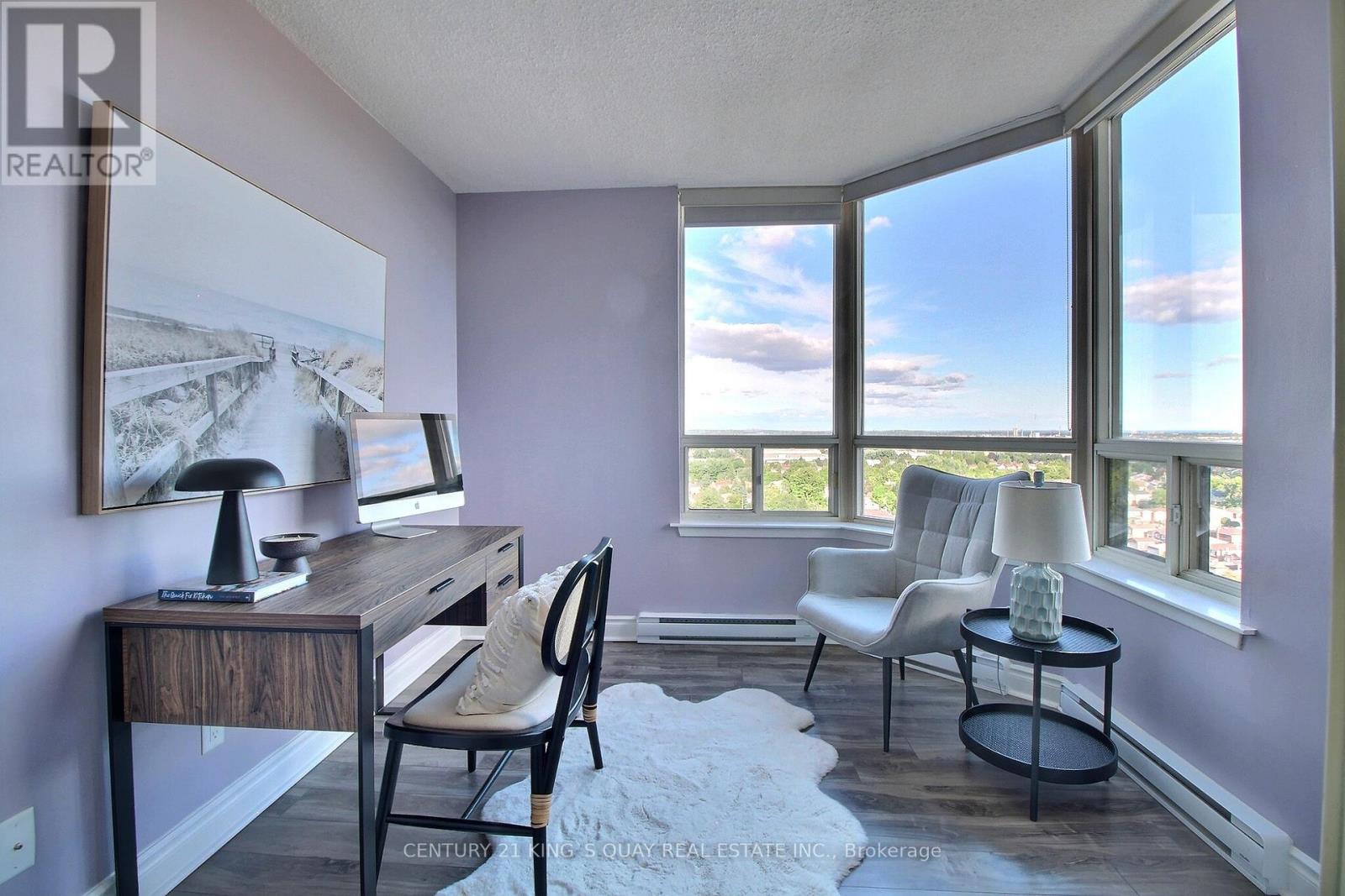 Optima On the Park Welcome to the highly sought-after Davinci Model at Optima On the Park, built by the reputable builder Minto. This stunning corner suite spans 1,325 square feet and is located on a high floor, offering a sun-filled living experience with breathtaking unobstructed southeast views. This rarely available unit features two spacious bedrooms, plus a versatile solarium that can serve as a third bedroom. The condo has been fully renovated with a modern design, which includes a stylish kitchen, two updated bathrooms, and elegant plank laminate flooring throughout. A mirror wall in the dining area enhances the spacious feel of the home. Enjoy the convenience of ensuite storage, with additional storage lockers available for rent from the management office. The building boasts excellent facilities, including an indoor swimming pool, sauna, exercise room, ping pong table, tennis court, and party room. The well-maintained building also offers 24-hour security for your peace of mind. Located just steps from the TTC, Milliken Park, a community center, a library, a shopping plaza, a Chinese supermarket, restaurants, and Tim Hortons, this condo offers unparalleled convenience and lifestyle. Don't miss the opportunity to own this exceptional unit in a prime location! (id:51158)