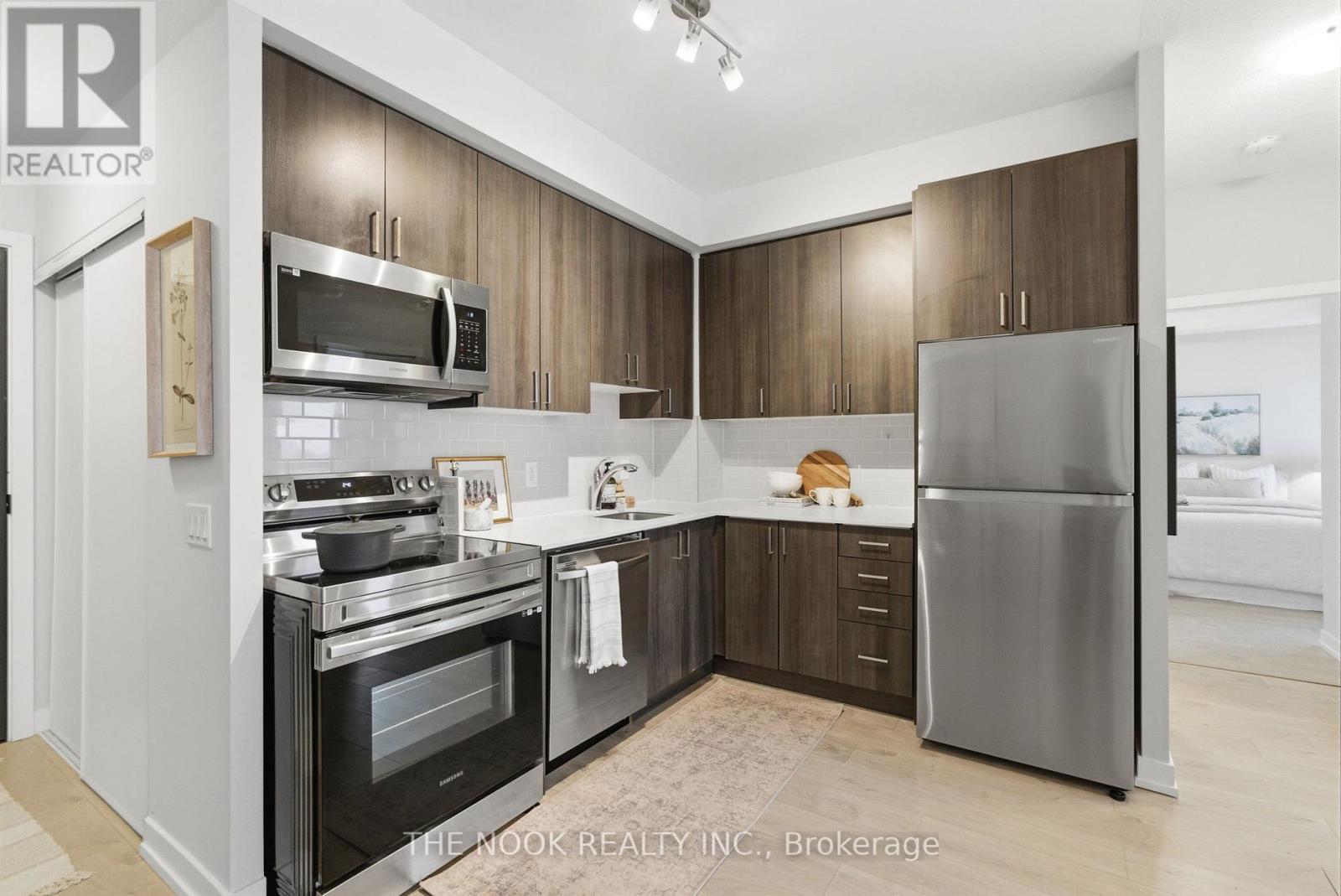 $776.81 MonthlyStunning & Spacious End Unit Condo in Sought-After Universal City! Nestled right next to the GO train station, this beautiful unit features a fantastic layout and offers 2 well-sized bedrooms, 2 modern bathrooms and two expansive private balconies with a south exposure and views of the lake. Open concept kitchen with quartz countertops, a stylish backsplash, and stainless steel appliances that is open to the spacious and sun-filled living/dining area. Enjoy a stunning party and entertaining room, along with a rooftop terrace equipped with BBQs and a pool! Additional amenities include 24-hour concierge service, underground visitor parking, one owned underground parking space and locker. Conveniently located within walking distance to the GO Station and easy access to the highway, making this location perfect location for commuting, shopping and entertaining! (id:51158)