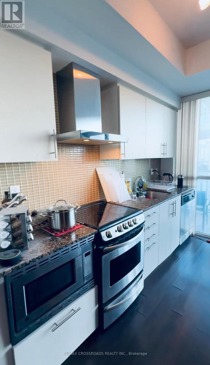 Gorgeous 1-bedroom plus den condo in the heart of Torontos Entertainment District. Bright and spacious, it features floor-to-ceiling windows, west sunset views, and a massive balcony perfect for entertaining. The open-concept layout includes space for a living and dining area, work from home, spacious multi-purpose den, and a modern kitchen with stone counters, tile backsplash, built-in oven, and countertop range. Steps from The Well, King West, Union Station, CN Tower, Rogers Centre, and Blue Jays games, with nearby waterfront trails, Clarence Square Park, and the TTC/Gardiner/DVP nearby. Building amenities include 24-hour concierge, guest suites, gym, sauna, party room, rooftop patio. One locker is included. (id:51158)
