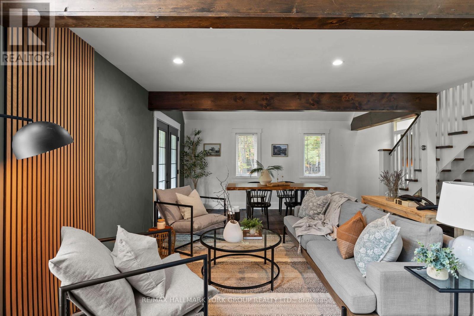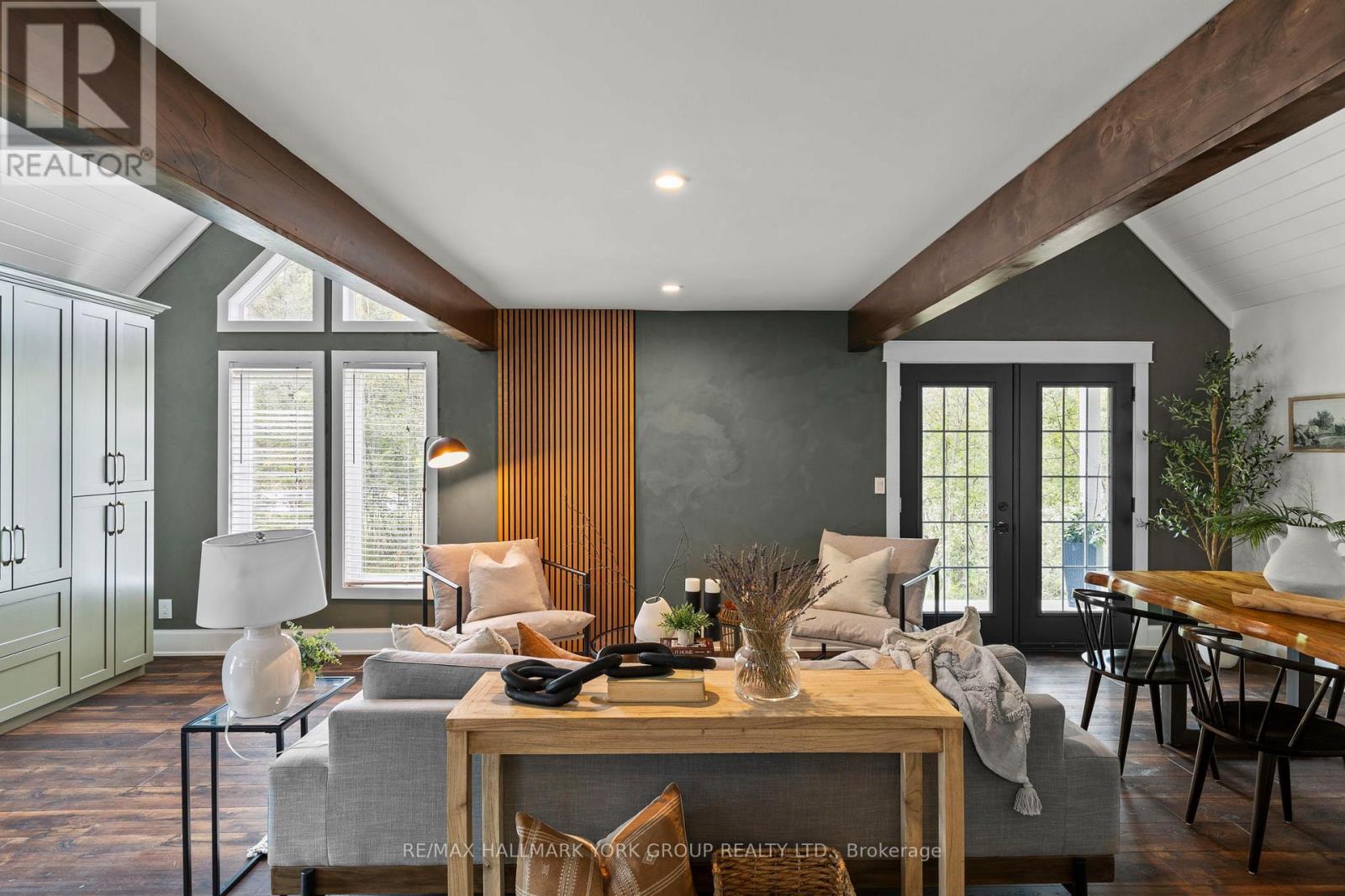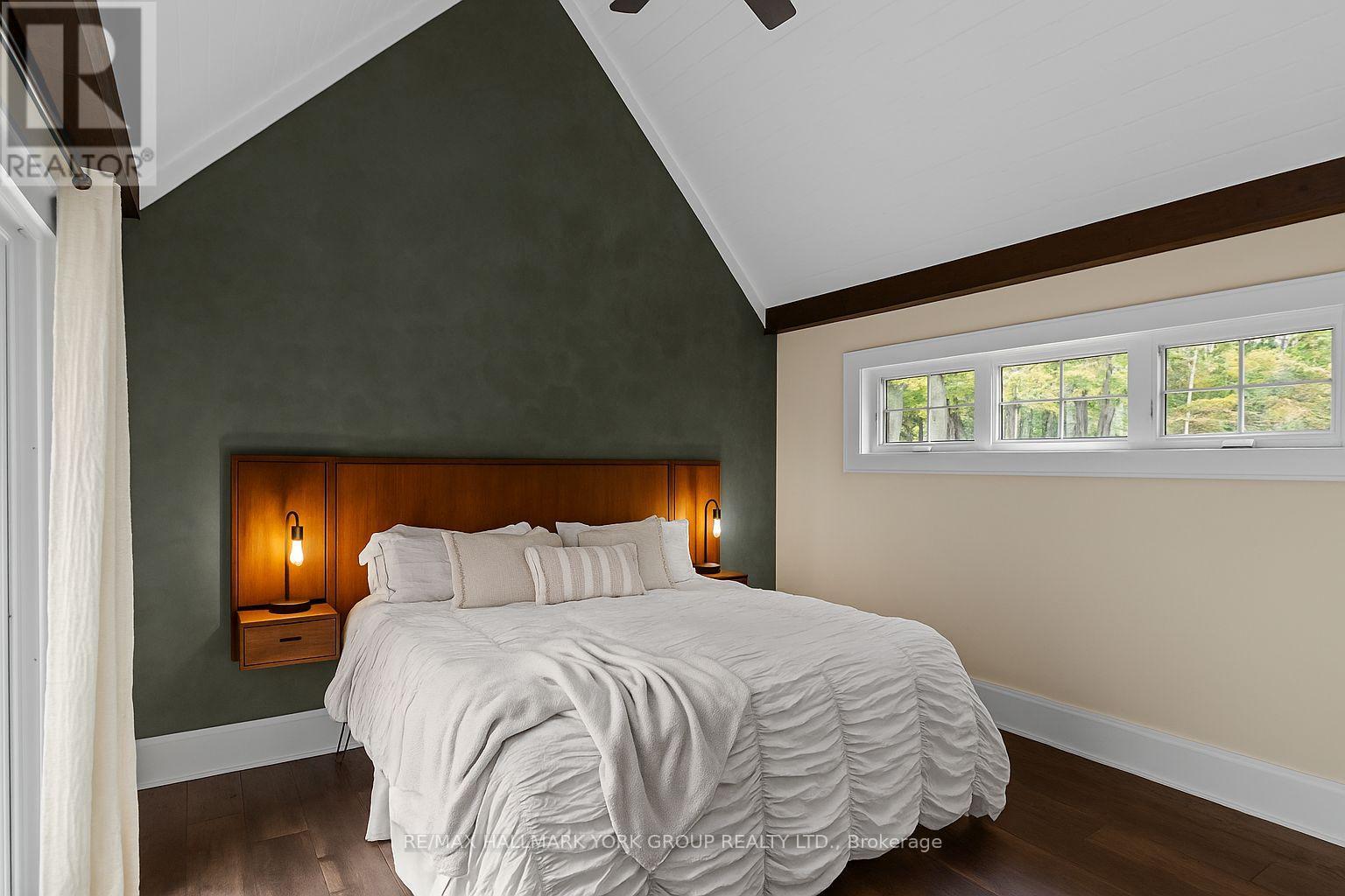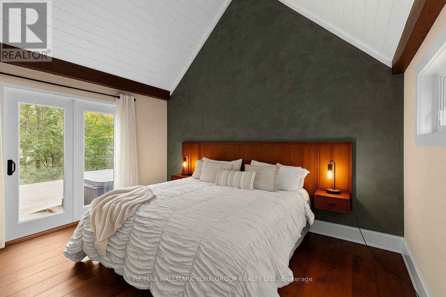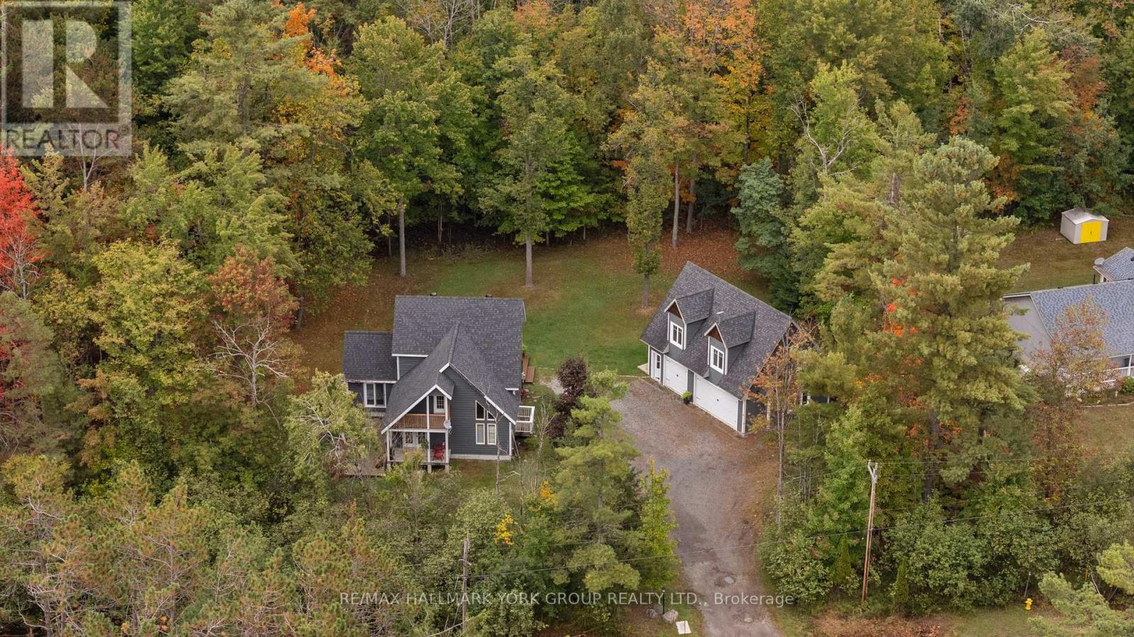Nestled on a peaceful 0.76 acre, park-like property, this Muskoka retreat blends comfort, charm and quiet serenity. The 1,694 sq ft chalet-inspired home, offers 3 bedrooms and 3 bathrooms, designed for relaxed living and gatherings. Inside the home, a modern rustic atmosphere flows through with wide-plank hardwood floors, exposed beams and thoughtful touches like a classic clawfoot tub. The main floor primary suite feels like a private hideaway with vaulted ceilings a spa like 3 piece ensuite featuring a stone shower, a walk-in closet, all overlooking a large patio. Upstairs the vaulted loft offers a cozy space to relax or entertain accompanied by two additional bedrooms and a full 4 piece bathroom. A rare triple-car detached garage with heated radiant slab flooring and a bright 500 sq. ft. loft above provides endless possibilities - from a studio, gym or office to a future coach house, as services and plumbing rough-ins are already in place. Below, a clean and functional 5' crawlspace provides storage and houses the home's services, insulated with spray foam and finished with a concrete floor for durability. Recent updates give peace of mind, including a newer roof (2016), on demand water heater (2018), fresh kitchen counters (2023), a new furnace (2023) along with tasteful cosmetic upgrades that add to the home's welcoming feel. Located just minutes from town on a paved year-round road, this property offers the best of Muskoka living - tranquil country privacy with all the conveniences of municipal services and high-speed internet. A perfect blend of cozy retreat and everyday comfort, this is a place to slow down, breathe and truly feel at home. (id:51158)