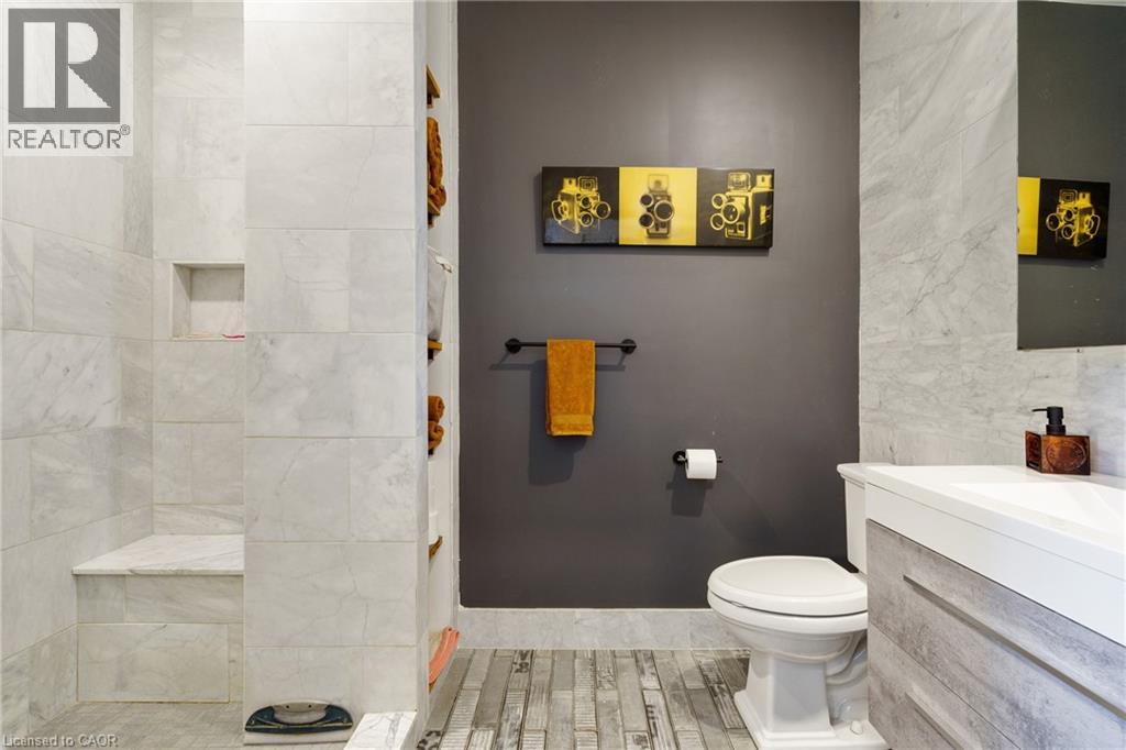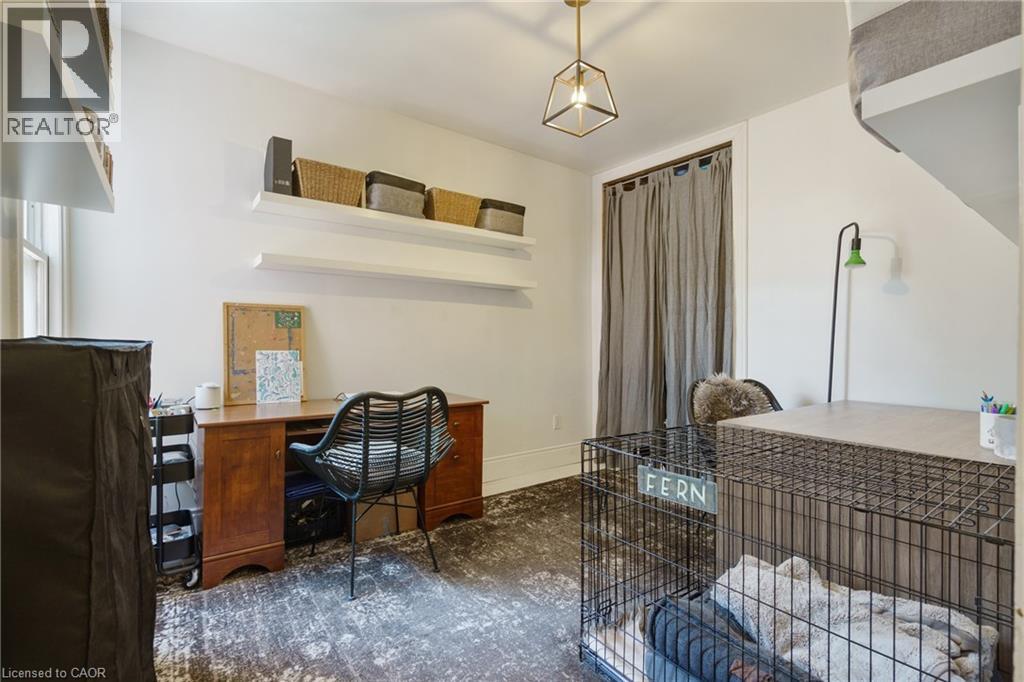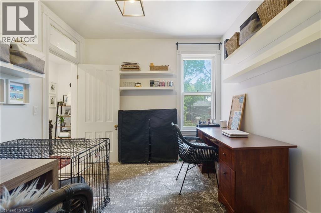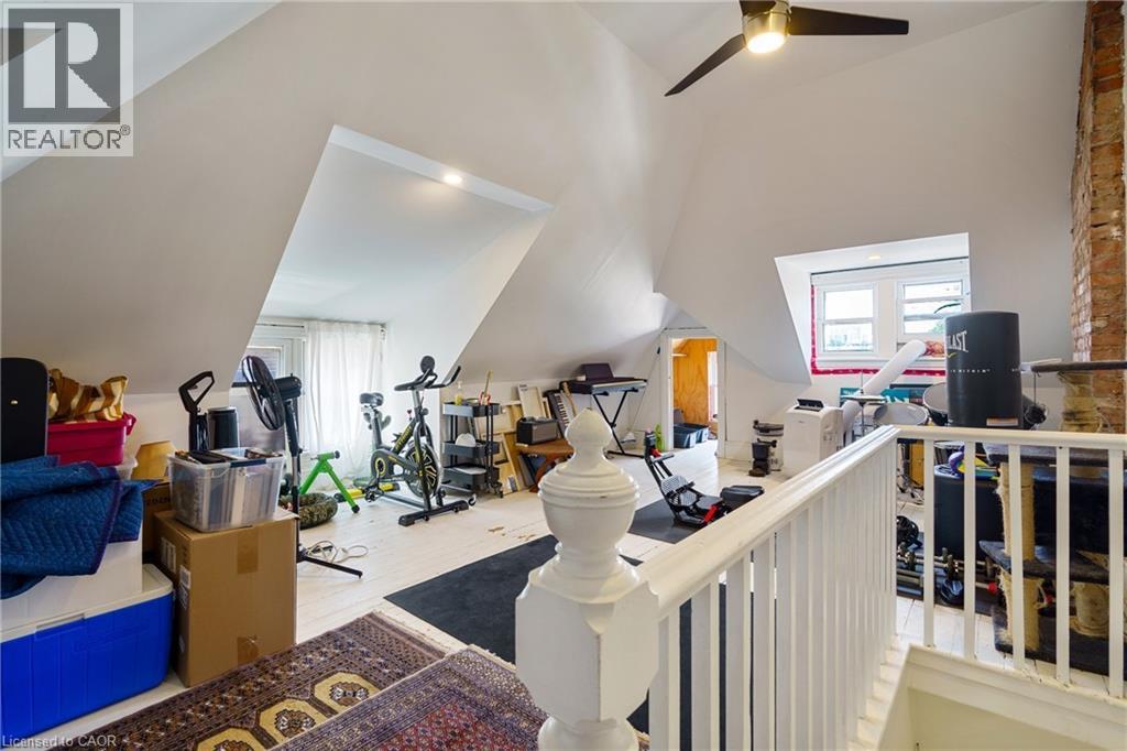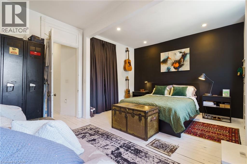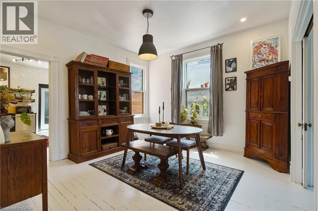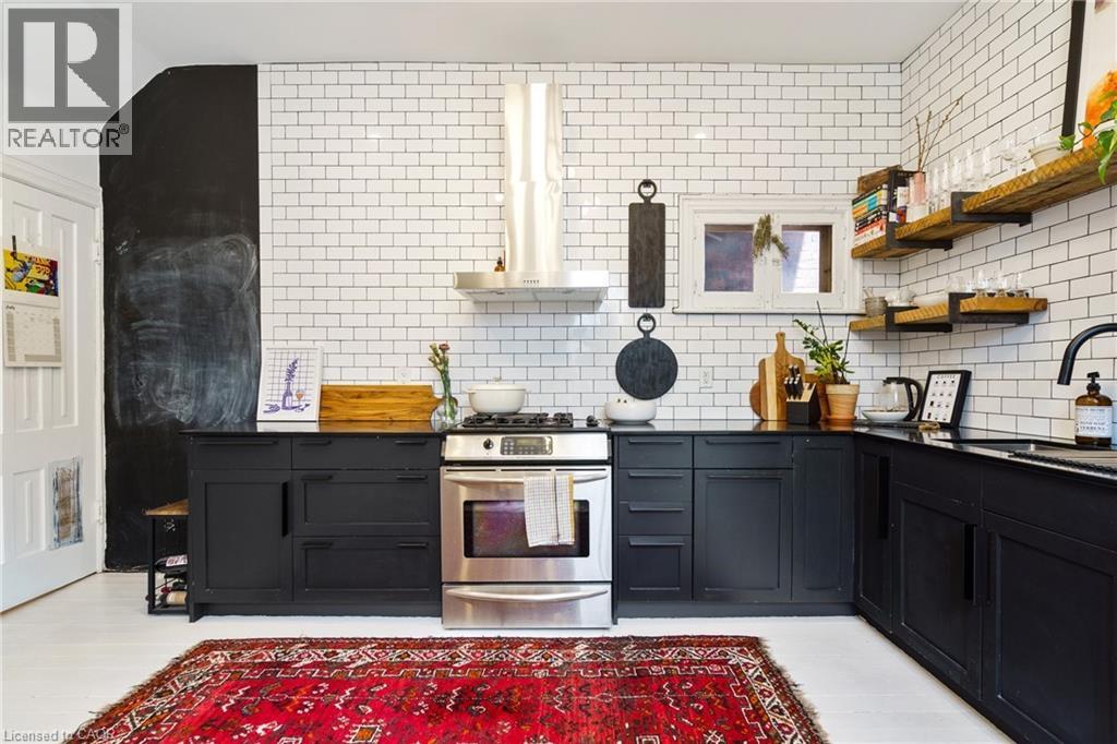 Hard to ignore charm: Exposed brick, original tongue-and-groove pine floors, restored doors and hardware, detailed millwork, soaring ceilings, and industrial-chic finishes. The spacious Dining Room flows into a bright Living Room with a decorative original fireplace. The chef’s Kitchen stuns with floor-to-ceiling subway tile, quartz counters, reclaimed slab shelving, and access to a backyard oasis. Upstairs, the Primary Bedroom with balcony feels grand yet cozy, while the middle Bedroom makes a perfect office with a huge closet. Bedroom-level Laundry leads to a stunning bathroom with marbled walk-in shower and built-in seating; an additional bathroom features a luxurious soaker tub. Every detail blends casual comfort with upscale design. The third level offers a versatile attic-turned-bedroom (with spray foam insulation professionally completed), plus rear unfinished attic space. Below, the walkout Basement includes storage and a roughed-in bathroom. Updates include: Custom shed (2024), eaves/flashing (2022), backyard fence with hidden laneway gate (2021), AC & furnace (2019), and full roof, plumbing & electrical (2017). Bonus: Catharine St N is a one-way toward Cannon, making it quieter than you'd expect. Even better in person—don’t miss this! (id:51158)