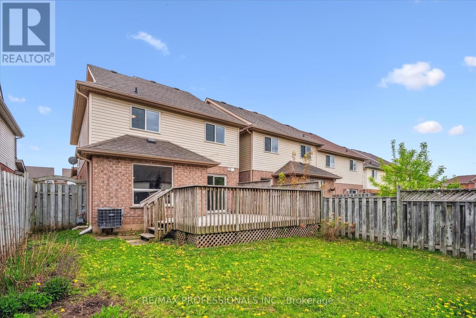 Located in Guelph's east end, this home is a fantastic opportunity for young families looking to settle in a safe, vibrant neighborhood. Just a 2-minute walk to William C. Winegard Public School, and close to parks, schools, and many other amenities, this location checks all the boxes! Inside, the bright and open main floor offers ceramic tile in the foyer, kitchen and breakfast room, along with vibrant hardwood flooring in the living/dining room. A gas fireplace provides a cozy focal point - perfect for relaxing evenings with the family. Upstairs, you'll find three generous bedrooms, including a spacious primary bedroom with semi-ensuite access to a full 4-piece bathroom. A convenient main floor powder room adds extra functionality. The fully finished basement features durable vinyl flooring, making it a great flex space for a playroom, home office, or recreation area. Step outside to your fully fenced backyard complete with a deck, ideal for entertaining and enjoying the warmer months. Parking is simple with a single-car garage and single driveway. With over 2000 sq ft of finished living space (inc. basement) this charming home offers comfort, space, and connivence. Don't miss your chance to call this home - book your showing today! (id:51158)